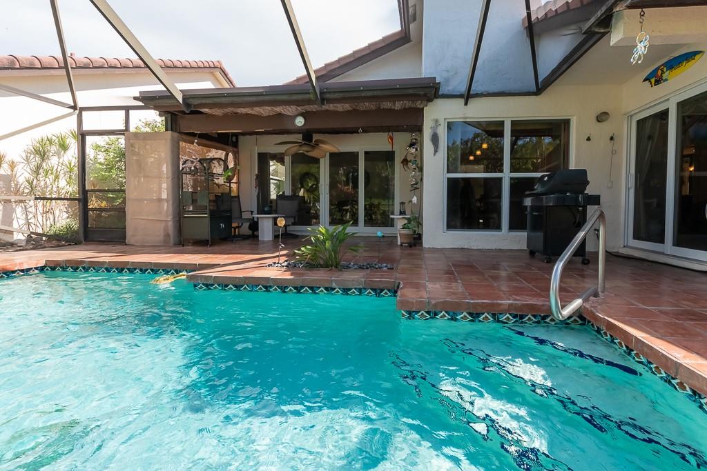 A LOVELY WATERFRONT PROPERTY FEATURING 3 BEDROOMS & 2 BEAUTIFULLY REMODELED BATHS PLUS A VERY PRIVATE SCREENED-IN PATIO AND HEATED POOL WITH WATERFALLS.THIS HOME HAS ALL IMPACT GLASS SLIDING DOORS AND FRONT DOORS, AND HURRICANE IMPACT GARAGE DOORS. A NEW AIR CONDITIONER WAS INSTALLED THIS YEAR, 2022! There is a large eat-in kitchen with lots of cabinet & pantry, master bedroom with walk-in closet, master bathroom has w/dual sinks and cabinets, separate shower, freestanding tub,& an updated guest bathroom. There is a koi pond in the atrium, 2 car garage has attic space & updated electric box . RING doorbell plus key pad entry. LOW HOA fees, community tennis courts, close to Del Prado Elementary, Boca Raton Town Center Mall, parks, schools, highways, and The Temple and places of worship.