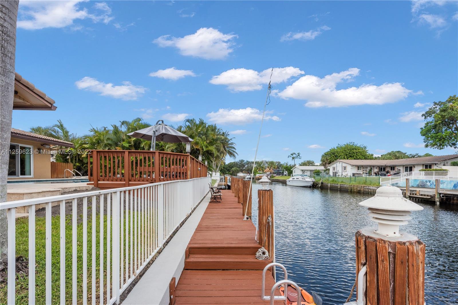 The home is a Boater's dream property! Direct ocean access! No HOA! Main house is a spacious remodeled 3bed 2bath with a 2 car garage. It has an open floor plan, remodeled bathrooms, floors, kitchen, impact windows throughout. In the backyard you have a beautiful salt water pool surrounded by travertine tile, with pool heater. There is a deck overlooking the pool area, great for BBQ’s, gatherings or just relaxing. Adjacent to the main house the property has a guest house with its own private entrance, parking, bathroom, kitchen, living room and its own private backyard. The home features 2 boat docks, and also features a remote controlled boat lift up to 15000lbs! Space for 5-6 boats! The property also has an RV parking area and power hook up! Located on a quiet cul-de-sac.