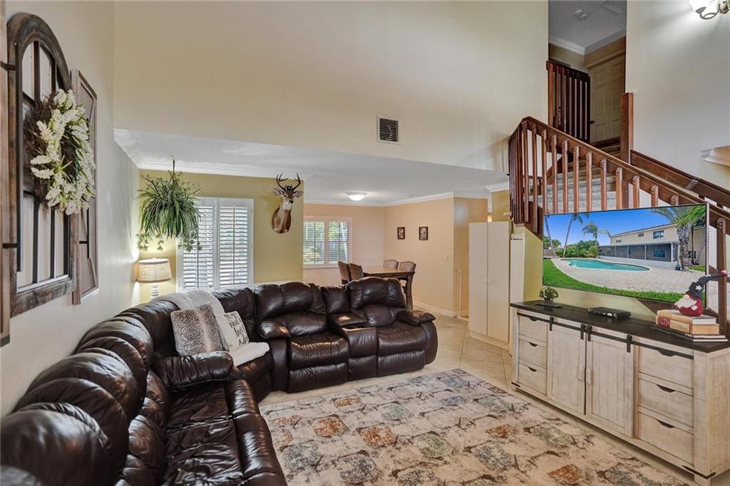 MOTIVATED SELLER! Come see this beautiful 4 bedroom 2.5 bath pool home located on oversized corner lot! Large open kitchen and family rm. Downstairs is completely tiled. All done in neutral decor. Crown molding throughout living area. Kitchen features beautiful granite counter tops, stainless appliances, Eat in area plus and breakfast counter. Master bedroom features an upgraded bathroom with marble floors and upgraded vanity and granite counter tops. Plantation shutters. Most rooms overlook very inviting pool area. Large screened patio. Completely fenced for maximum privacy. Plenty of space for extra parking for boat or camper behind the fence. New washer and dryer. Second floor is concrete block. Newer Roof! 4 years old! A/C is 1yr old! Hurricane panels! Will not last!