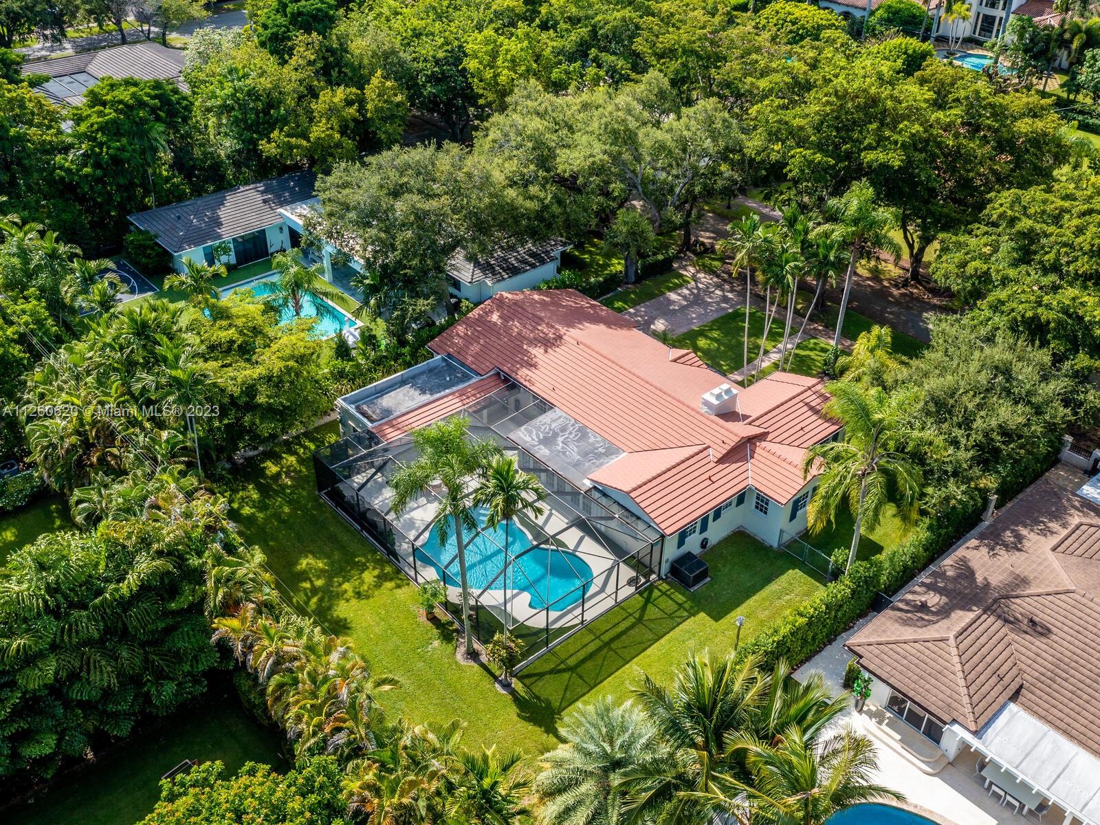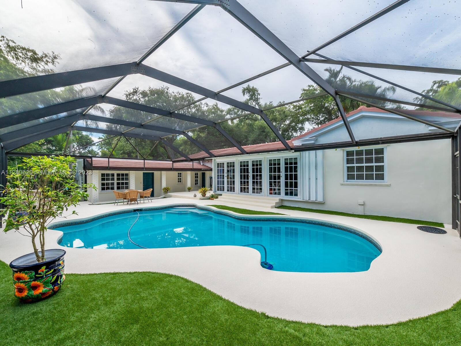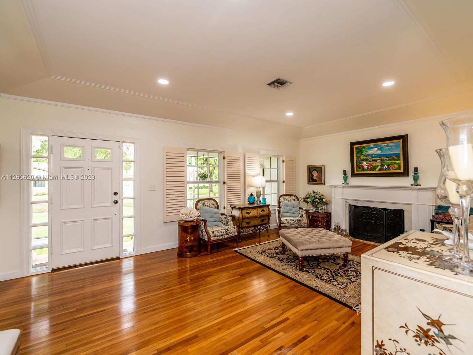 Lovely Spanish style home in the Country Club Coral Gables area. As per last Area Calculation Living Area 2,333.22 SF (under a/c). This 13,900 sq. ft. lot offers an opportunity to expand in the future, 3 bd, 3 br in the main house, and 1 bd/1 br in-law quarters with view of the swimming pool and garden. Hardwood floors throughout, working fireplace, updated granite stainless steel kitchen with formal dining room. 7 years old roof. Impact windows, oversized 2 car garage, a beautiful screened-in pool. This is turnkey with plenty of room for expansion. This house is just 5 minutes away from Downtown Coral Gables, and shops at Merrick Park. Close to Biltmore Hotel.