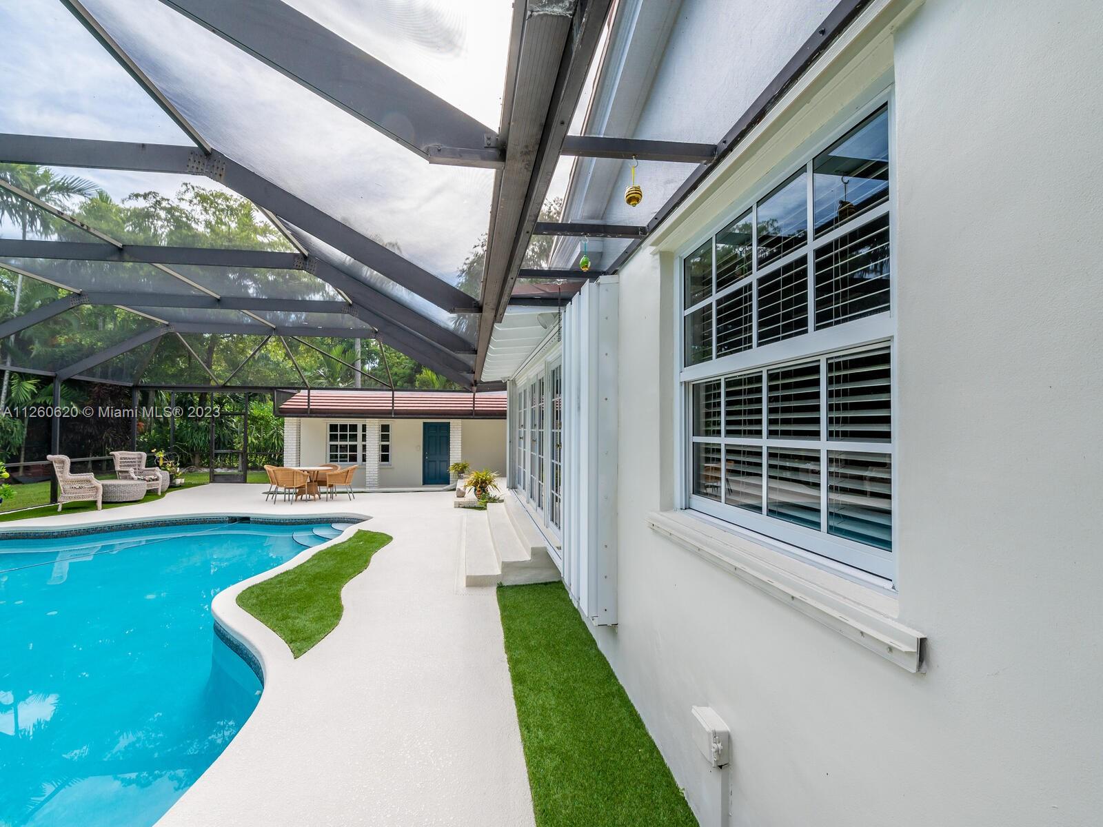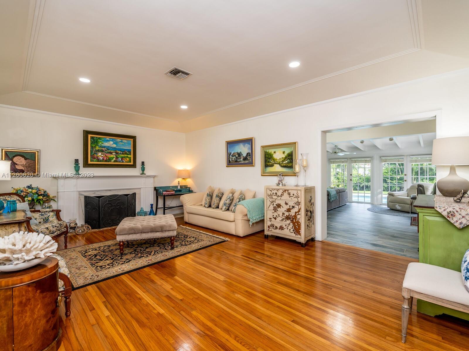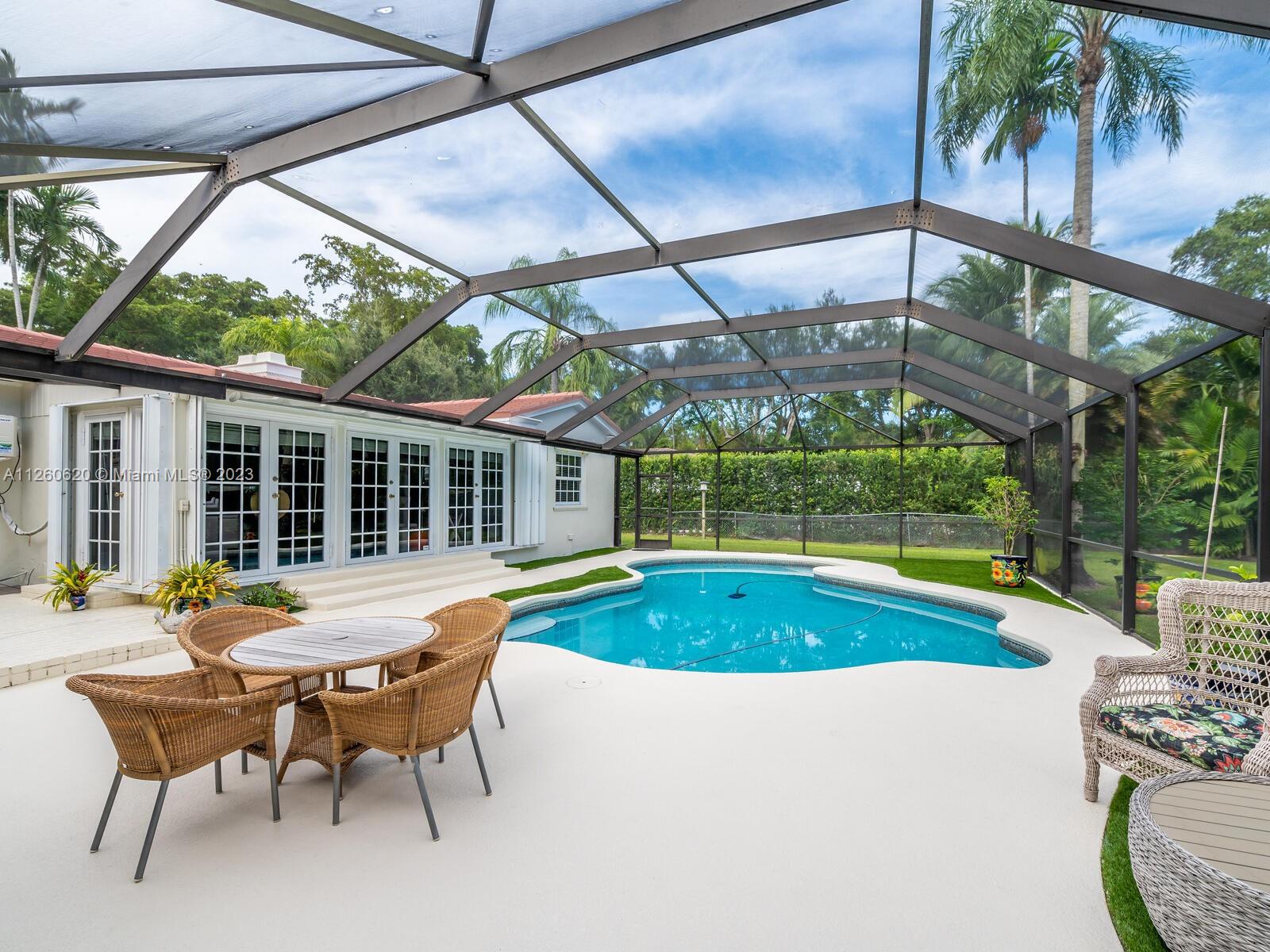 Lovely Spanish style home in the Country Club Coral Gables area. As per last Area Calculation Living Area 2,333.22 SF (under a/c). This 13,900 sq. ft. lot offers an opportunity to expand in the future, 3 bd, 3 br in the main house, and 1 bd/1 br in-law quarters with view of the swimming pool and garden. Hardwood floors throughout, working fireplace, updated granite stainless steel kitchen with formal dining room. 7 years old roof. Impact windows, oversized 2 car garage, a beautiful screened-in pool. This is turnkey with plenty of room for expansion. This house is just 5 minutes away from Downtown Coral Gables, and shops at Merrick Park. Close to Biltmore Hotel.