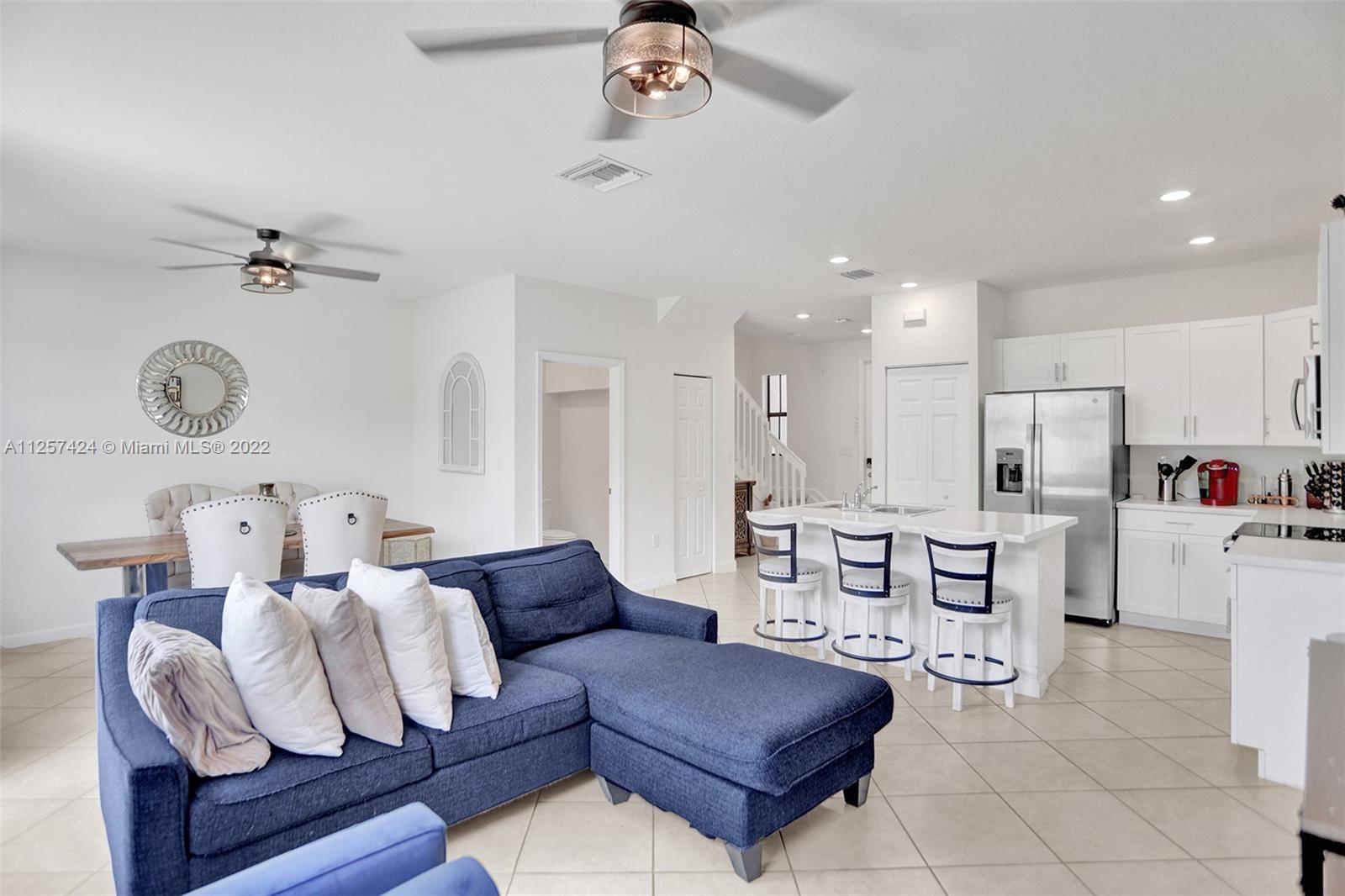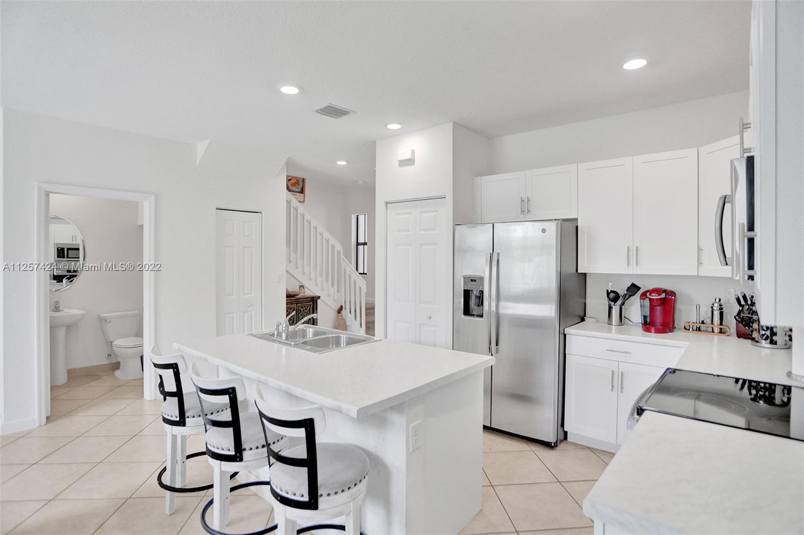 This beautiful modern townhome features 3 bedrooms 2.5 bath. Located in the highly sought after Aquabella community. Built in 2021 feels and looks like new!! Enter into a modern open floor concept stainless steel appliances, white kitchen cabinets, title floors, over sized fenced yard, laundry located on the second floor and much more enjoyable features. Easy access to MIA/FLL. Seller would like a 60 day post occupancy.
