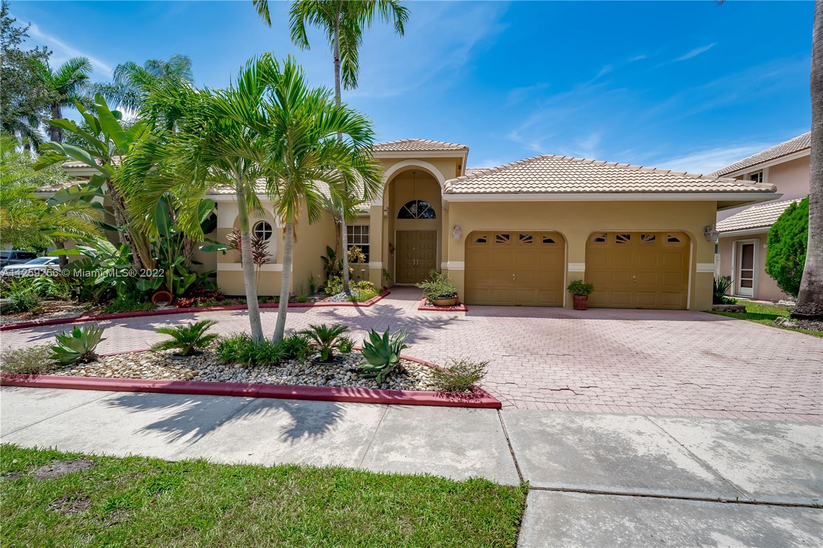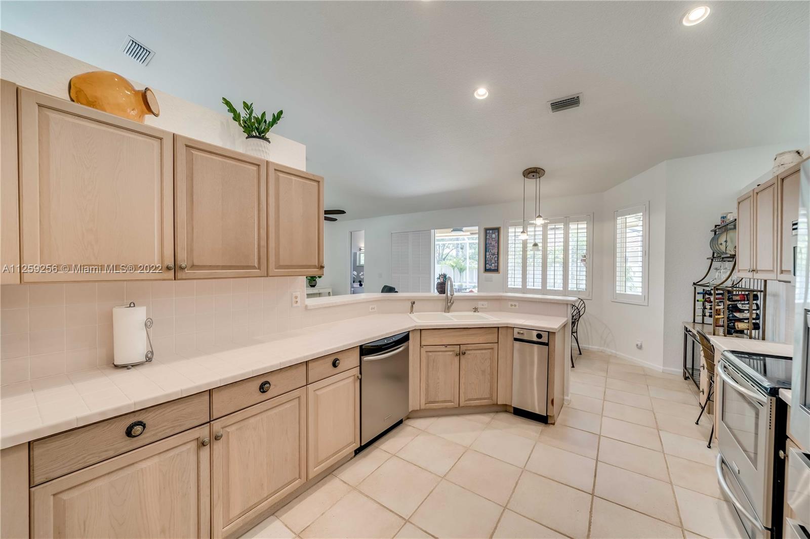 One of the nicest private backyards w/ large covered & expanded screened patio & large yard w/ hammock in this Zuckerman Built Home. Bright Split Floor plan w/lots of natural light, Tall Ceilings in all living areas & Master bed, plantation Shutters, Renovated Hall bath w/dual sinks, Tile Floors in main areas, Engineered Wood in Master Bed. Large Open Concept Kitchen w/ breakfast area & New Fridge, NEW AC & Water Heater 2022, Tile Roof 2007, New hurricane garage doors were just installed. 4th bed is office, plenty of parking w/ 2 car garage & Circular driveway, corner Lot. The Gated Community of Malibu Pointe in Silver Lakes has great bike & paths, community Pool & Clubhouse, volleyball, cable included (Fiber coming soon). Great supermarkets, & near I75,I595,Palmetto 826.