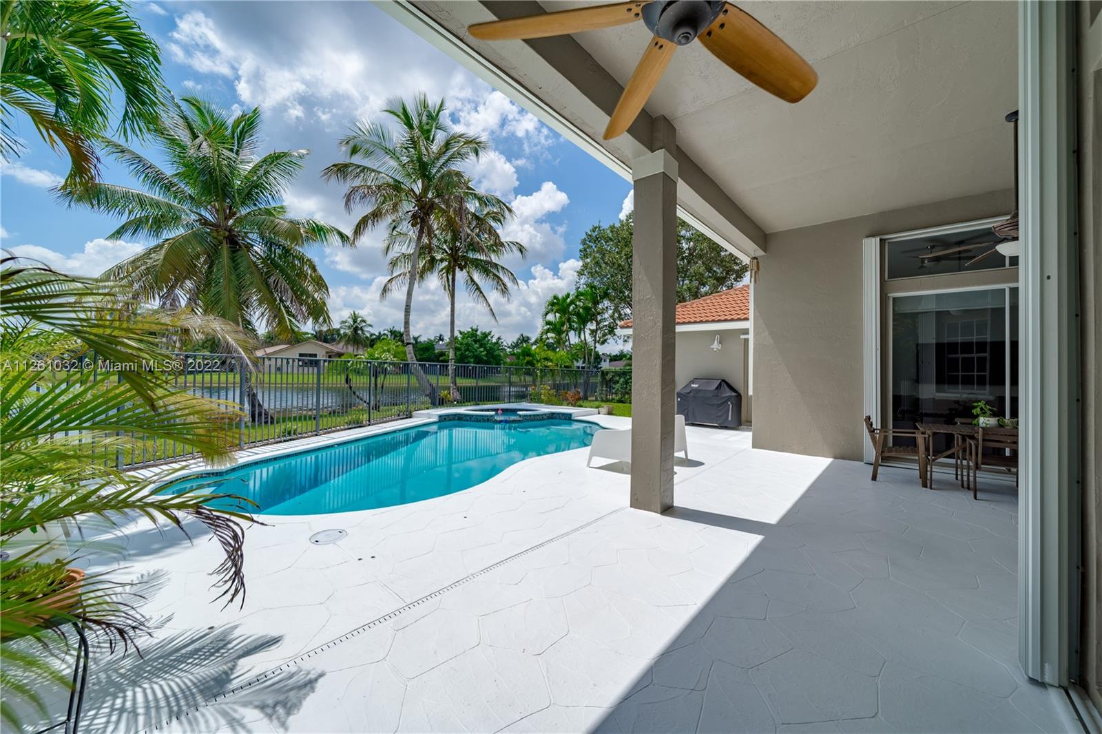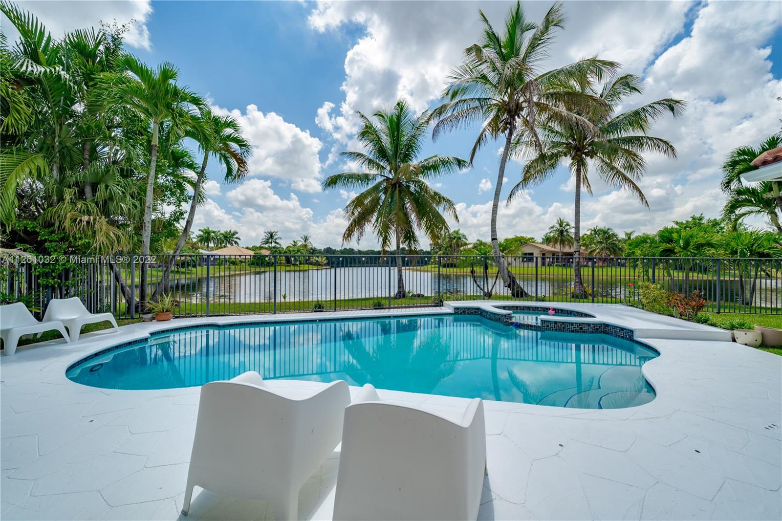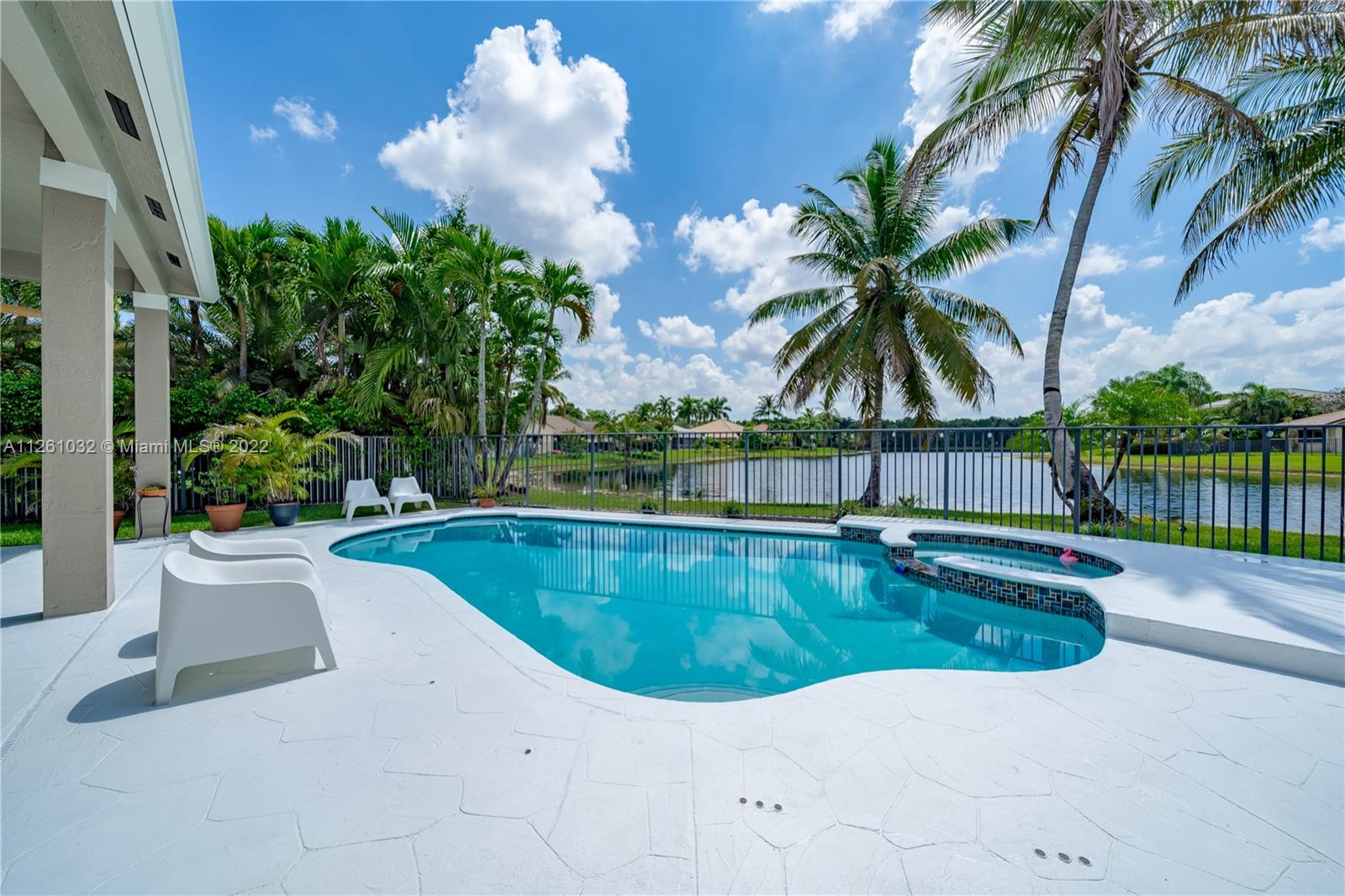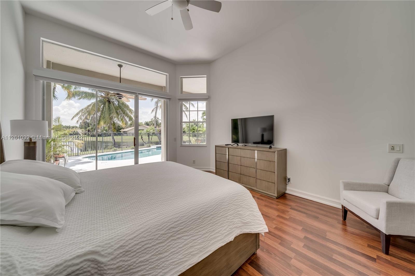 Open high-ceiling floor plan with one of the best lake views in Weston. 5 bedrooms and 3.5 bathrooms in one story. Spacious formal dining, family, living rooms. Well mantained house. Stainless newer appliances. Accordion shutters and new roof (2018). Heated pool and jacuzzi.