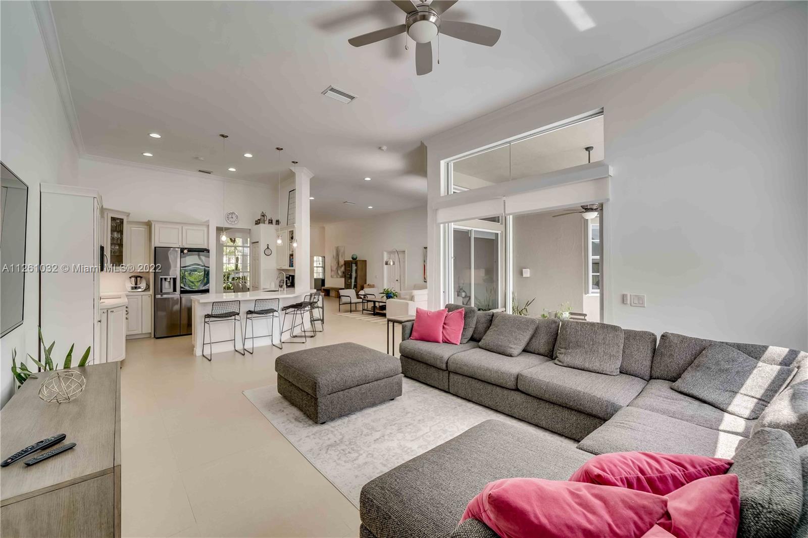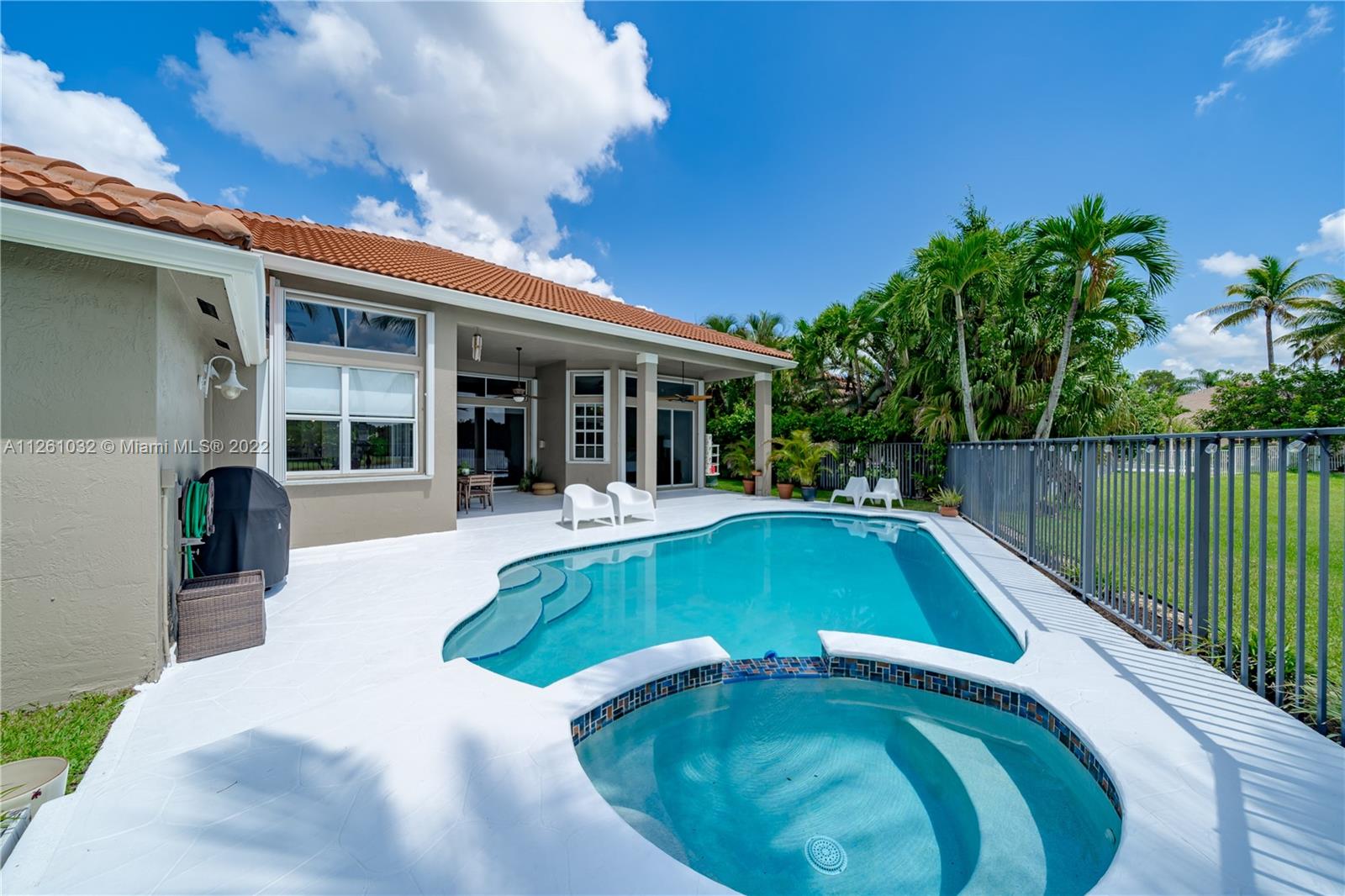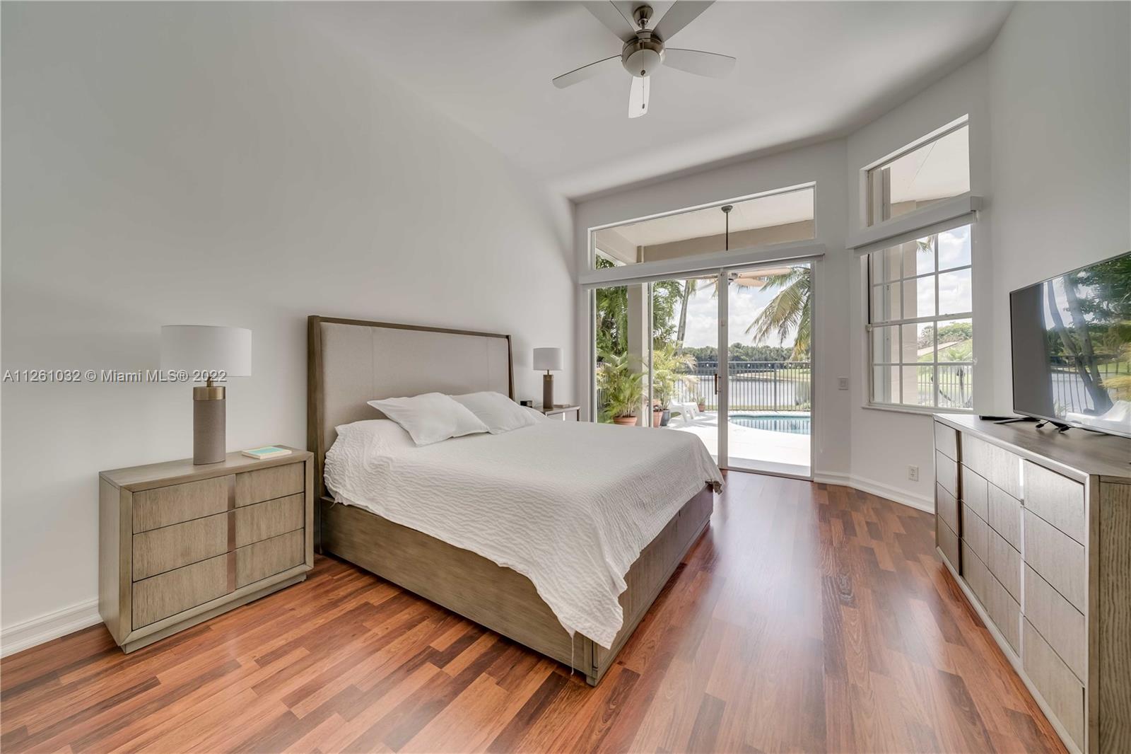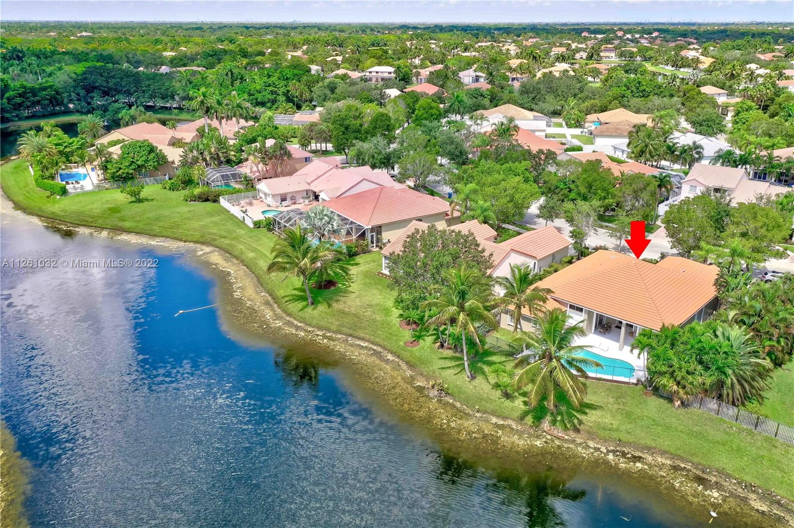 Open high-ceiling floor plan with one of the best lake views in Weston. 5 bedrooms and 3.5 bathrooms in one story. Spacious formal dining, family, living rooms. Well mantained house. Stainless newer appliances. Accordion shutters and new roof (2018). Heated pool and jacuzzi.