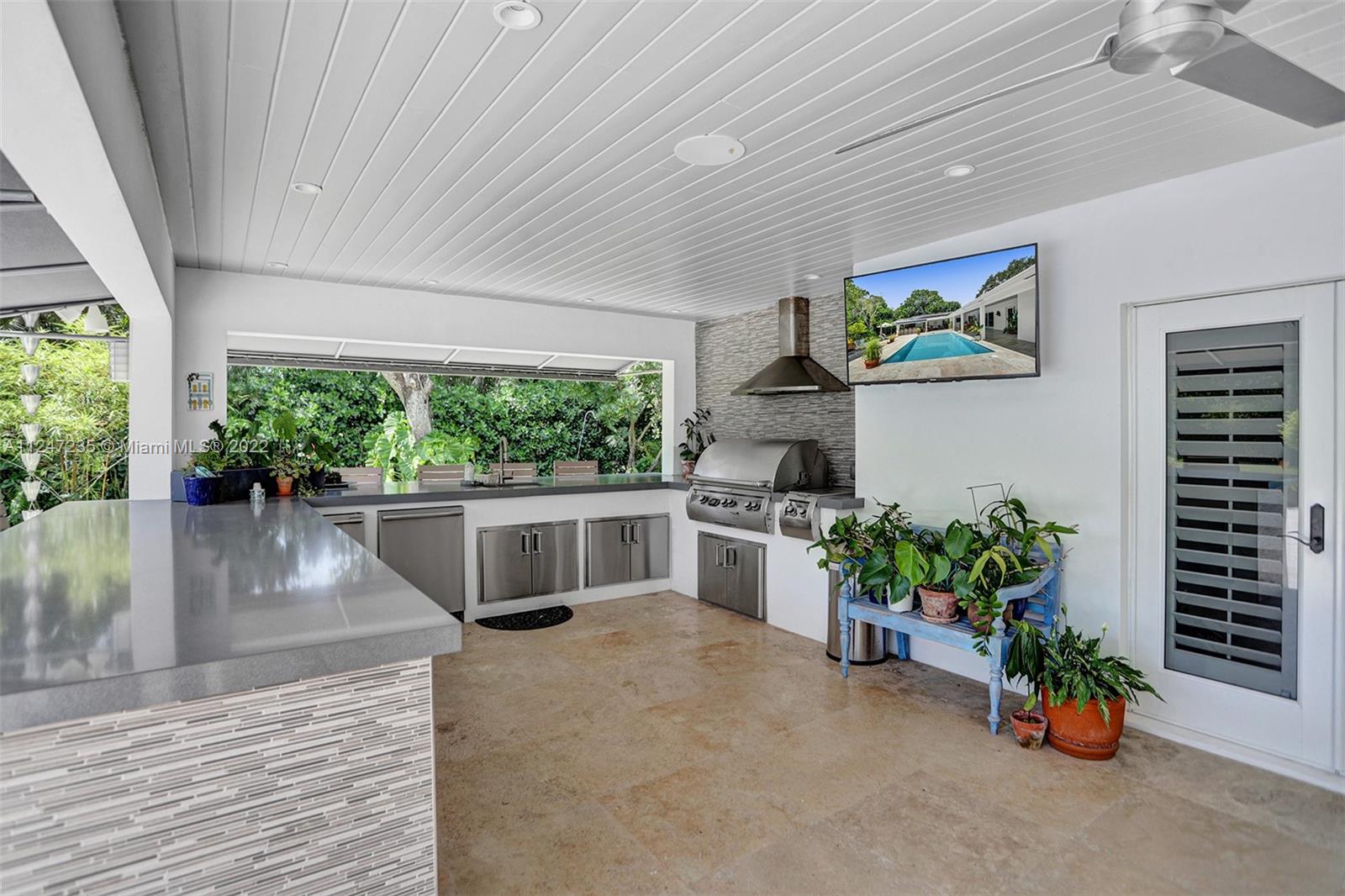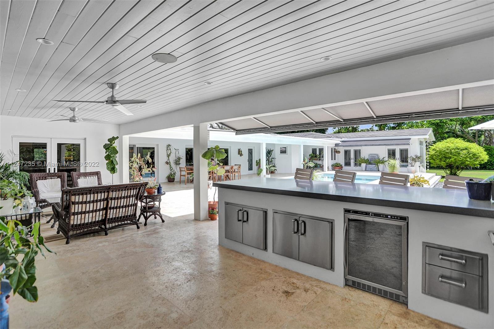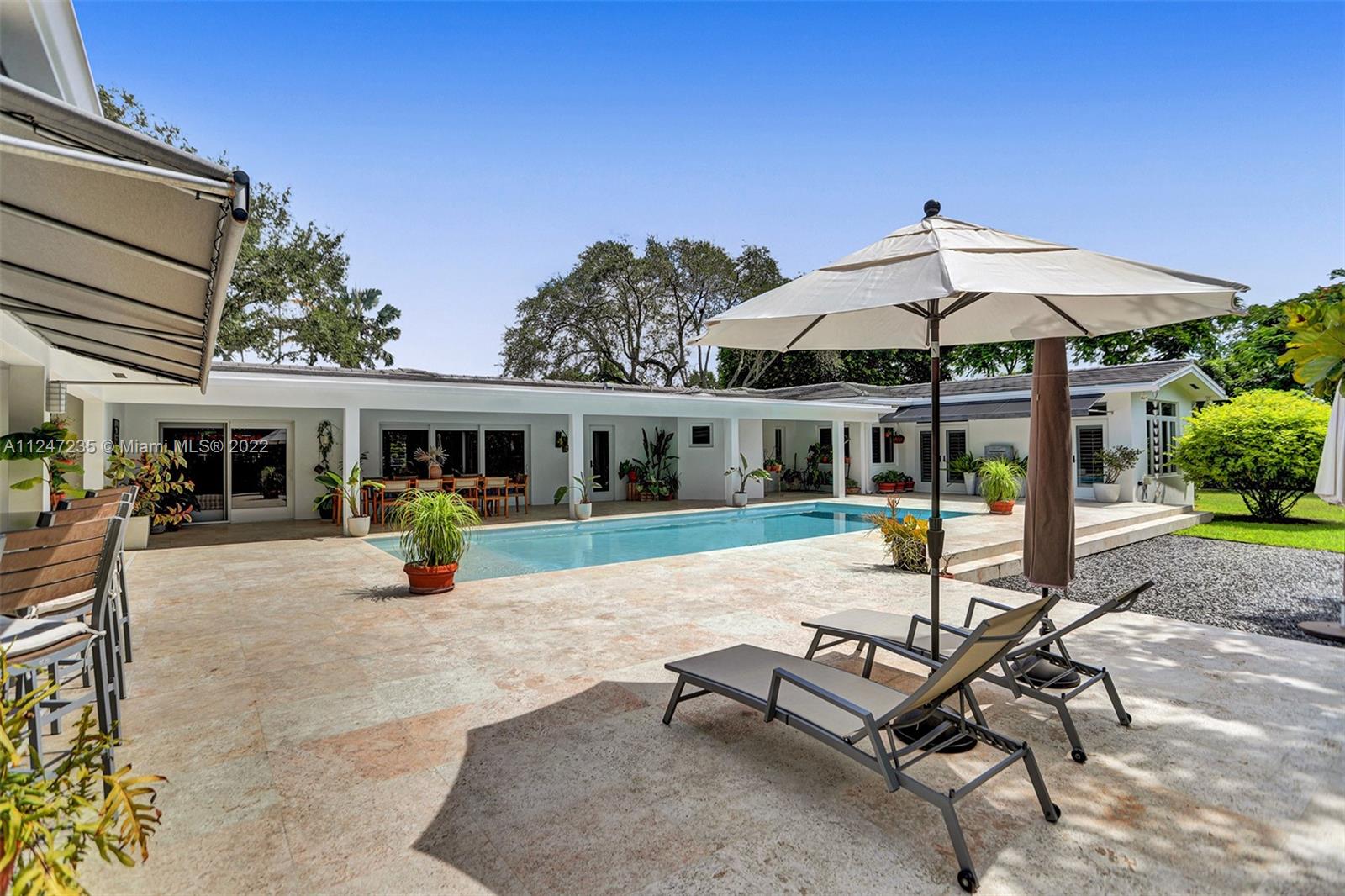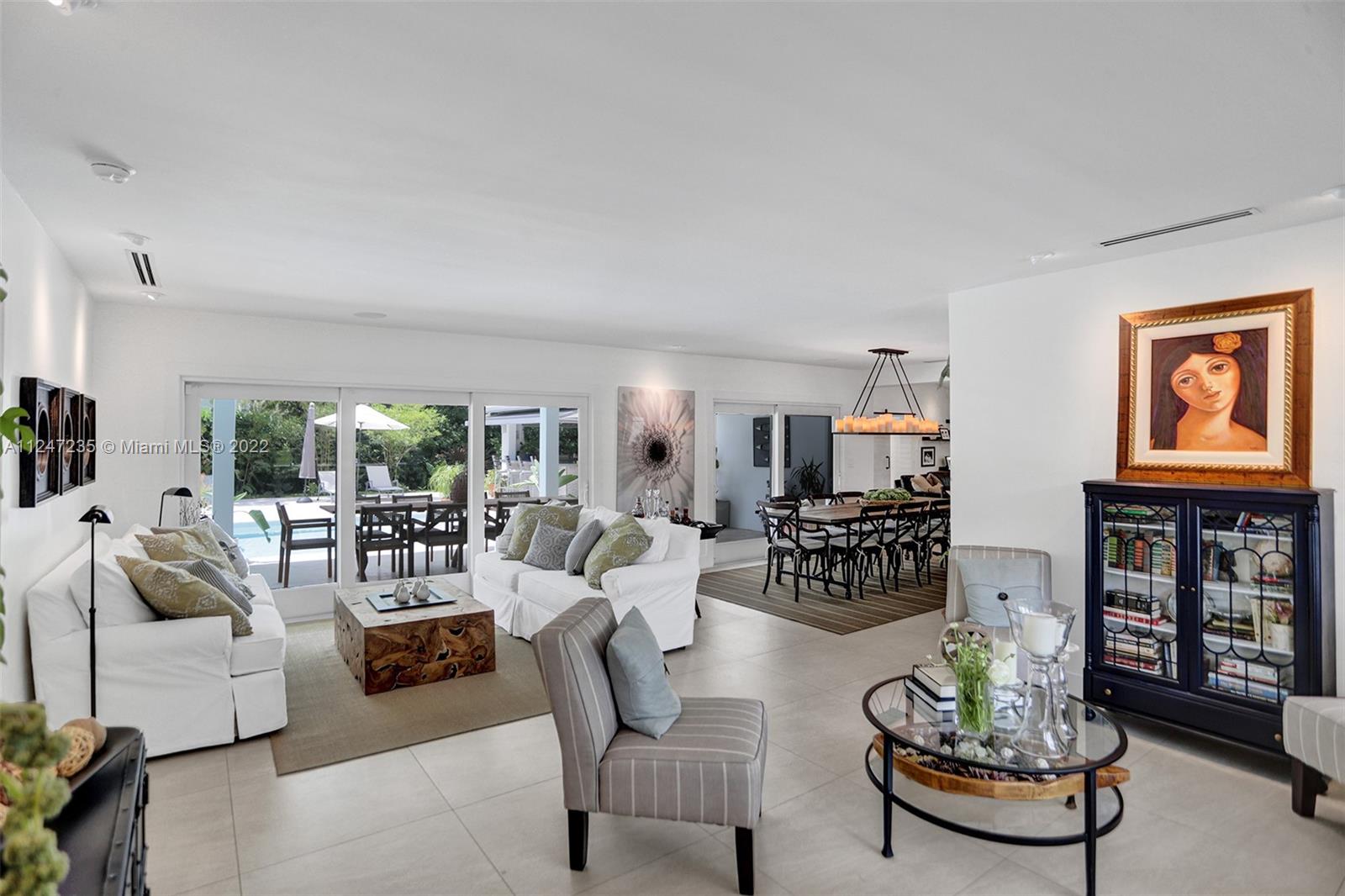 This turnkey North Pinecrest home melds Miami style and tropical ease steps away from Pinecrest Gardens. Experience a charming retreat in this 5 bed, 4 bath home remodeled in 2015. Highlights of this nearly 5,000 sf residence include a bright, airy formal living area leading to an expansive light-flooded family room, lofty ceilings, contemporary kitchen w Sub-Zero refrig, gas stove, butler’s pantry w Thermador oven,additional refrigerator, and ample storage. Relish in the stunning Florida landscape of the sprawling outdoor space, which includes a versatile kitchen and entertaining area for lavish nights of hosting or an elegant escape. The primary bedroom overlooking the lux pool area, flanked by lush foliage, has two spacious walk-in closets. Enjoy proximity to all of the Miami excitement