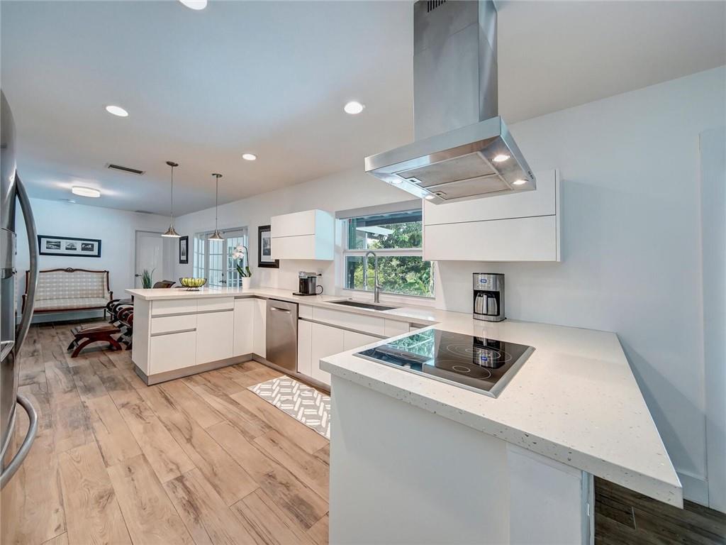 On a scale of 1 to 10...this is a 12! This spacious 5 bedroom 2 bath pool home boasts an elegant European white kitchen featuring top of the line S.S.appliances including double ovens perfect for holidays and entertaining, quartz countertops and new fixtures. Gorgeous Italian porcelain plank tile throughout the home. New recessed lighting and updated baths, custom closets and so much more. Enjoy those Florida evenings on your oversized roof patio surrounded by lush landscaping with peaceful water views, and total privacy!