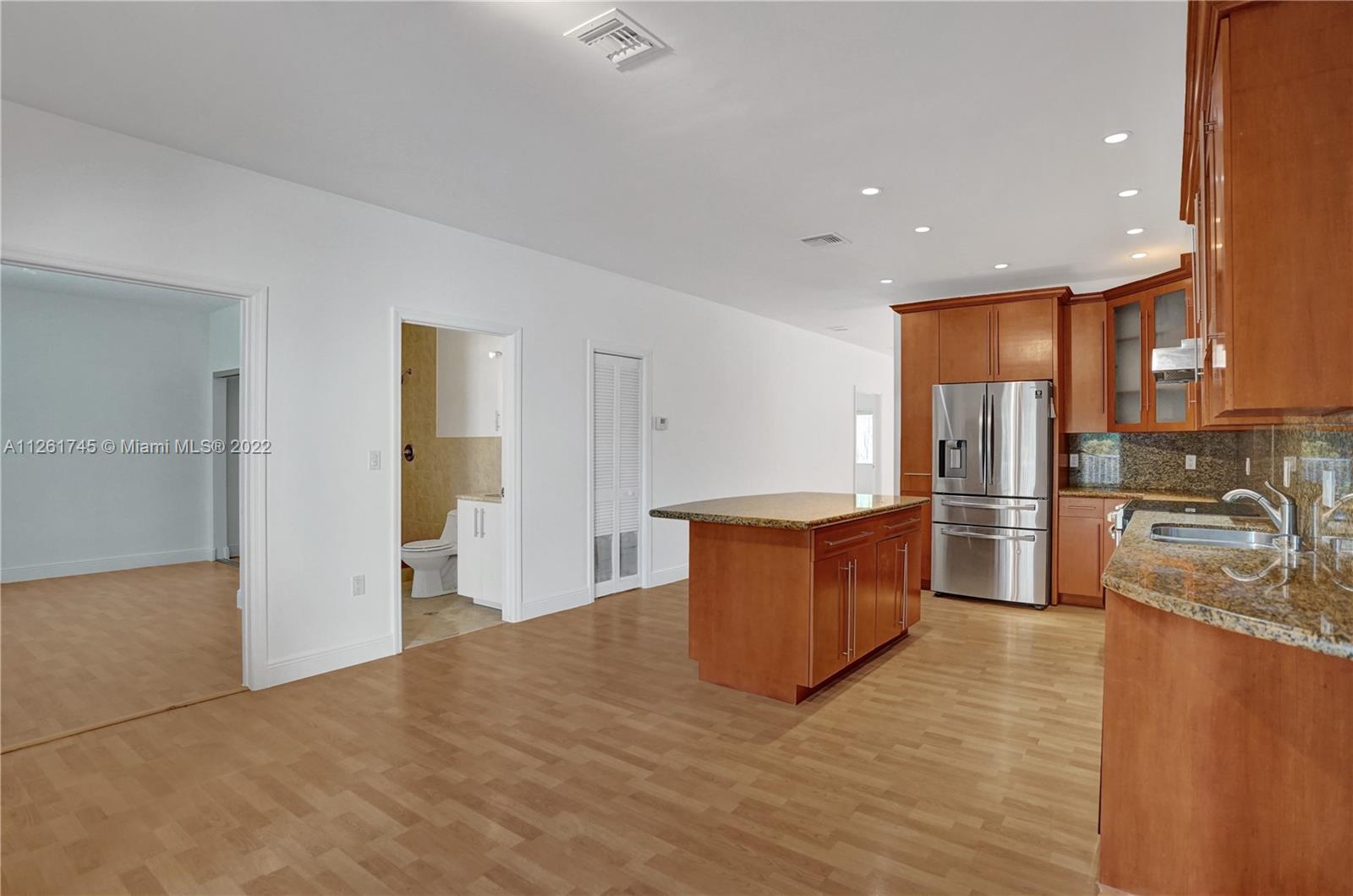 Stunning Hallandale Beach Rancher. East of US1. This stunning upgraded three bedroom, three bath home with a garage was built in 2008. The guests’ quarters have a separate entrance. There are two modern kitchens and appliances. Walk-In Closets. Hurricane Windows & Doors. High Elevation. Split Floorplan. Big Rooms. Large Rear Porch. Walk in Closets. Laminate Wood Floors Short Distance to beaches, shops, worship, casinos and airports. Move-in ready condition. Could Be Inlaw Quarters or Airbnb. Fenced yard with many fruit trees. Room for pool or RV. Owner Will Finance with Large Downpayment. Fantastic opportunity.