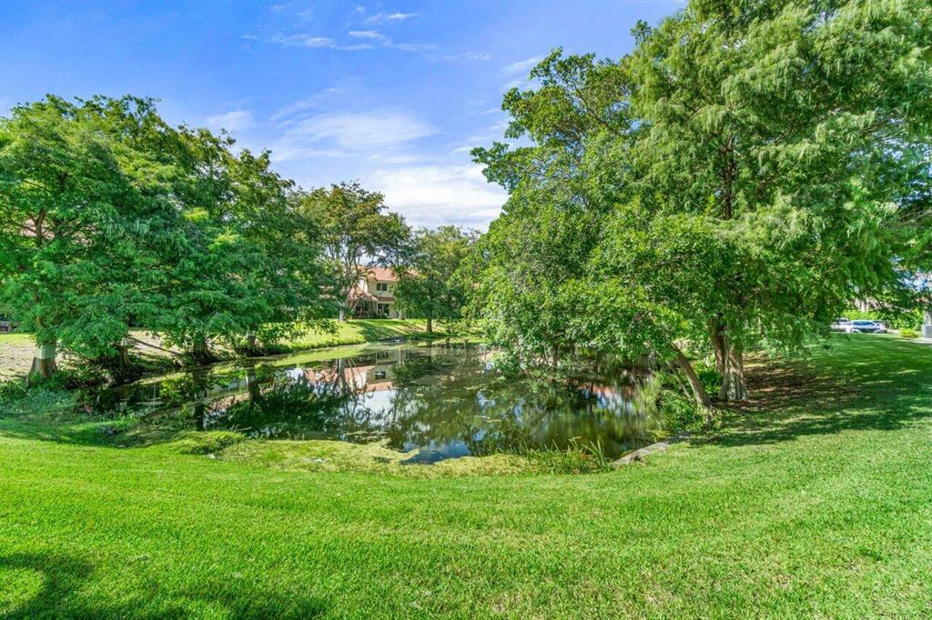Beautiful lake views welcome you home to this one story, 2 bed, 2 bath, corner townhouse. Recent modern renovations include removal of popcorn ceilings, porcelain woodgrain flooring throughout, all impact glass windows and sliders installed October 2021, bathrooms renovated and kitchen remodeled with white cabinets, granite/quartz countertops, and stainless steel appliances. Convenient location minutes away from highways, shopping, great restaurants and some of the best beaches in South Florida. Community heated pool and jacuzzi.