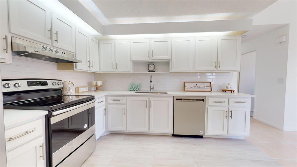 Stunningly updated Corner unit! Beautiful updated Kitchen with Quartz Countertops, New Backsplash, SS Appliances & New Porcelain Floor Tile. Bathrooms are updated with New Toilets, Sinks, Faucets and Tile Floors. New Carpet. It also features Accordion Shutters, 1 car garage & fully enclosed bonus room. Fabulous community with low HOA that includes free golf, pressure cleaning annually, painting when needed, cable, lawn care and exterior extermination. All this in a gated community with a Country Club lifestyle.