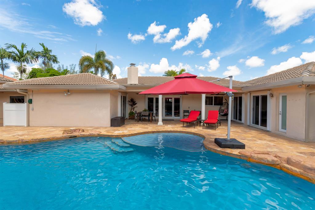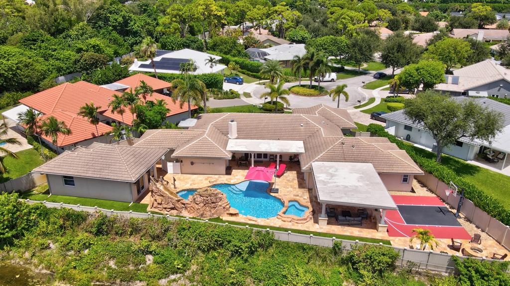 Welcome to Florida living at its finest, in the highly sought after, gated Estancia West neighborhood of Central Boca, near everything Boca has to offer. This amazing home is located off Glades Road just a couple mins from the world class Town Center Mall, and is situated directly between I-95 and the Florida Turnpike, making it a breeze for any commute. Feel like you're on vacation everyday in this one of a kind 6 bedroom, 6 full bathroom Resort style home that boasts a world class pool complete with waterfalls and built in waterslide, a 1/1 guest house, covered bar and lounge area, basketball court, fire pit, and more! The interior of the main house features two separate wings with a split floor plan, ample living spaces, and a spacious chef's kitchen featuring a