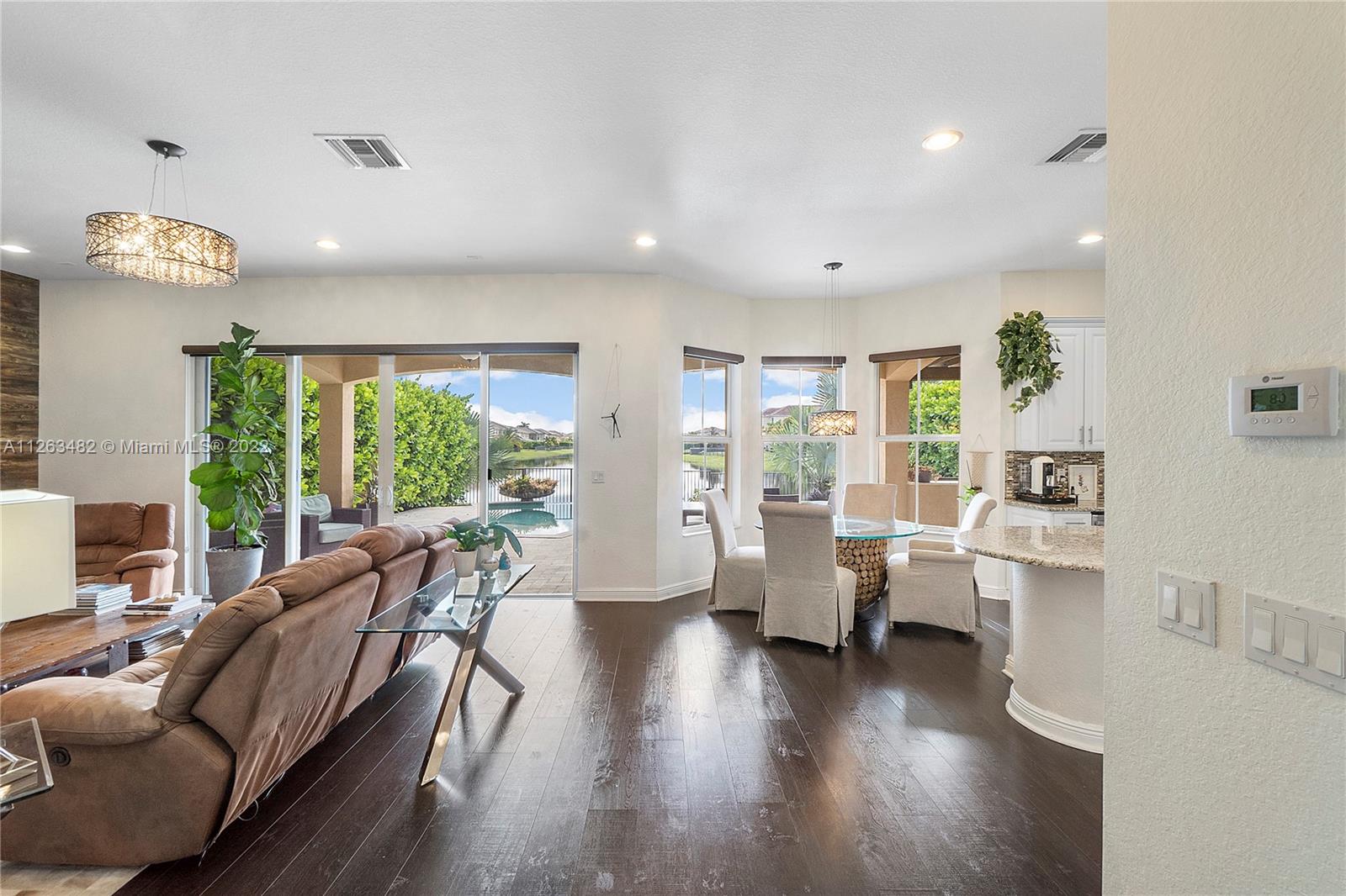 Beautiful 2015 Tahoe Model in a stunning lake view lot and an impressive salt-water infinity pool. 3,714 Sq.Ft. under AC, 4 Bedroom + Den /4 Bath /3 Car Garage. Impact windows. Ground floor living room, eat in, formal dining and family room. Upgraded kitchen with White cabinets, granite countertop, gas cooking, double ovens and stainless appliances. Upstairs massive master bedroom suite with big walk-in custom closet. 3 Bedrooms all with walk-in closets. Laminated wood floors. Direct gas for water heater, stove, dryer, pool heater and outdoor grill. HOA includes lawn care front, back & sprinklers. "A" rated Schools. Enjoy two luxurious clubhouses which features a resort style pool, splash pad, fitness center, tennis courts;24-hour Guard Gated Community incl. secured pedestrian gate
