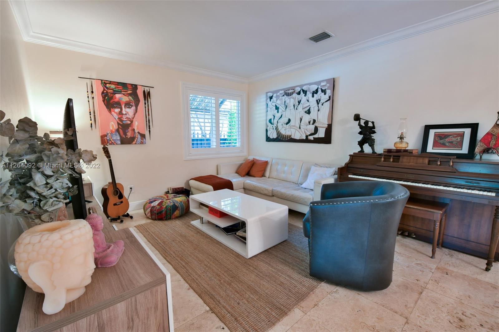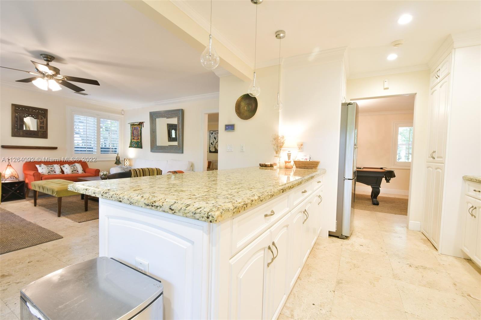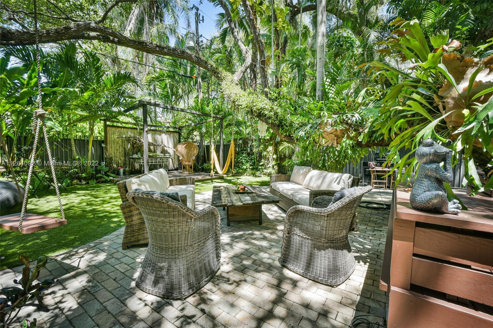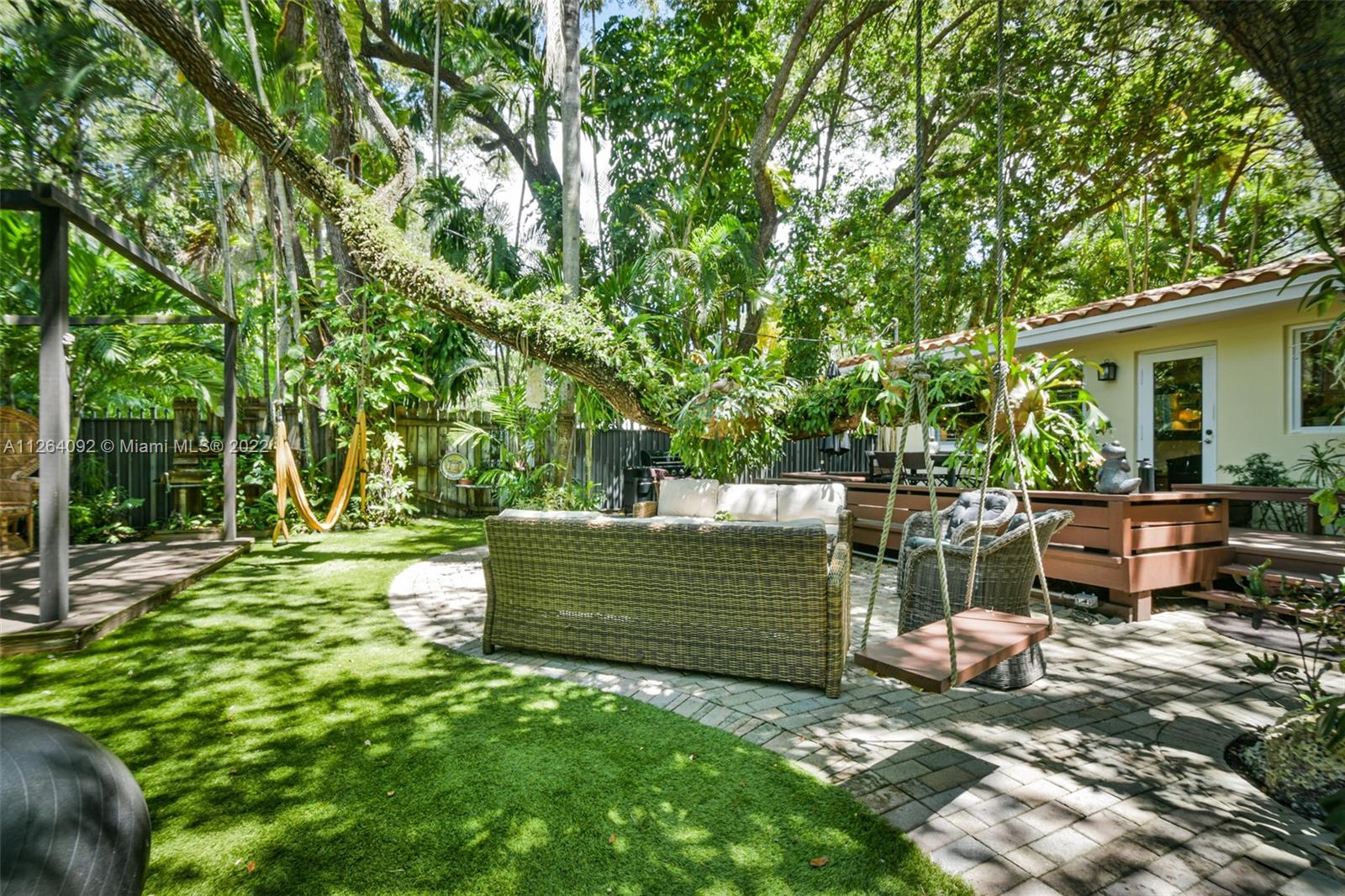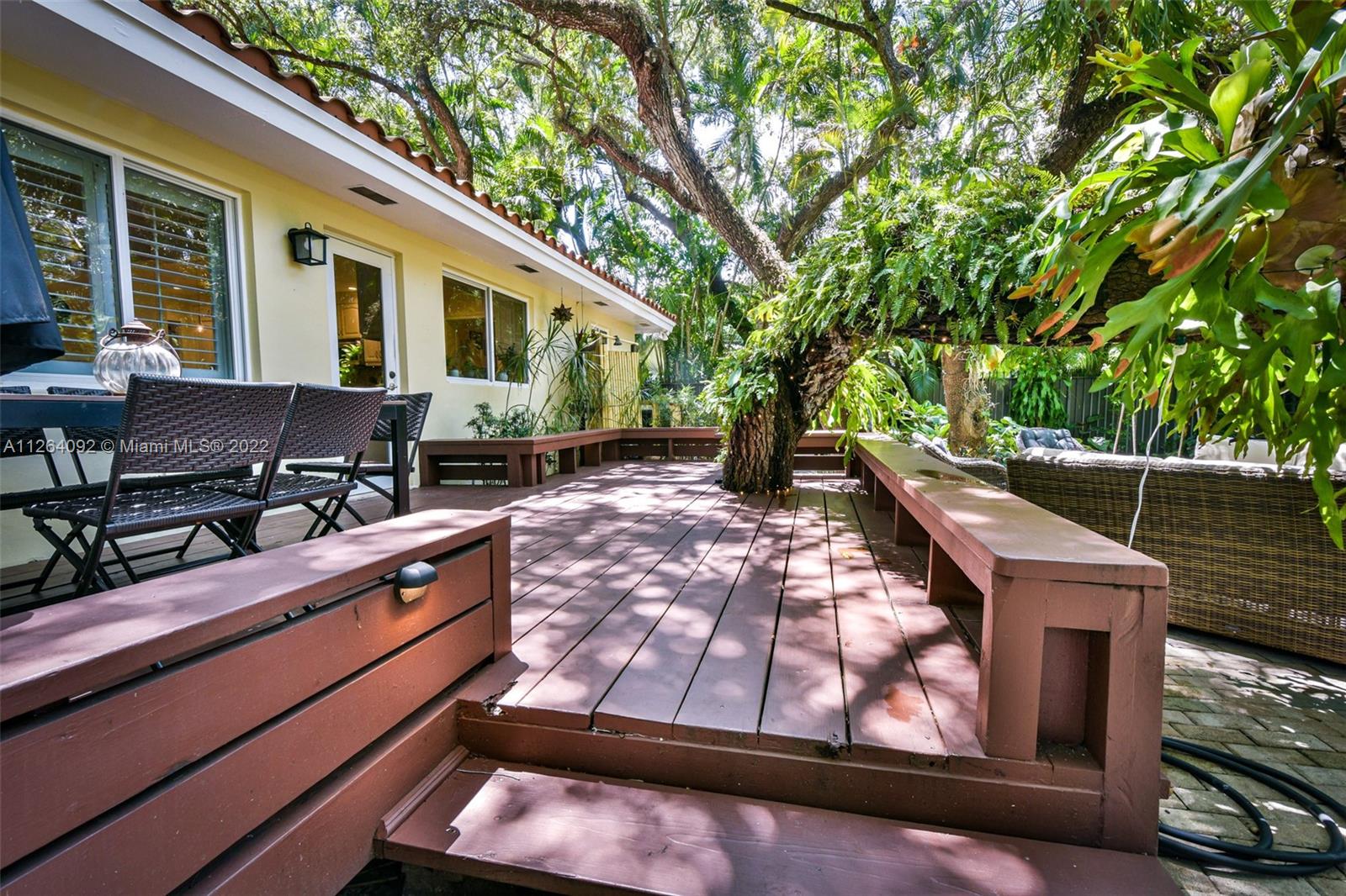 Welcome to your very own private tropical paradise within the Platinum Triangle. This magical home sits on a quiet tree lined street just minutes away from Sunset Elementary, consisting of 3 bedrooms plus an office, 2 walk-in closets, 2 bathrooms, 1 car garage, and a 6 plus car driveway. This gorgeous home features an open gourmet kitchen with granite countertops and a breakfast bar overlooking the family room. Step into the beautifully renovated backyard boasting a top of the line dirt free turf, an outdoor bamboo shower supplying hot and cold water, a new wooden deck with warm perimeter lighting, and a brand new perimeter anti-mosquito system. , impact windows and doors, plantation shutters, marble floors and alarm system. NEW PRICE, seller motivated!