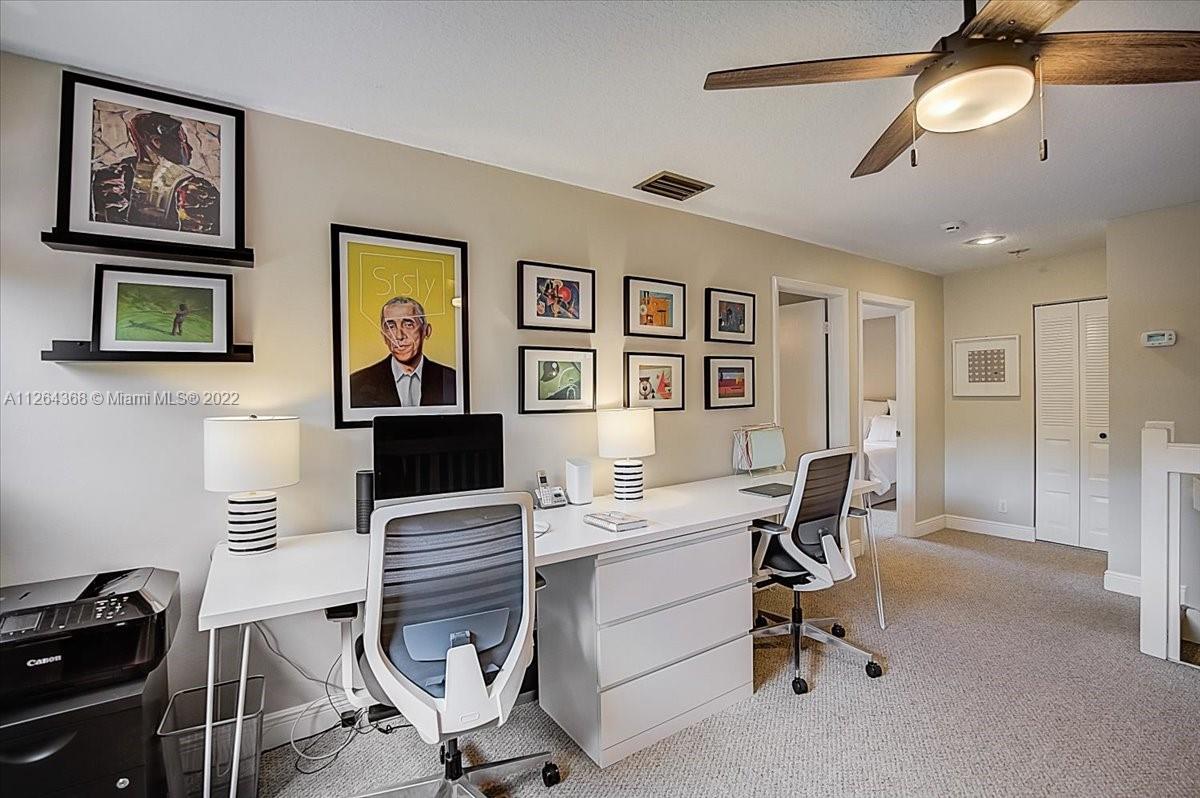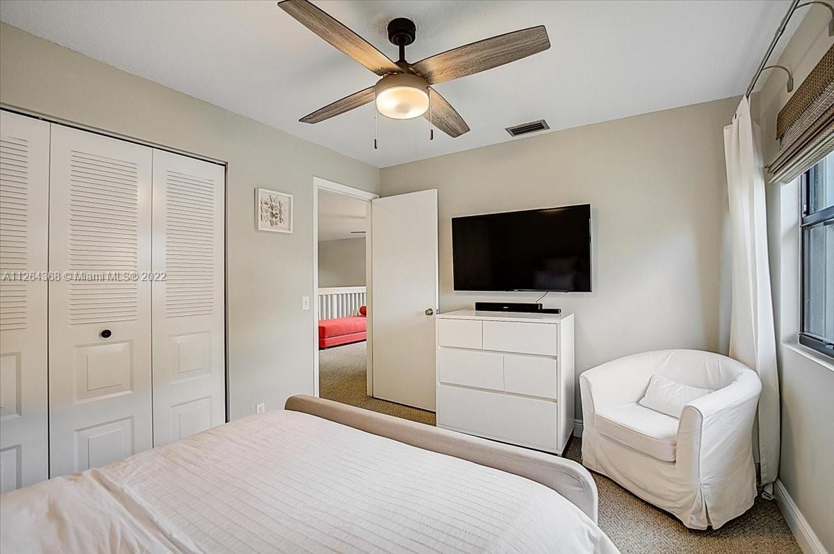 Welcome home to warmth and serenity! Located on a quiet cul-de-sac, this updated 3 Bedroom 2.5 Bathroom home is nestled in a quiet neighborhood down the street from an A-rated elementary school. This home features a loft perfect for a home office, playroom, or 4th bedroom. Entertain on the large screened patio with vaulted cedar ceilings overlooking the lush green space. Cook tasty meals in your open kitchen with white wood cabinets, stainless steel appliances, and granite counters. Enjoy serving dinners in the formal dining room. The primary bedroom features a custom built-in walk-in closet with tons of storage. All windows and patio have accordion shutters that are serviced yearly. This one is special! Lawn care included in low HOA. Close to Weston Town Center, Airport