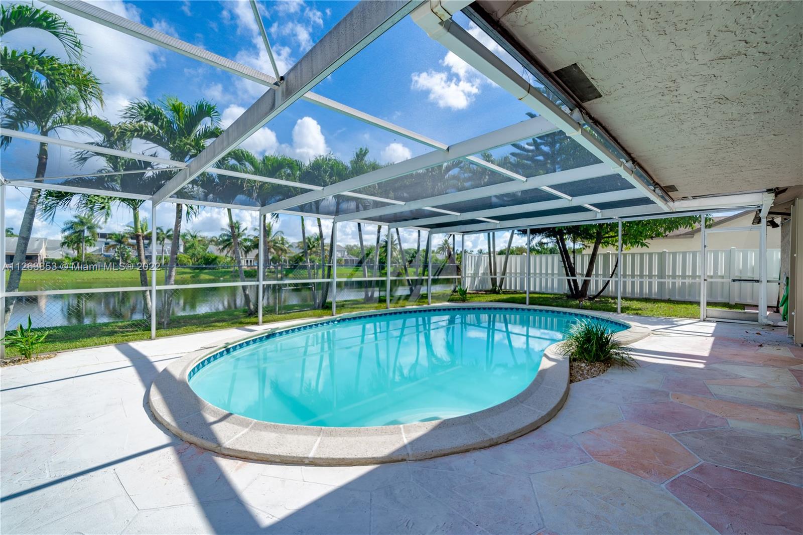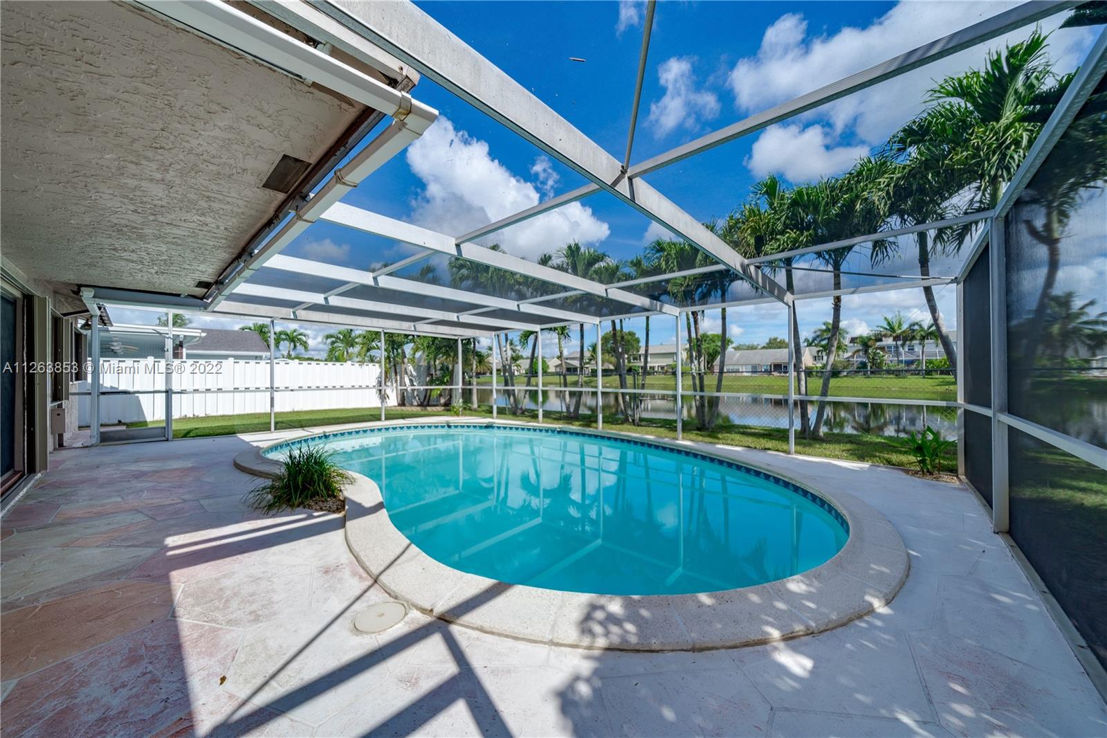 Cooper City! GREAT SCHOOLS! A NEW ROOF is being installed on This 3 Bed 2 Bath 1 Story POOL & LAKE Home is ready to call HOME! INTERIOR FEATURES: 18" Tile in Common Areas•Formal Dining Room•Carpeted/Sunken Living Room•Carpeted Bedrooms•Vaulted Ceilings•HUGE Kitchen/Breakfast Area/Family Room overlooking the Pool/Lake•New Fridge•Open Floor Plan•TONS of Closets & Storage•HUGE Pantry•HUGE Master w/Sep Shower/Water Closet & Vanity Area•Fresh Interior Paint•AC 2005••EXTERIOR FEATURES: Accordion Shutters•Covered Entry•Screened Pool (1 Yr Screen)•Stamped Concrete Covered Patio•FULLY Fenced Yard•2 Car Garage•Stamped Concrete Circular Driveway•Landscape Borders•Palm Tree Lined Views of the Lake•Mature Shade Trees in Front•
