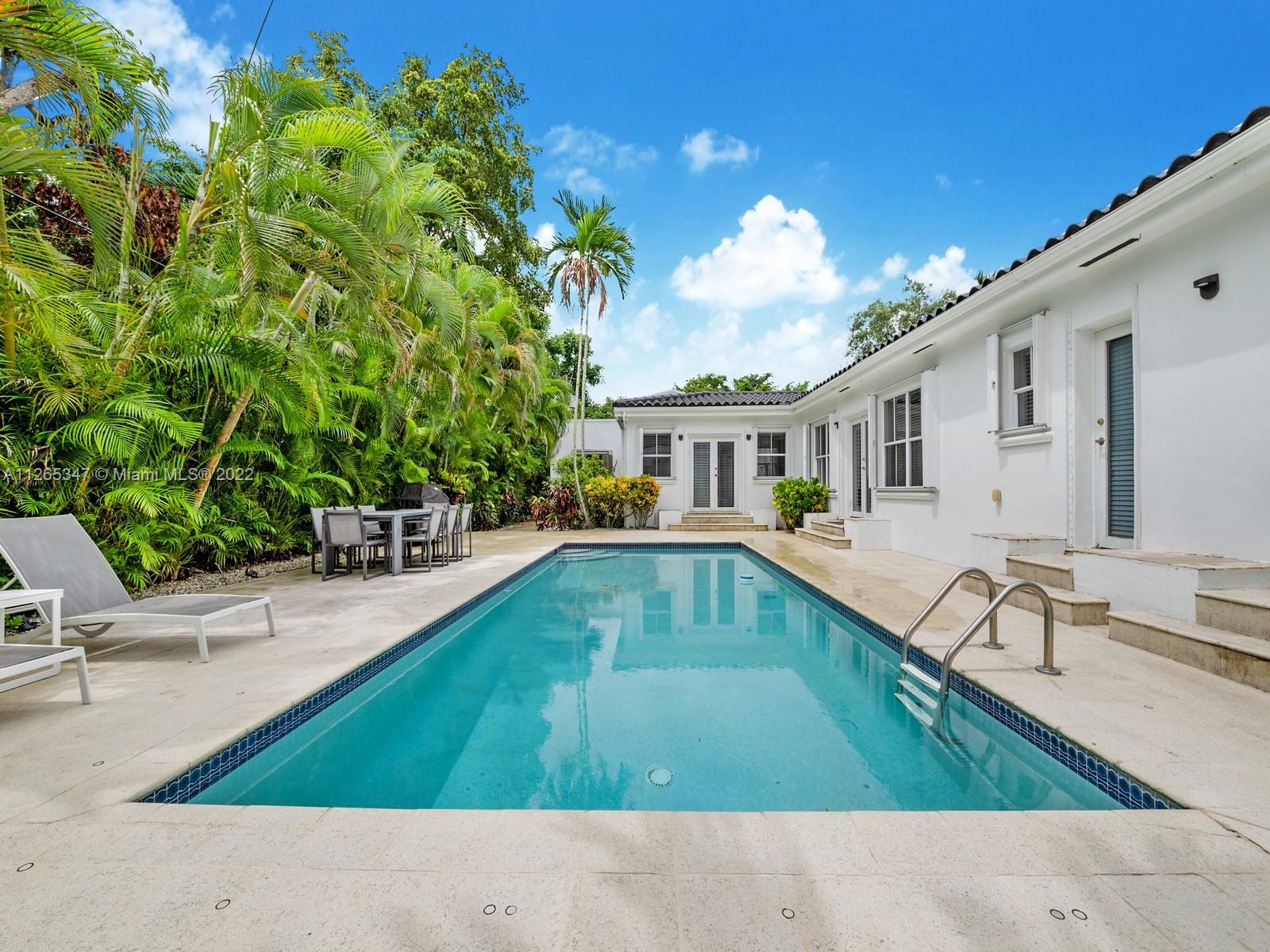 Nestled in the heart of South Coral Gables on a 15,474 square foot lot. Features include a 5 bedroom, 5 bathroom, hardwood floors, formal living/dining/family rooms with lots of extra closet space. Oversized master suite has an additional area for home office, gym or extra closet space. Split 3 bedroom, 2 bathroom compliments the perfect floor plan. 1 bedroom and bath to complete a perfect in law’s quarter. Kitchen finished with granite tops, stainless appliances, custom wine cellar and hardwood floors. Chicago brick driveway and entrance completes this estate. All of this and more overlooking picturesque pool/patio area with home generator.