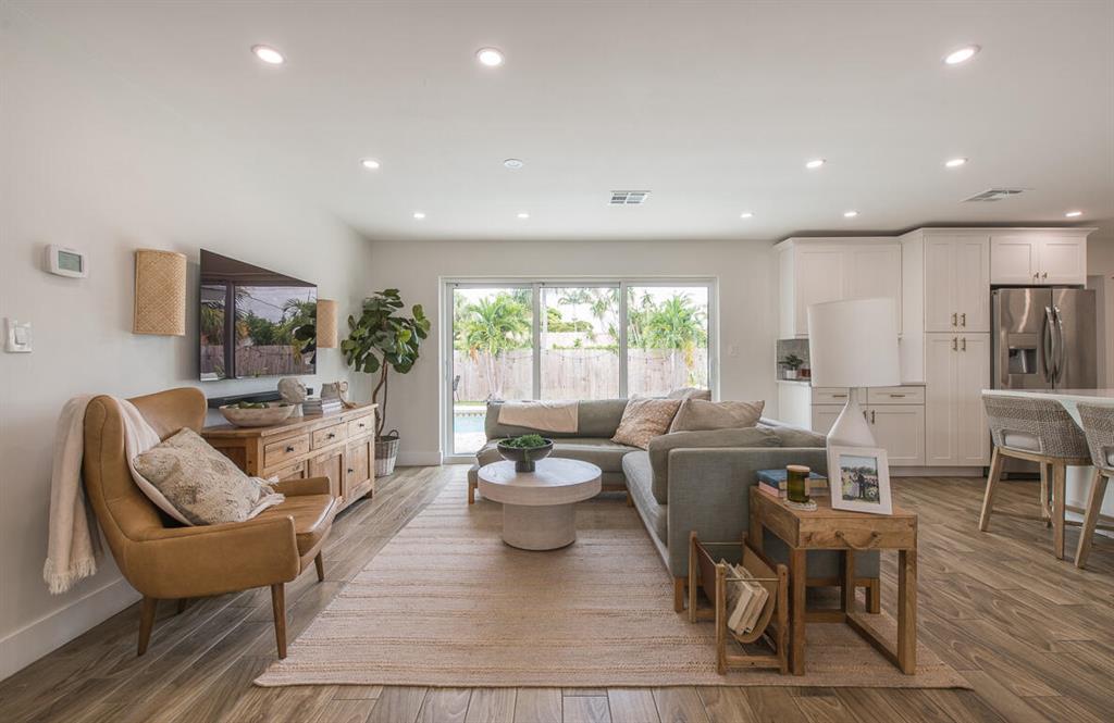 Come fall in love with this luxurious pool home in the highly sought-after Fort Lauderdale community of Coral Ridge! Located just minutes from the beach, restaurants, shopping, and so much more, this fully-renovated gem features two master suites, wood-look porcelain tile floors throughout, and a breathtaking kitchen that boasts an expansive island with plenty of storage, quartz countertops, brand new stainless-steel appliances, a custom oven hood, a stylish tile backsplash, and soft-close shaker cabinets. The three full bathrooms were tastefully remodeled with frameless glass shower doors and mosaic tile shower floors. The private fenced-in turf backyard is truly a slice of paradise, featuring an oversized pool, spa, and a travertine tile deck. This is a must-see!
