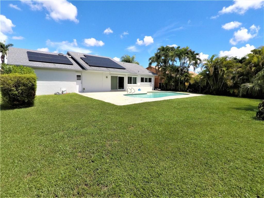 Welcome home! Located on a Private Cul-de-Sac Street, this stunning 3-bedroom 2-bath home features a quiet canal with a sparkling pool. New custom designed kitchen with extra storage cabinets and granite countertops, are among the special features with a large living room and an open dining area and a large Florida room. Upgraded bathrooms, Newer highly efficient A/C, New Roof, newer water heater, new pool equipment, New SOLAR PANELS, New upgraded Washer & Dryer, new Impact windows and much more emphasize the shining sparkle which this house is! It is Move-in Ready and most definitely a Must-See! Closest to Nobhill Elementary School and a beautiful Soccer Park, with nearby shopping center, malls and a short walking distance to fine restaurants. Come and get it!
