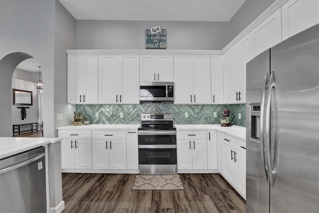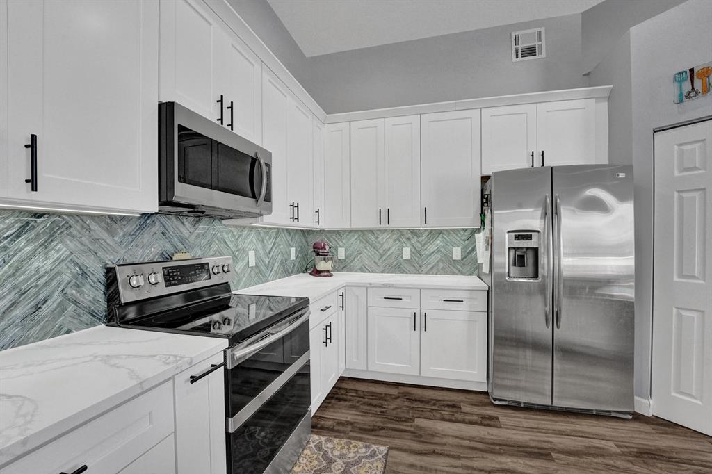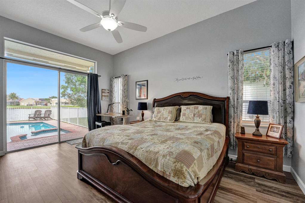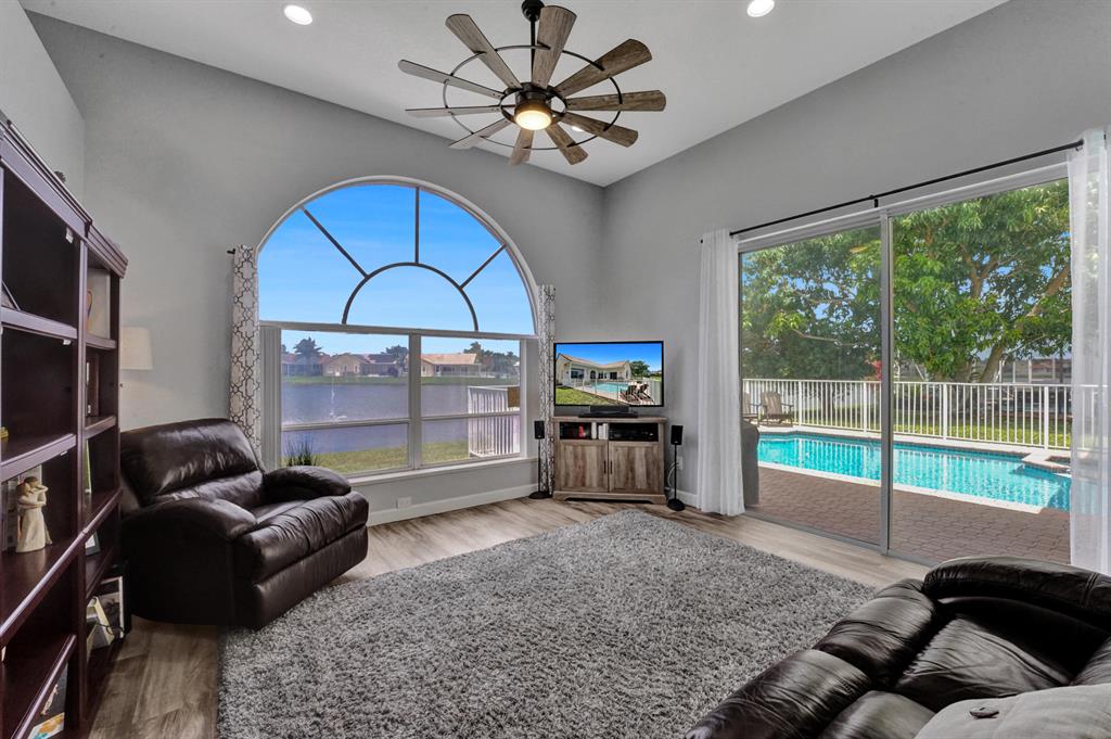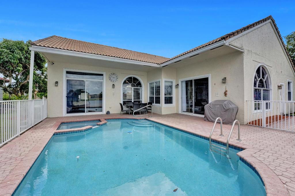 Move right into this beautifully renovated waterfront home. Enjoy the pool and long lake views. The home was recently renovated and features all new hurricane windows/doors, kitchen, A/C, hot water heater,updated plumbing, neutral painting and flooring. The bedrooms are positioned in a 3 way split floorplan. There is plenty of storage with master closets and a 3 car garage. The community is an all age Boca community with no mandatory country club. During season, enjoy mangos from the mature mango tree.