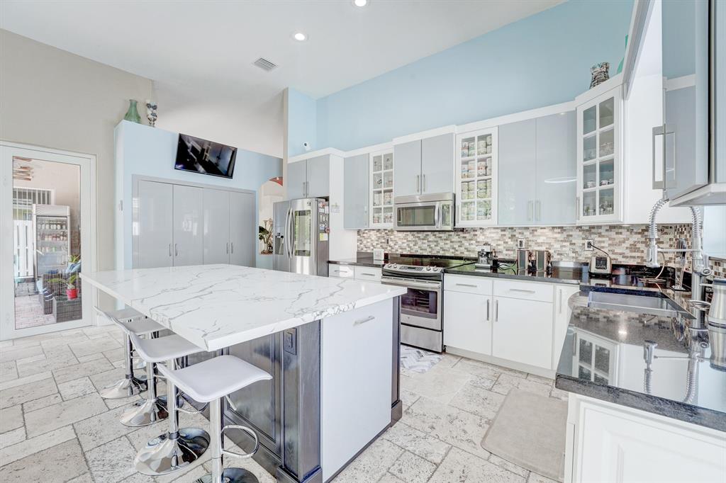STUNNING 4BR/2.5 BA, 2 CAR GARAGE, POOL HOME! ENTER INTO A WELCOMING FOYER WHICH EXTENDS INTO YOUR FORMAL LIVING & DINING ROOM. GOURMET KITCHEN W/ ISLAND & SAMSUNG SMART TECHNOLOGY APPLIANCES (10YR WARRANTY), NEW CABINETS W/UPPER/LOWER LIGHTING, GRANITE COUNTER TOPS, & GLASS TILE BACKSPLASH. TRAVERTINE TILE THROUGHOUT MAIN LIVING AREAS. CABANA BATH, POOL, JACUZZI, COVERED PATIO W/ EXTENDED ENTERTAINING SPACE. BEVERAGE COOLER INCLUDED. NEW ALUMINUM FENCE W/PRIVATE ACCESS TO EASEMENT. NO ONE BEHIND. LUSH LANDSCAPING & FRUIT TREES. SPACIOUS BR W/ BUILT IN CLOSETS. 2 BEDROOMS HAVE LAKE VIEWS. UPDATED SECONDARY BATH. OVERSIZED OWNER'S SUITE W/ POOL VIEW, HIS & HERS CLOSETS, DOUBLE SPA SHOWER, & DOUBLE GRANITE VANITY SINKS. IMPACT GARAGE DOOR IS INSULATED. GARAGE HAS SEPARATE A/C UNIT.(CONTINUED