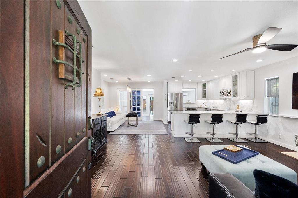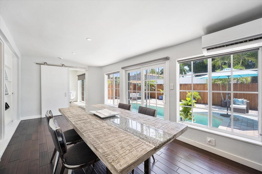 This beautiful gem is a one of a kind. This immaculate corner home with pool is move in ready with custom kitchen and bathrooms with top of the line everything! A resort-like feeling throughout the home and outdoors prevail. Generator, newer roof, A/C and all impact glass. Wood floors throughout. The backyard is oversized with an inviting pool. Chicago brick double driveway that can accommodate 3 cars for off street parking. Close to all the existing great restaurants and the new ones coming soon! It is the place to be. No details overlooked in this inviting home. One room could be converted to make another bedroom. Great area for seasonal/annual or airbnb rental income. Must see to appreciate!