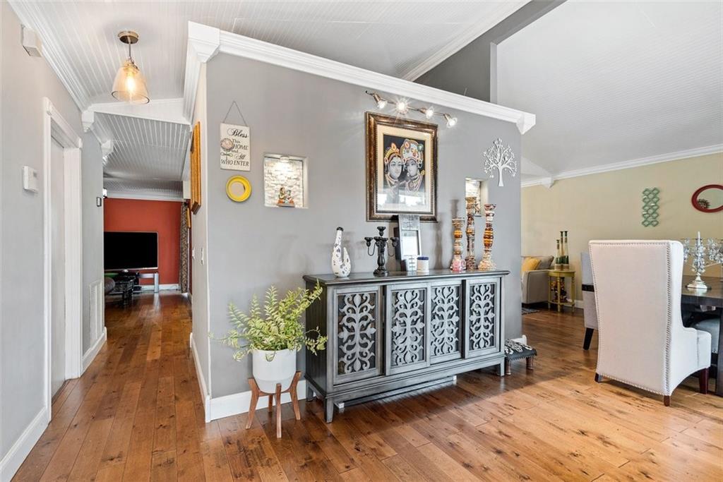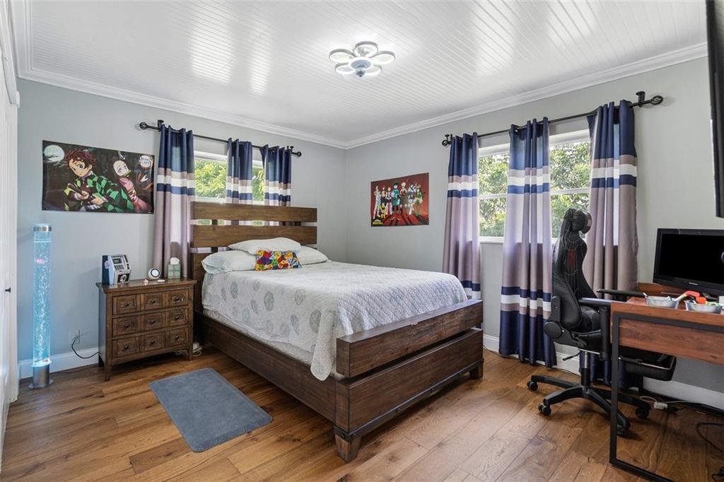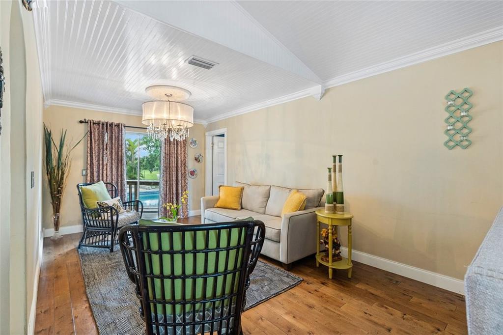 Beautifully updated home sited on an expansive waterfront lot offering privacy and plenty of room for outdoor enjoyment. A welcoming front porch and circular driveway & manicured landscape make for an idyllic curb appeal. The updated interior is light airy with high vaulted ceilings and oversized windows. Glorious wood floors throughout all living areas. Jaw-dropping crisp white kitchen with huge island, granite, and gas stove. The primary suite is spacious and has a gorgeous bath. Outside is a pool, a large screened porch, and serene water views. Flex room can be 5th bedroom, office or den. Some impact windows.