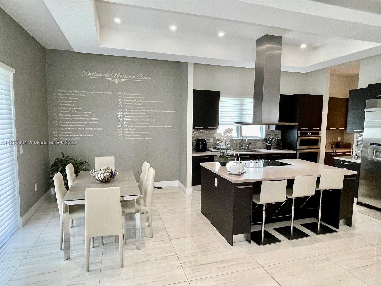 This Dream home is everything you can imagine! 3-story single-family home with 5 bedrooms, 6 1/2 baths, 2 car garage with pool, and a huge terrace with built-in Bbq island! This house has everything from a wine cellar with a thermostat, to a custom closet for every single room of the house! Everything has been upgraded, wireless blinds, kitchen cabinets, flooring, lamps, and top-of-the-line appliances. Buy in now to what promises to be one of Doral's most high-end neighborhoods!