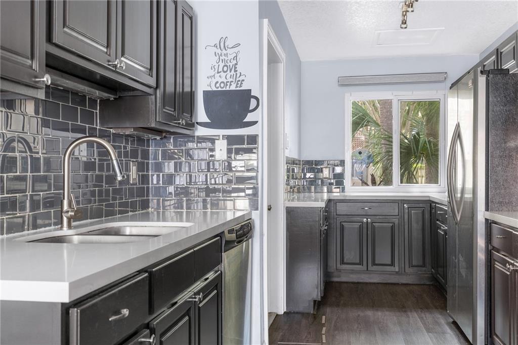 Centrally located in the desirable Winds of Jacaranda townhome community, fall in love with the style & convenience in this light, bright two-story home featuring many upgrades including impact windows & doors for added peace of mind. Design details include vaulted ceilings, new paint, updated flooring, new kitchen & baths, plus updated fixtures & finishes. Private fenced yard plus enclosed terrace offers plenty of space for al fresco living, dining & entertaining. Outside you’ll find hot tub-ready electrical for easy installation. Elegant kitchen features custom cabinetry, tile backsplash & stainless steel appliances. Upstairs primary bedroom features walk-in closet & en suite bath. Secondary bedroom has its own private bath as well. Winds of Jacaranda features private pool & low HOA.