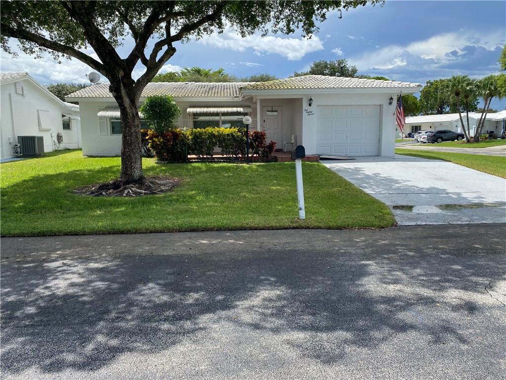 Sellers concession towards buyers closing cost or Buyer's 3/2/1 interest buy down at 3%. Well maintain, clean and spacious 2/2 Single family home with 1 car garage, situation on a corner lot. This home features hurricane impact windows and garage door. Marble tile floors throughout. Stainless stain refrigerator, and new washer. The Association replaces the roof every 10 years. If you are looking for space this house has it. The community is well maintained and centrally located. Community has 2 heated pools, spa, gym, tennis courts, activities, and free shutter services to nearby stores. Maintenance covers Outside painting, roof repair & replacement, basic cable, termite, pest control and lawn services. Community represent itself as 55+.