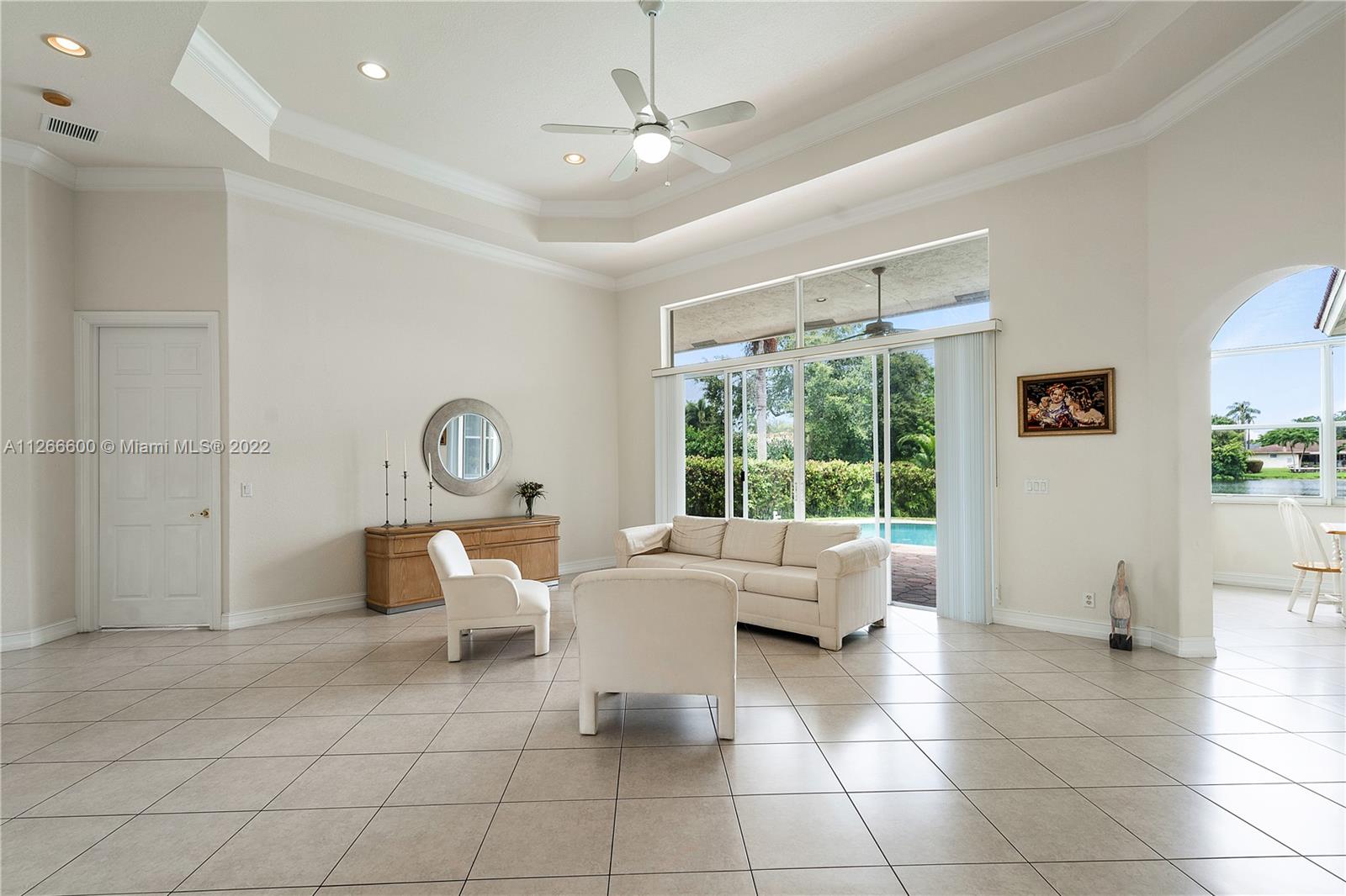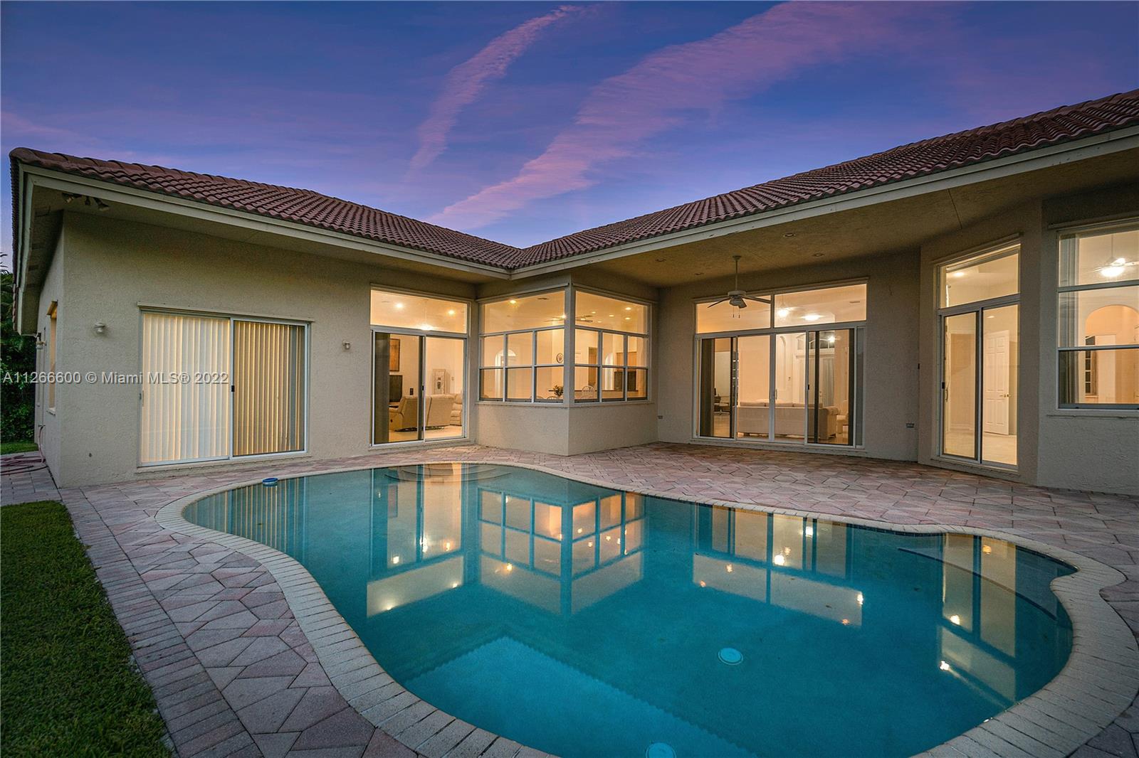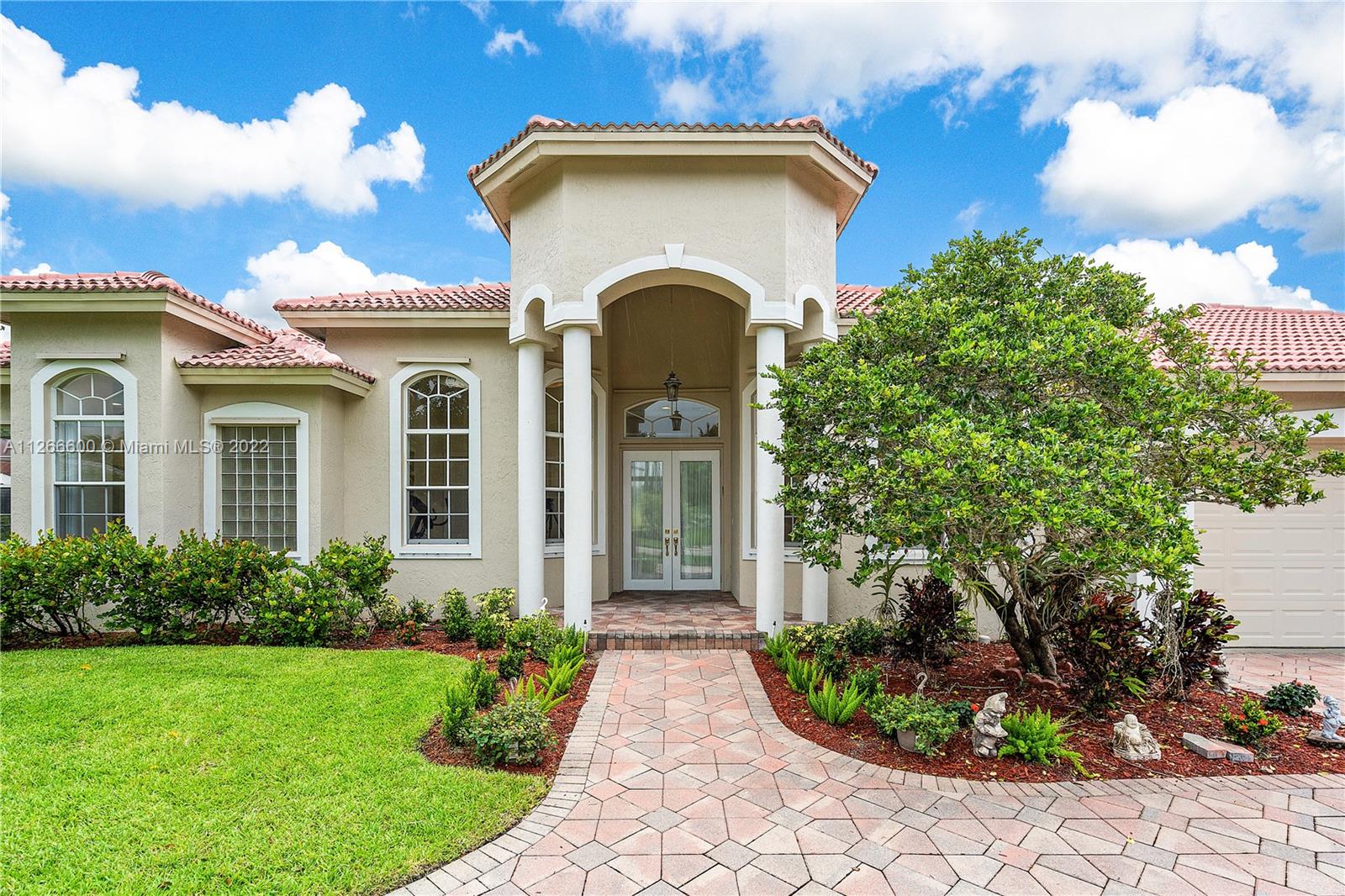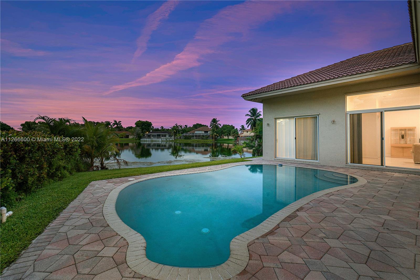 This elegant lakefront home in Jacaranda Country Club is only a 5-minute walk to the golf course, clubhouse, and restaurant. With large windows, crown molding, and high ceilings, it is light and airy throughout. The spacious living area has beautiful views of the lake, backyard, and pool. An entertainer's kitchen includes double ovens and plenty of counter space. The master suite has a spacious Jacuzzi tub, large shower, and walk in closets with built- in cabinetry. The house also includes an exercise room, office, and a security system with cameras and a safe in the closet. This home provides a calming oasis that still maintains contact with the city only a short drive away. New carpeting to be installed 9/2. Homeowner warranty on all appliances and pool pump for buyer.