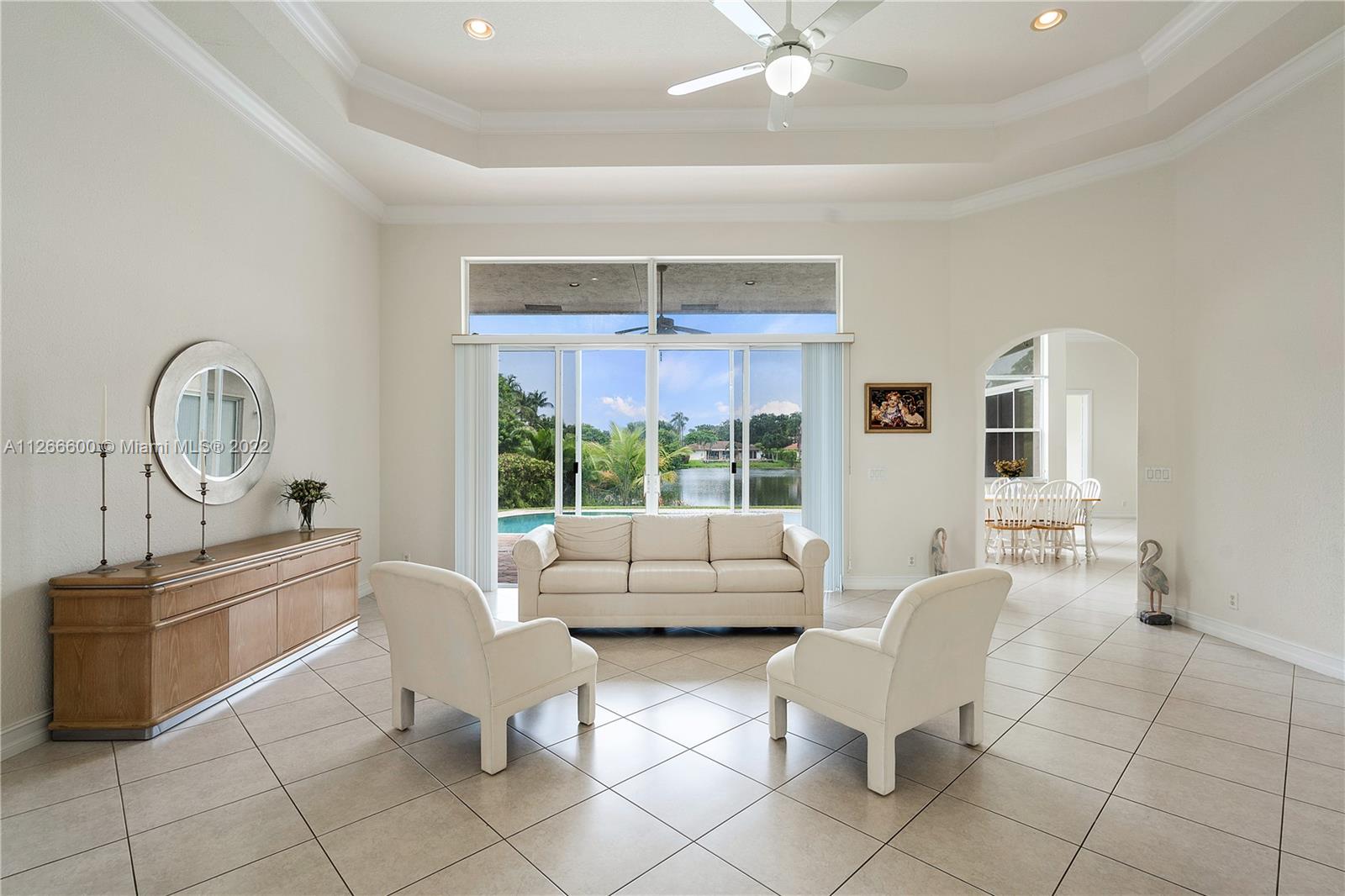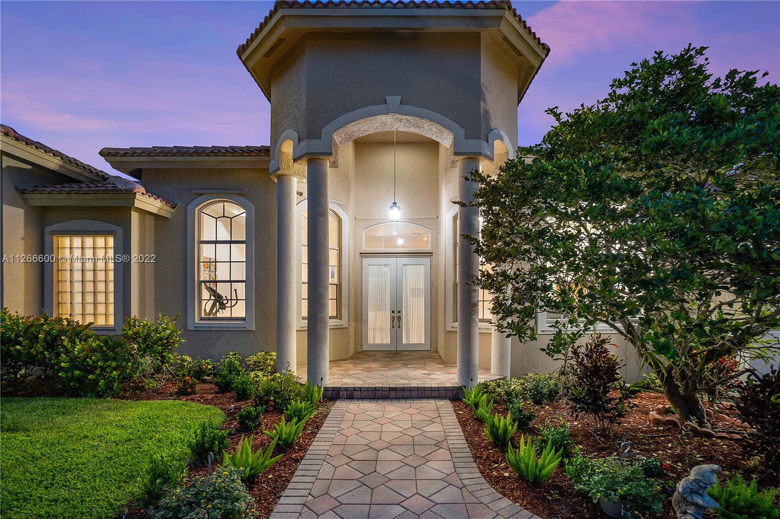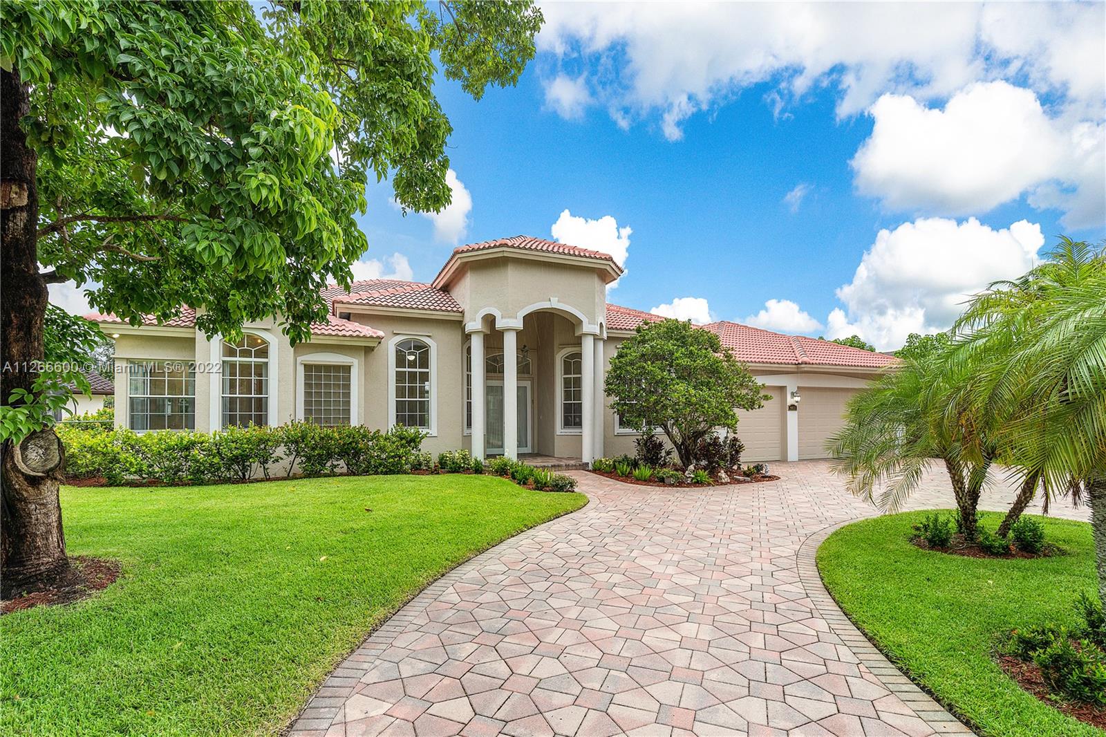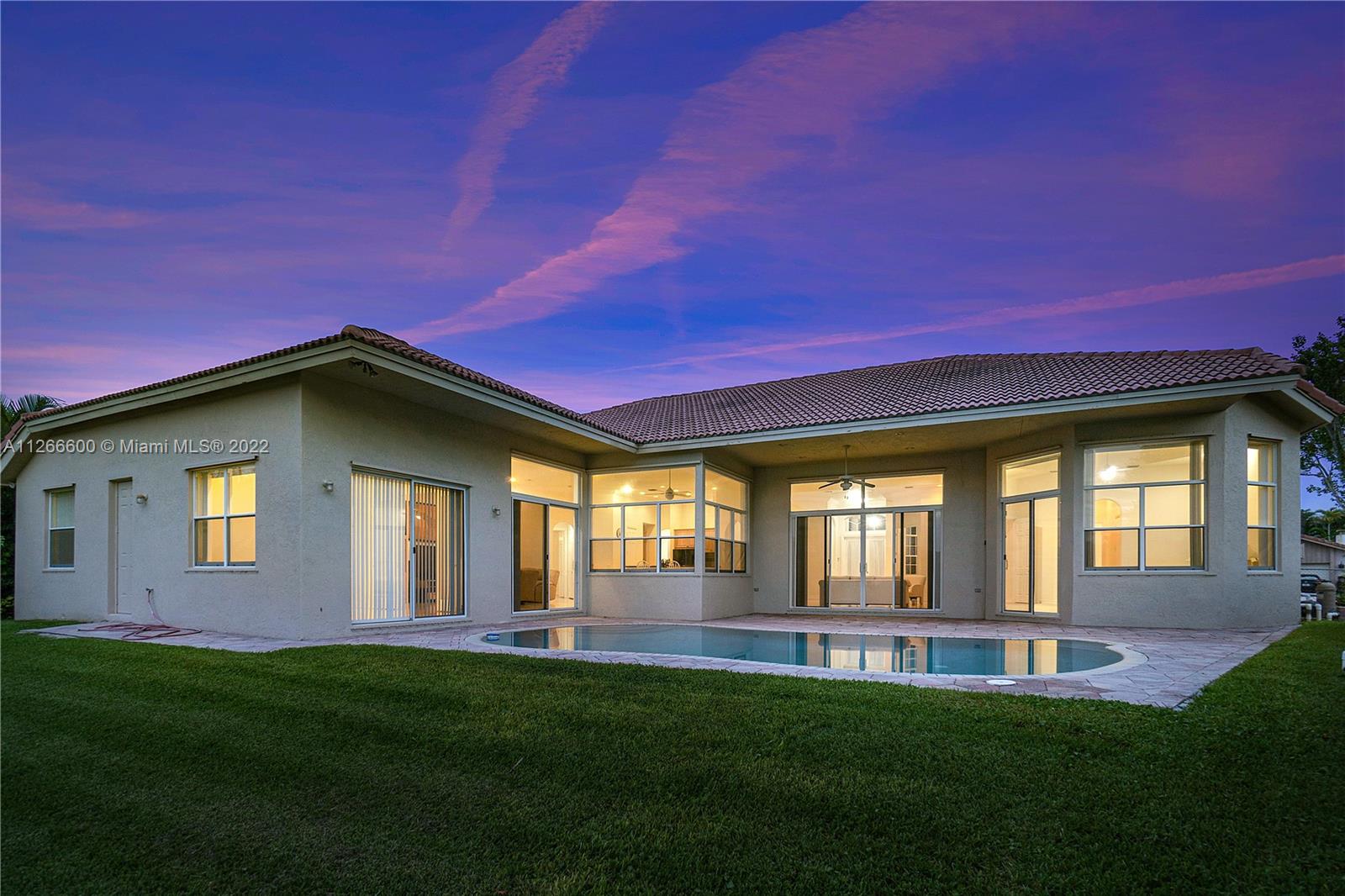 This elegant lakefront home in Jacaranda Country Club is only a 5-minute walk to the golf course, clubhouse, and restaurant. With large windows, crown molding, and high ceilings, it is light and airy throughout. The spacious living area has beautiful views of the lake, backyard, and pool. An entertainer's kitchen includes double ovens and plenty of counter space. The master suite has a spacious Jacuzzi tub, large shower, and walk in closets with built- in cabinetry. The house also includes an exercise room, office, and a security system with cameras and a safe in the closet. This home provides a calming oasis that still maintains contact with the city only a short drive away. New carpeting to be installed 9/2. Homeowner warranty on all appliances and pool pump for buyer.