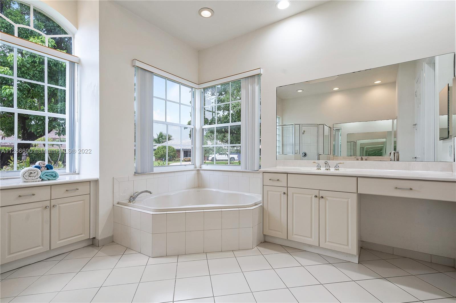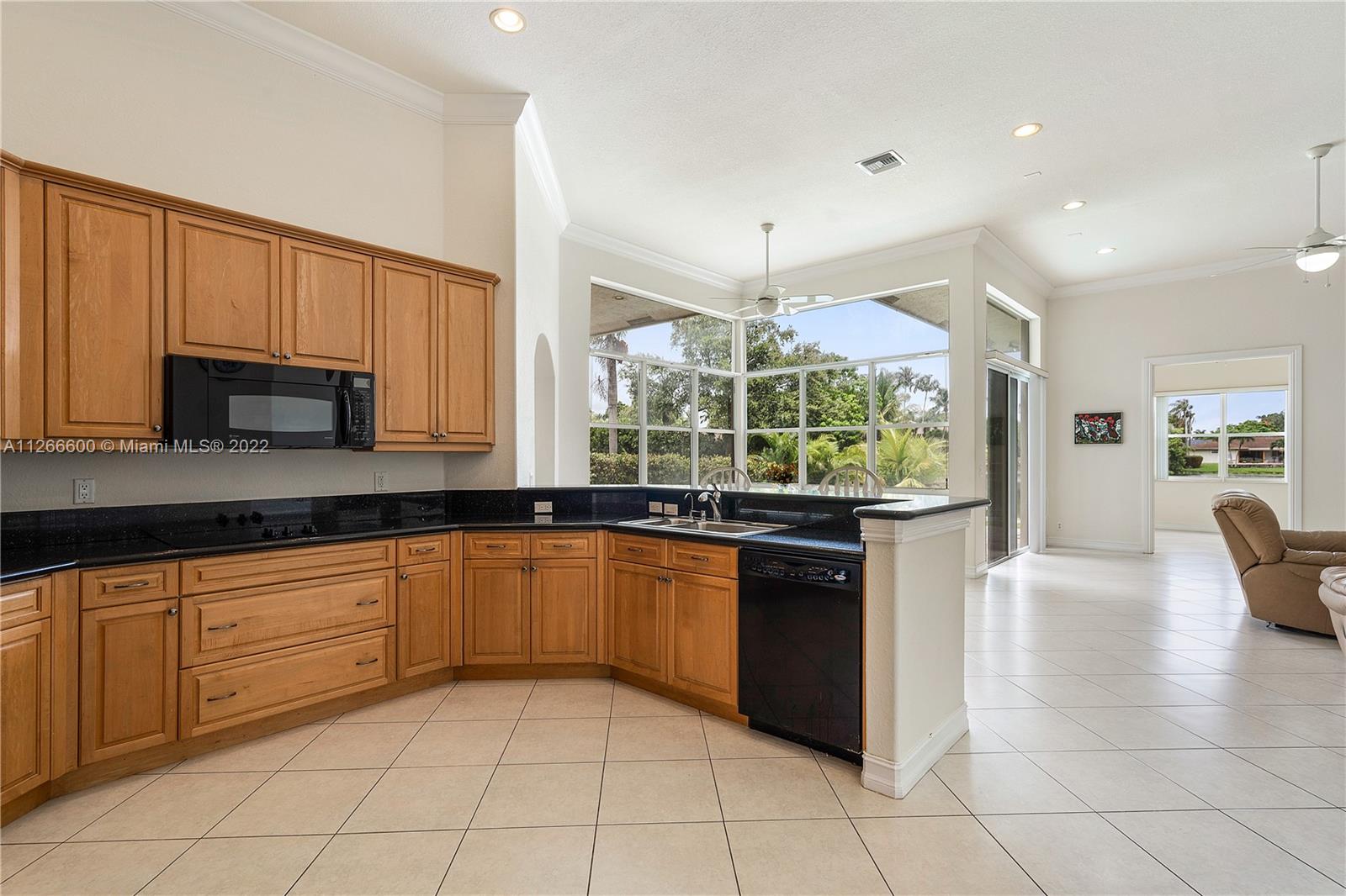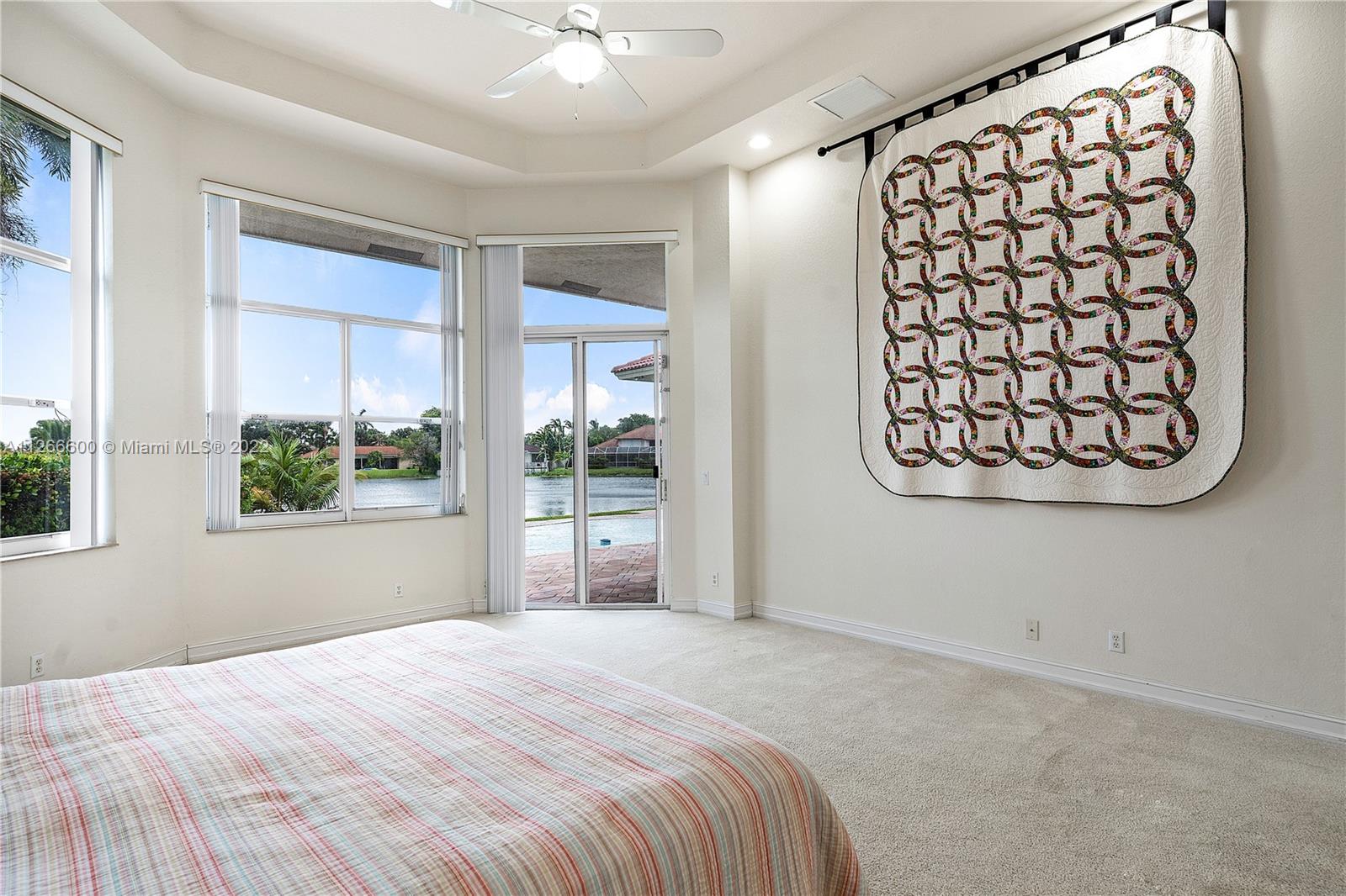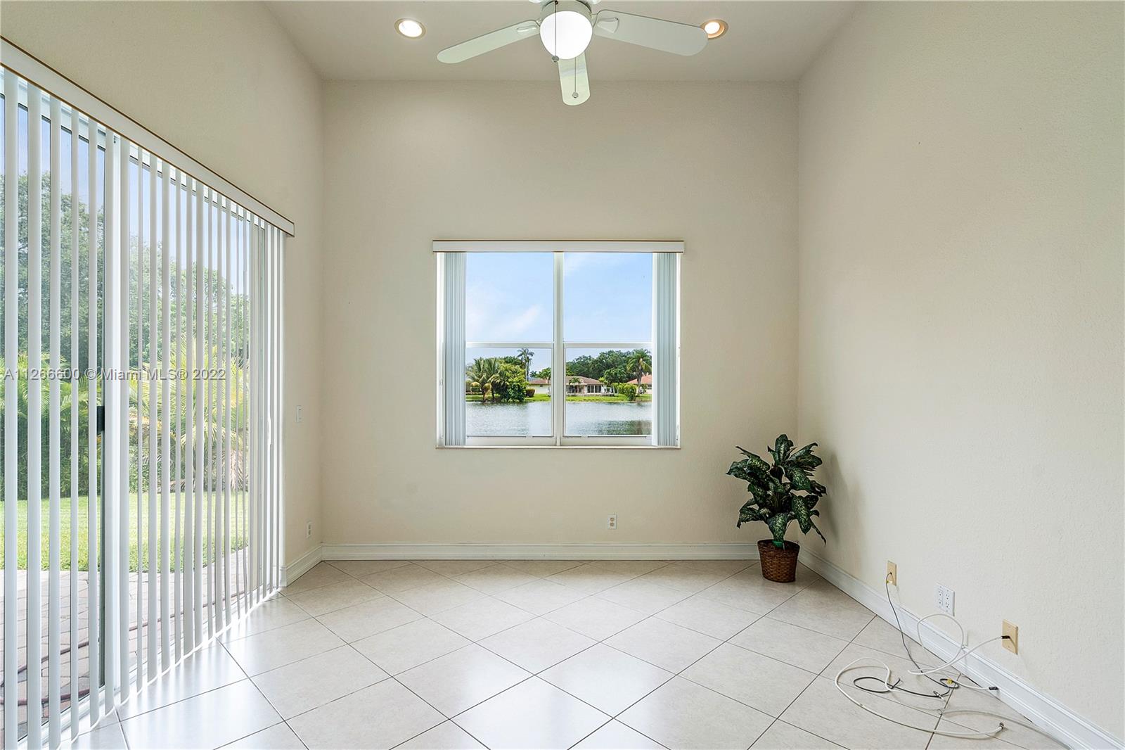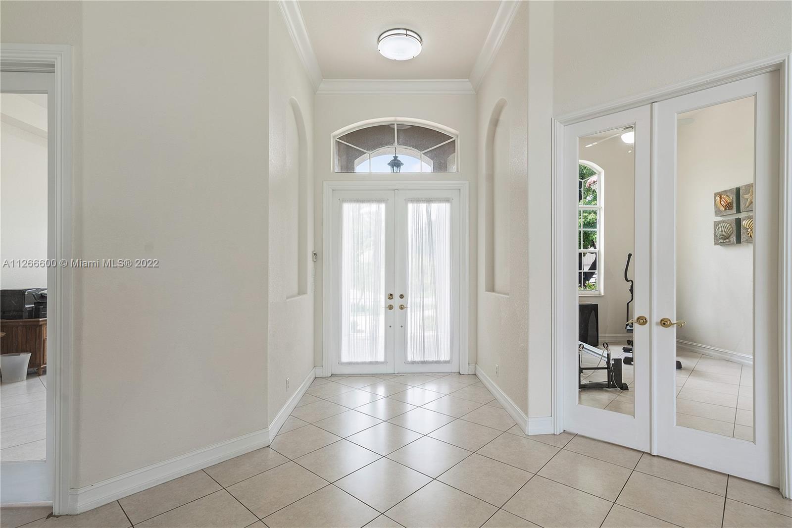 This elegant lakefront home in Jacaranda Country Club is only a 5-minute walk to the golf course, clubhouse, and restaurant. With large windows, crown molding, and high ceilings, it is light and airy throughout. The spacious living area has beautiful views of the lake, backyard, and pool. An entertainer's kitchen includes double ovens and plenty of counter space. The master suite has a spacious Jacuzzi tub, large shower, and walk in closets with built- in cabinetry. The house also includes an exercise room, office, and a security system with cameras and a safe in the closet. This home provides a calming oasis that still maintains contact with the city only a short drive away. New carpeting to be installed 9/2. Homeowner warranty on all appliances and pool pump for buyer.