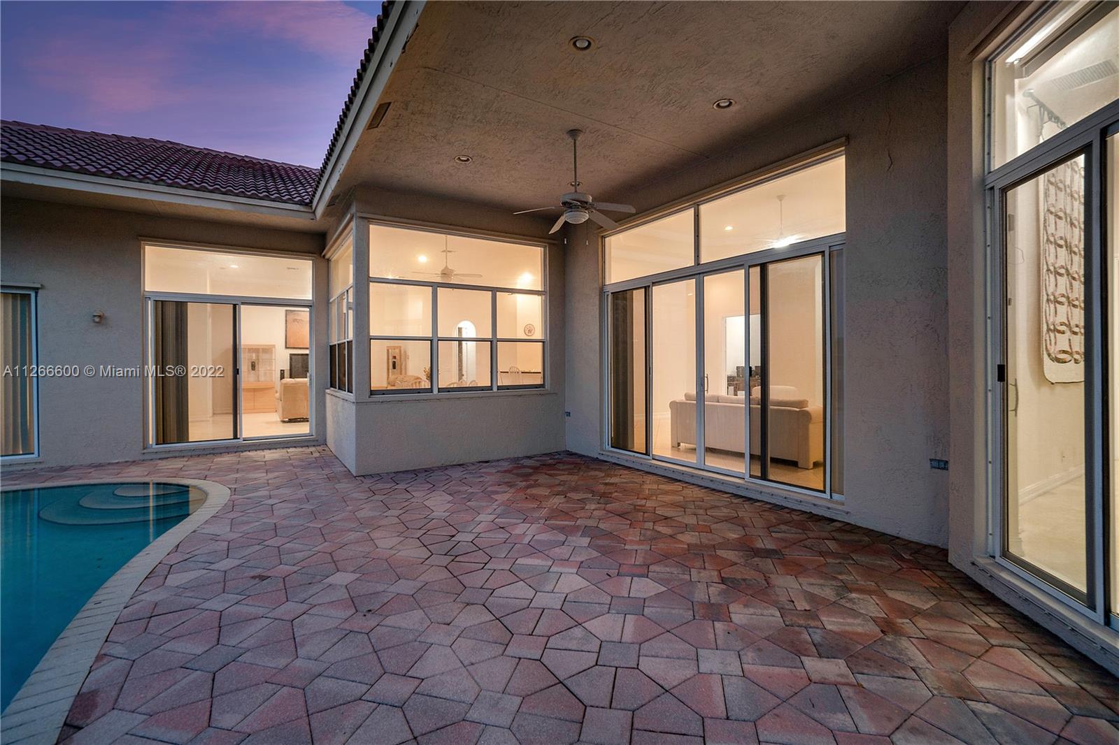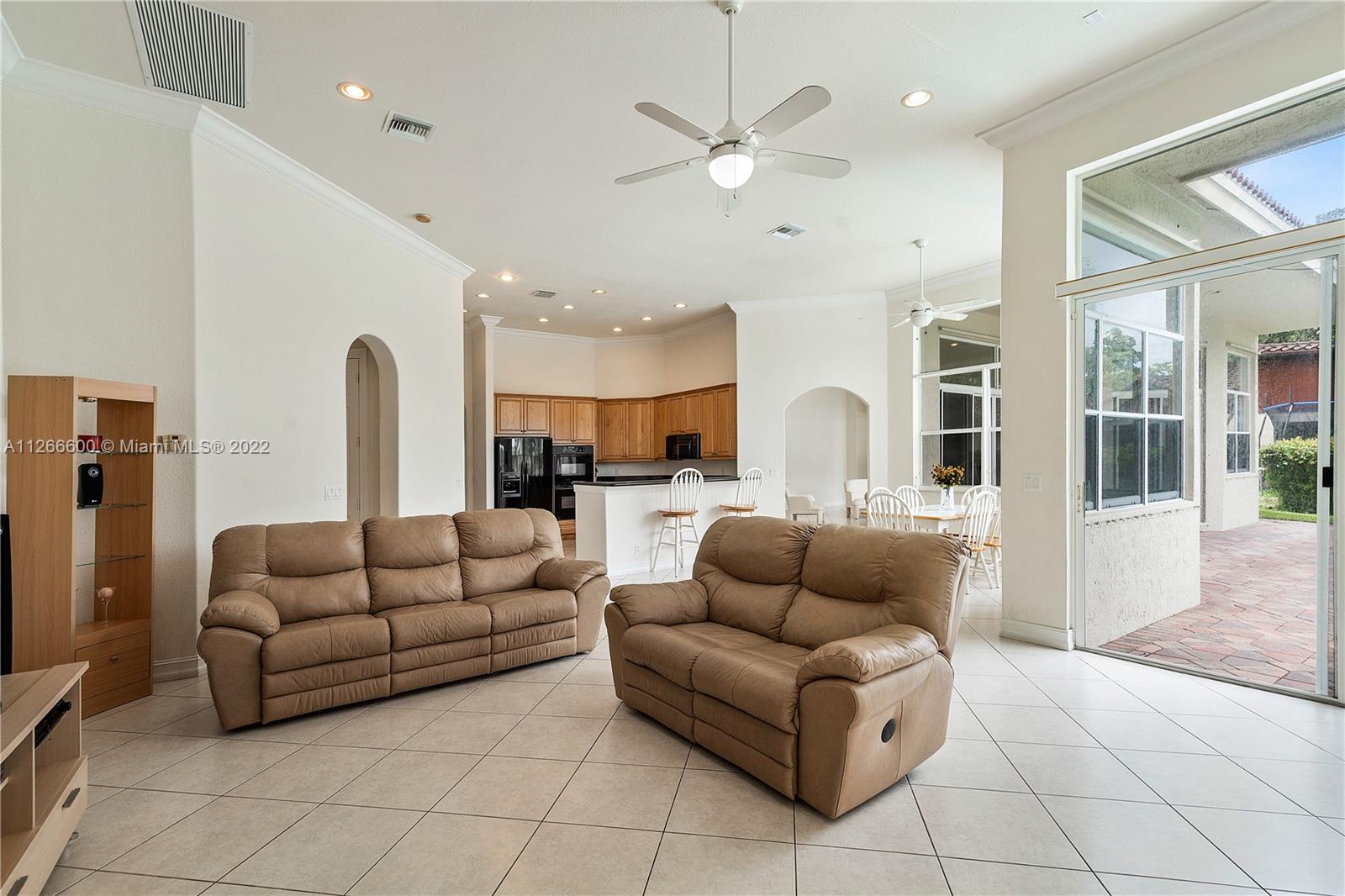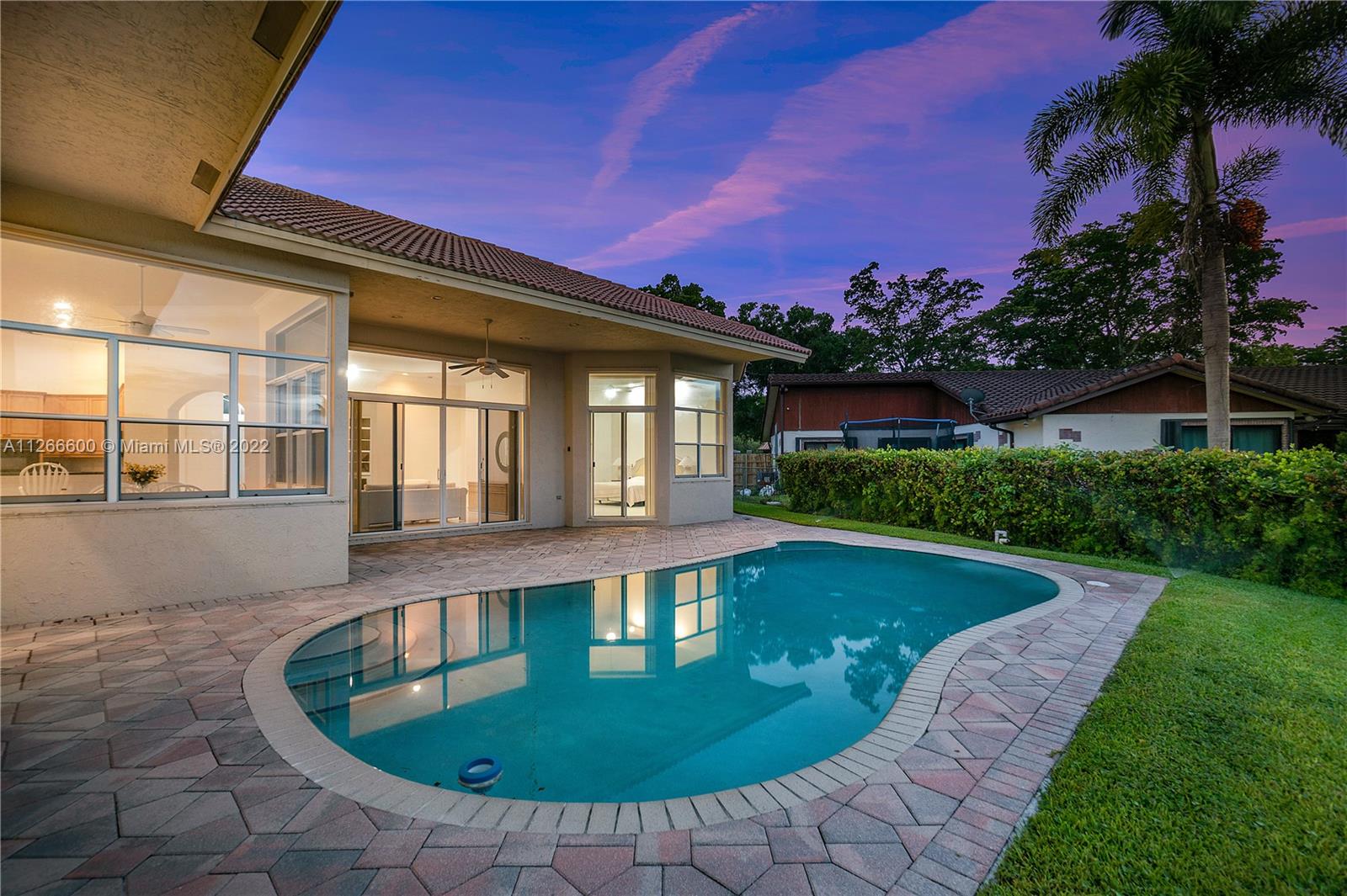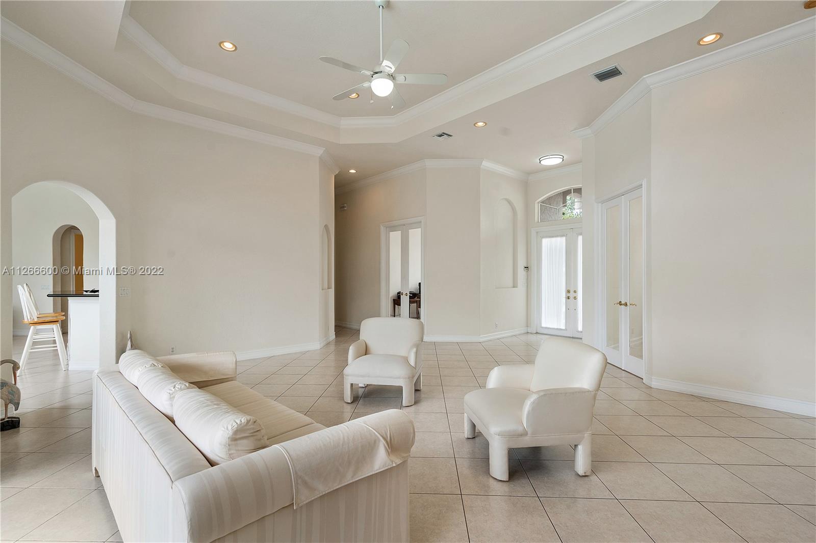 This elegant lakefront home in Jacaranda Country Club is only a 5-minute walk to the golf course, clubhouse, and restaurant. With large windows, crown molding, and high ceilings, it is light and airy throughout. The spacious living area has beautiful views of the lake, backyard, and pool. An entertainer's kitchen includes double ovens and plenty of counter space. The master suite has a spacious Jacuzzi tub, large shower, and walk in closets with built- in cabinetry. The house also includes an exercise room, office, and a security system with cameras and a safe in the closet. This home provides a calming oasis that still maintains contact with the city only a short drive away. New carpeting to be installed 9/2. Homeowner warranty on all appliances and pool pump for buyer.