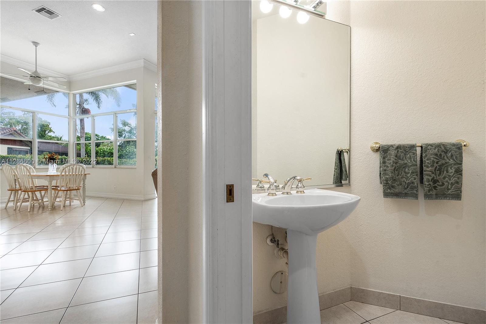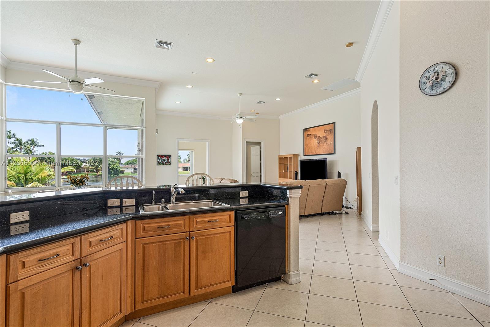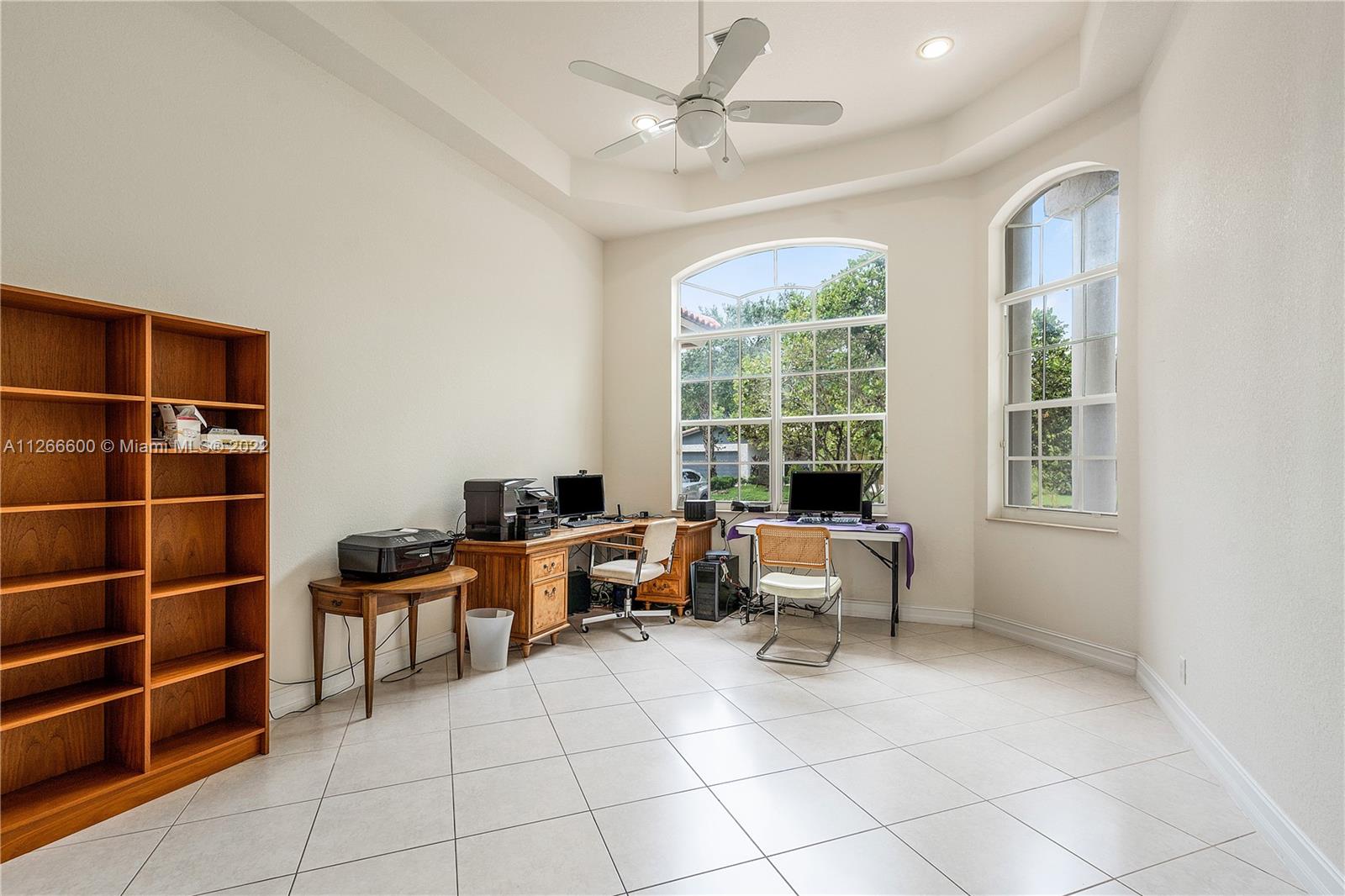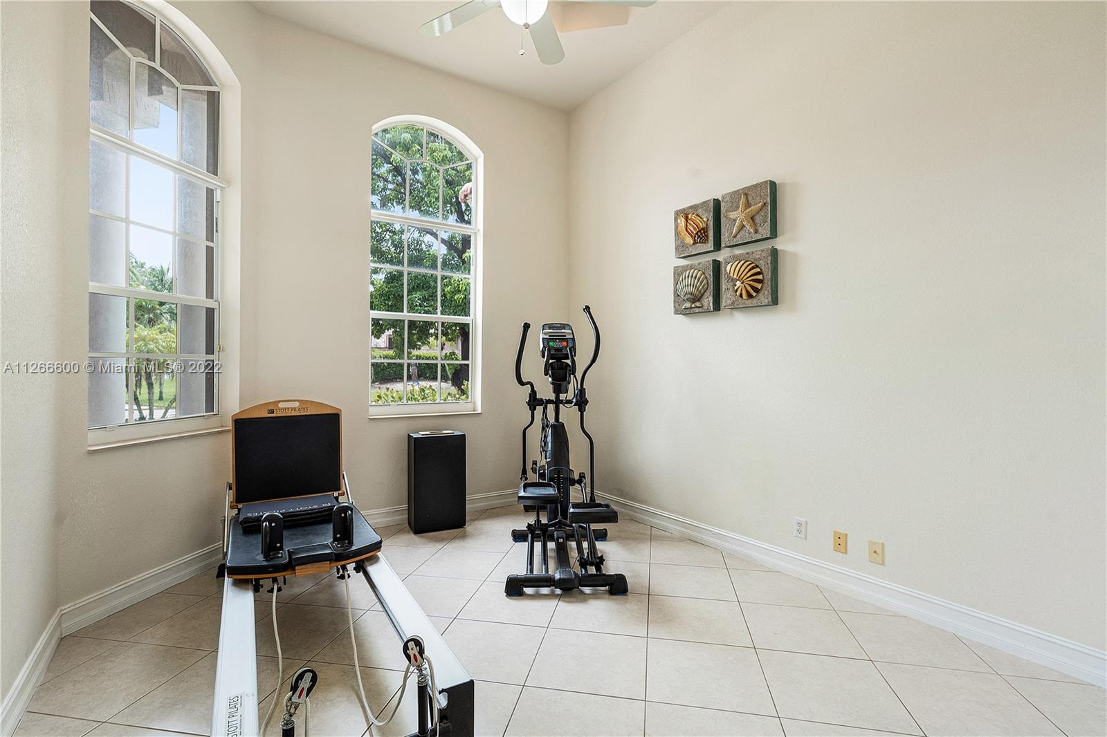 This elegant lakefront home in Jacaranda Country Club is only a 5-minute walk to the golf course, clubhouse, and restaurant. With large windows, crown molding, and high ceilings, it is light and airy throughout. The spacious living area has beautiful views of the lake, backyard, and pool. An entertainer's kitchen includes double ovens and plenty of counter space. The master suite has a spacious Jacuzzi tub, large shower, and walk in closets with built- in cabinetry. The house also includes an exercise room, office, and a security system with cameras and a safe in the closet. This home provides a calming oasis that still maintains contact with the city only a short drive away. New carpeting to be installed 9/2. Homeowner warranty on all appliances and pool pump for buyer.