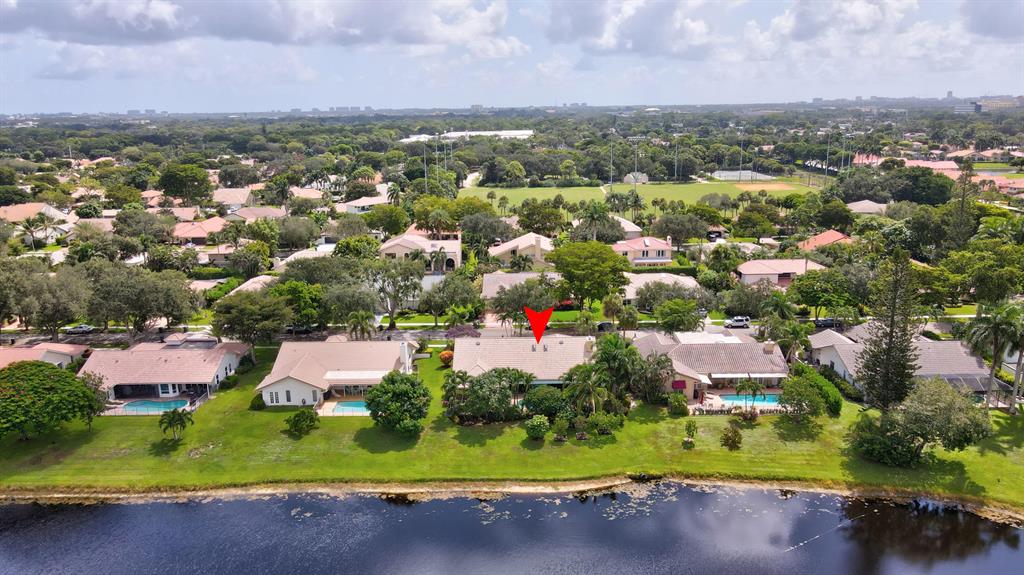GORGEOUS lake front home in New Floresta, one of Boca Raton's premier communities! You'll love this 3 bedroom 2.5 bath the moment you walk through the double door entry and get welcomed by the soaring tongue and groove cathedral ceiling and travertine tile with skylights that perfectly brighten the open floor plan. A large kitchen, perfect for entertaining guest, with a beautiful view of you private tropical paradise. The backyard is well designed for your private enjoyment with a beautiful tropical land scape surrounding the luxurious pool and covered patio, with your very own fruit trees right outside the gated area where you can pick fresh which go perfectly with a summer pool day. Great location, In close proximity to Town Center Mall, parks, beaches, fine dining, and entertainment.