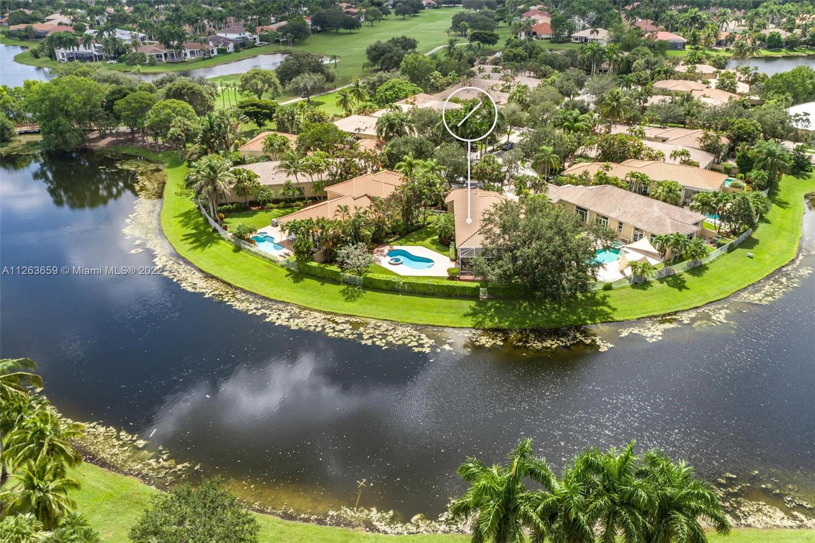 This spacious 3 bed/3 bath waterfront home in Bay Isle - Weston Hills CC has it all. This 2,652sf home is located on a 14,241 cul de sac lot. NEW ROOF. NEW AC. Pool surface just refinished. Open floor plan with 14' ceilings. Open kitchen w/ new appliances and granite countertops. Plantation shutters. LED lighting. Enjoy incredible sunset views from your screened in patio with oversized lot providing the ultimate privacy. Accordian shutters throughout. 2-car garage. Fully maintained community including lawn/landscaping, fertilization, pressure cleaning and painting.