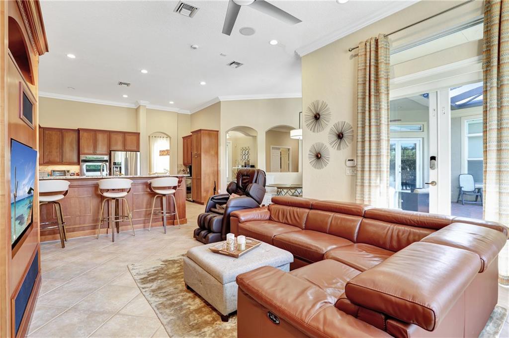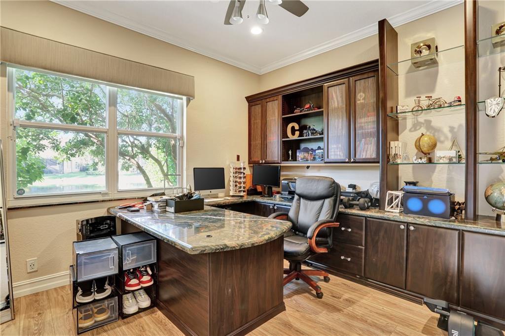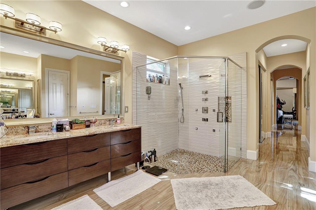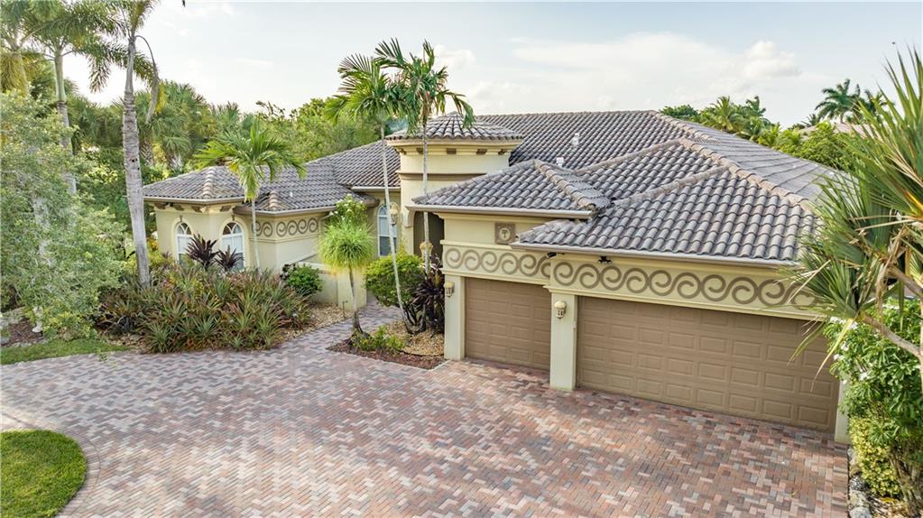 Splendid Heron Bay home with 5 Bed/3.5 Bath/1 Office-den/formal dining/3 Car garage on a desirable waterfront corner lot, nicely landscaped, with large paved driveway and sidewalks. Triple split layout designed for a growing family. The saltwater/heated pool features the Fastlane swim system, jacuzzi and a large screened area. The expansive master bedroom and bathroom suite includes a workout area. Upgrades include impact windows, gas range and grill, security system with wired 16 cameras, California closets, central vacuum, AC in the garage, electric black-out drapes. World class amenities with 2 clubhouses, gym/classes, resort style pool, sauna, tennis, basketball courts, miles of walk/run/bike pathways. Heron Bay is a 24-Hour guard gated community located in A-rated school district.
