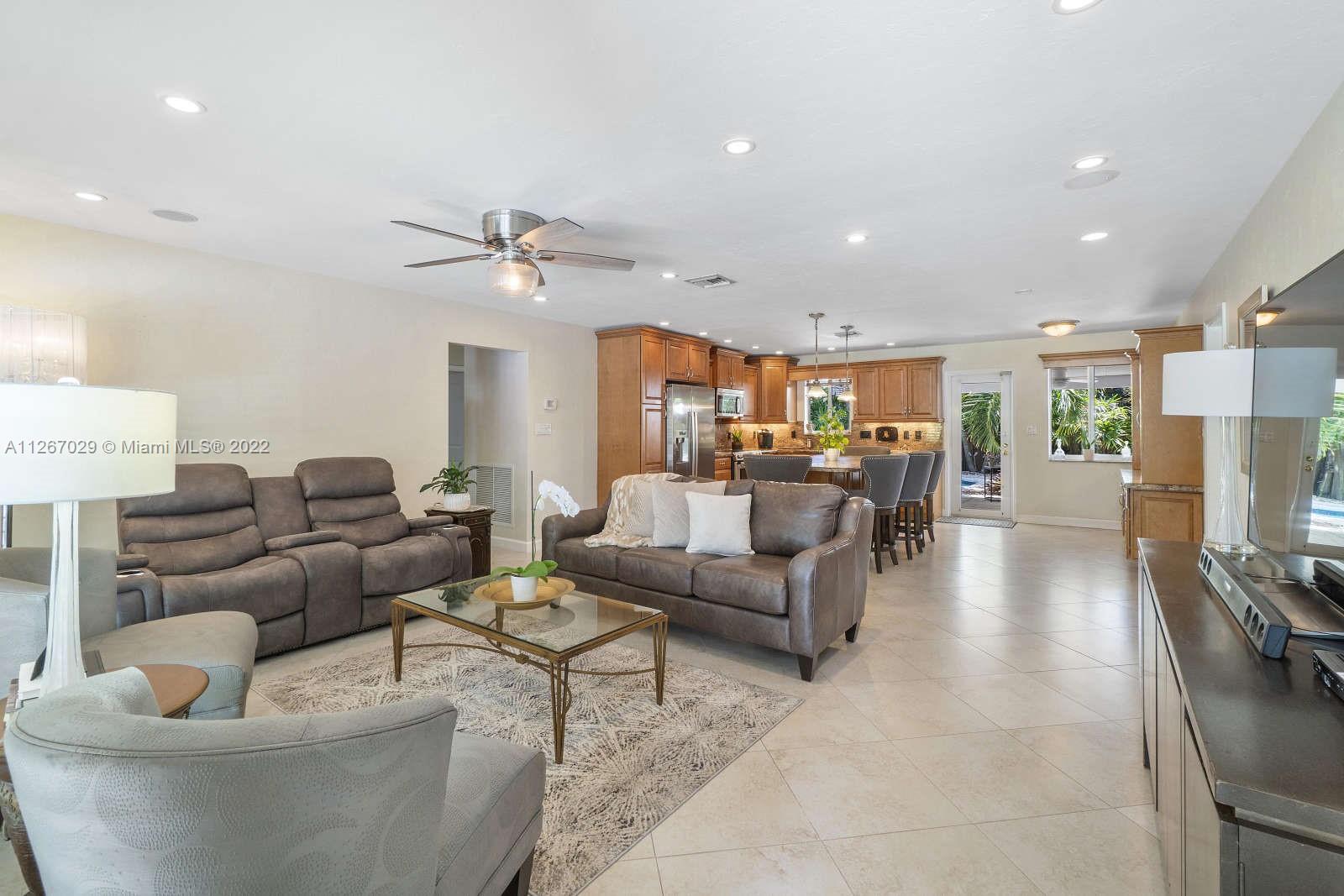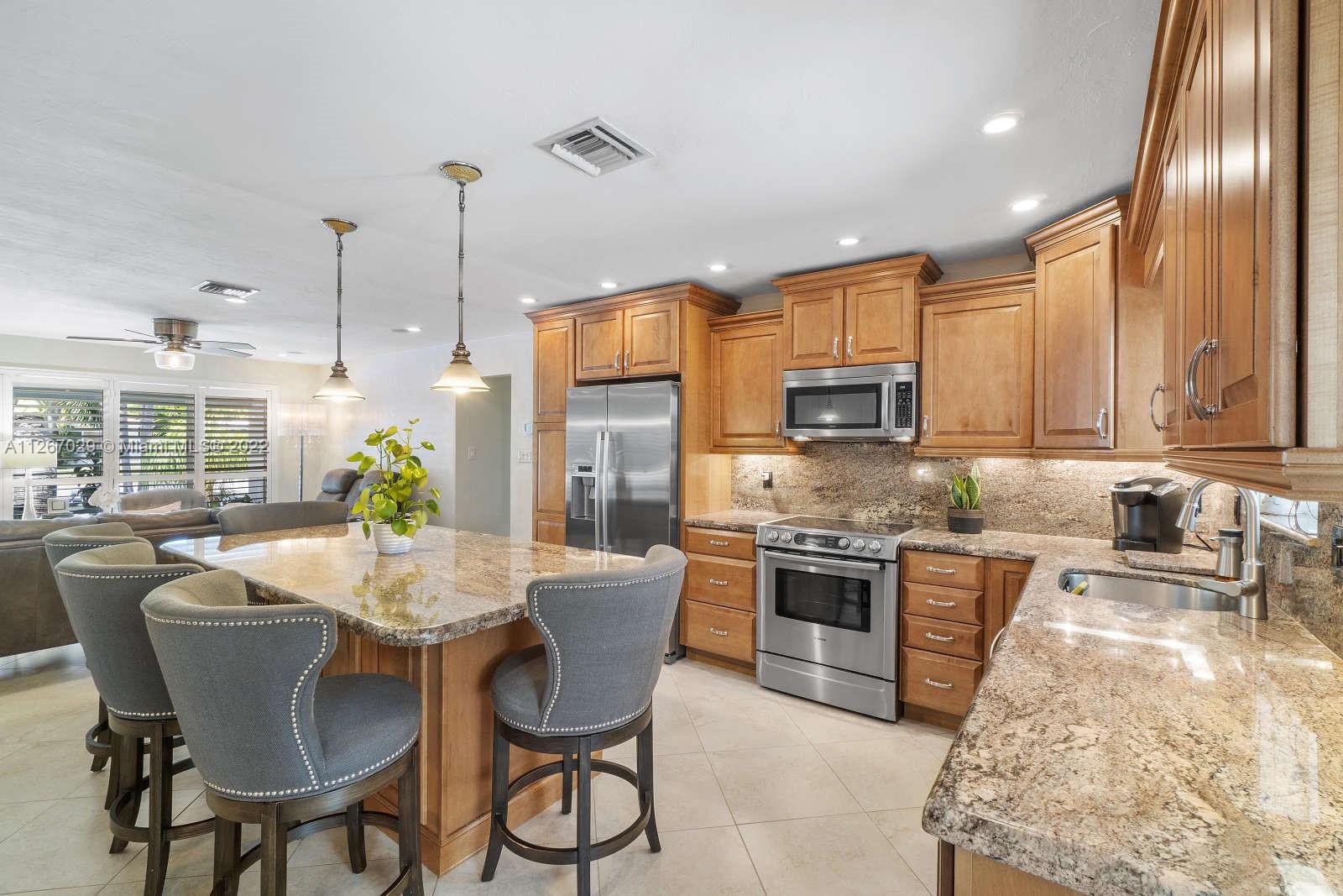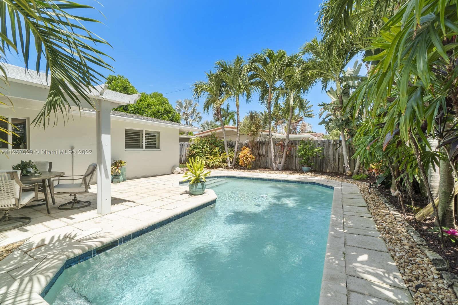 PRIME LOCATION in HOT area! A few short blocks to the beach, pier, restaurants and shopping! Paradise awaits in this 2/2 w/garage, fully remodeled, open-concept pool home w/impact windows/doors, neutral tile throughout, custom kitchen w/Bosch S/S appliances, pantry w/ pullout shelves, granite counters, plus a HUGE center island perfect for entertaining! Step outside and enter a tropical oasis! Fabulous, temperature controlled pool, spacious covered patio, fully-fenced yard w/outdoor shower, professional tropical landscaping, lighting, pavers and sun pad. Newly installed turf will be perfect for your pets! Huge circular driveway and no HOA. Nothing to do here but relax and enjoy the south Florida lifestyle. Hurry!