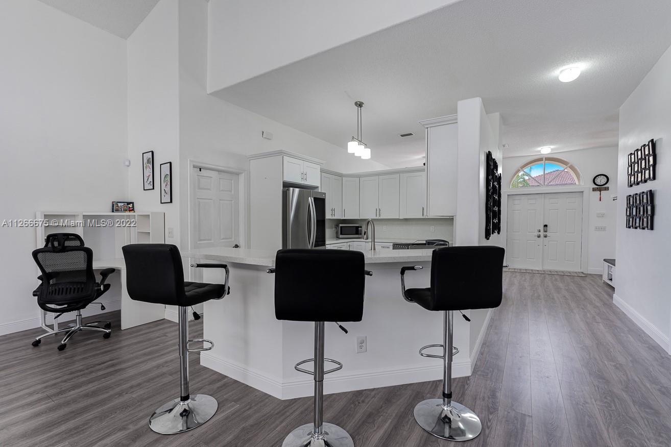 BEAUTIFUL 4/2.5 ONE STORY, WITH AN OVERSIZED POOL IN SILVER LAKES! NEW ROOF (2021)THIS HOME FEATURES NEW WOOD FLOOR THROUGHOUT . NEW UPGRADED KITCHEN WITH QUARTZ COUNTERTOPS, WOOD CABINETRY AND STAINLESS STEEL APPLIANCES. NEW HALF BATH AND NEW SECOND BATH COMPLETELY UPGRADED WITH QUARTZ COUNTERTOPS, NEW LIGHTING FIXTURES AND NEW TILE. LARGE MASTER. FULLY FENCED-IN BACKYARD WITH A POOL & SPA, AND PLENTY OF ROOM TO ENTERTAIN. HOME IS PROTECTED BY ACCORDION SHUTTERS. HOME ALSO FEATURES A WATER SOFTENER & REVERSE OSMOSIS SYSTEM! NEW AC, NEW WATER HEATER. NO RENTING FIRST YEAR.