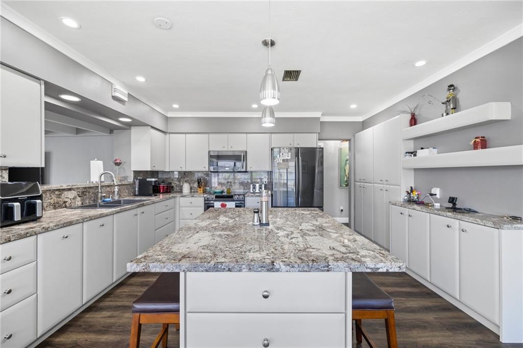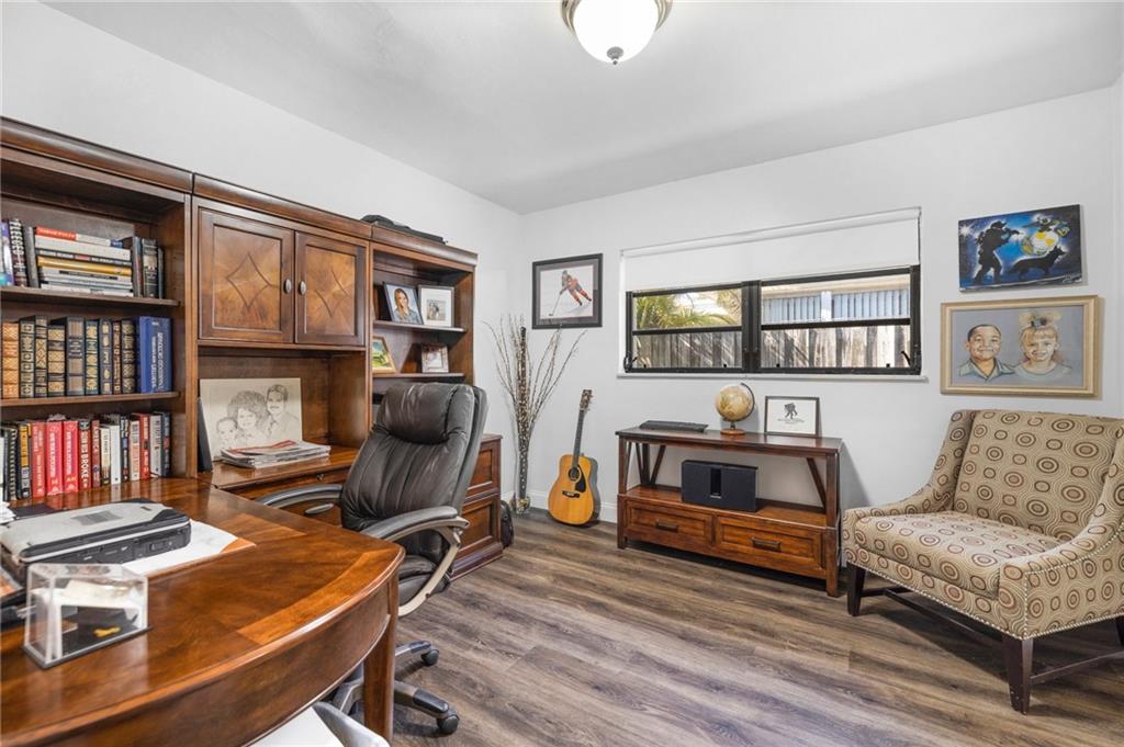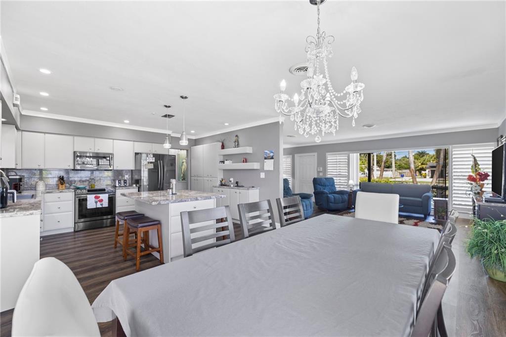 Highly sought-after Hollywood Hills updated 3/2. The beautiful house has open floor plan beginning with a spacious living room, which seamlessly opens to the dining room and modern kitchen. UPGRAGES: New 40-year roof 8/22. The kitchen has newer cabinets, appliances, and matching marble backsplash and countertops. The bathroom received new tile work, vanity, and fixtures. The floor is a PVC faux wood, which looks great and adds to the warm overtones. Bdrms & family room are oversized. BONUS ROOMS There is a workshop with separate AC & laundry has new stackable washer/dryer. The house was freshly painted and is well maintained. It shows extremely well. Hollywood Hills continues to be a wonderful and diverse community close to the employment and entertainment destinations.