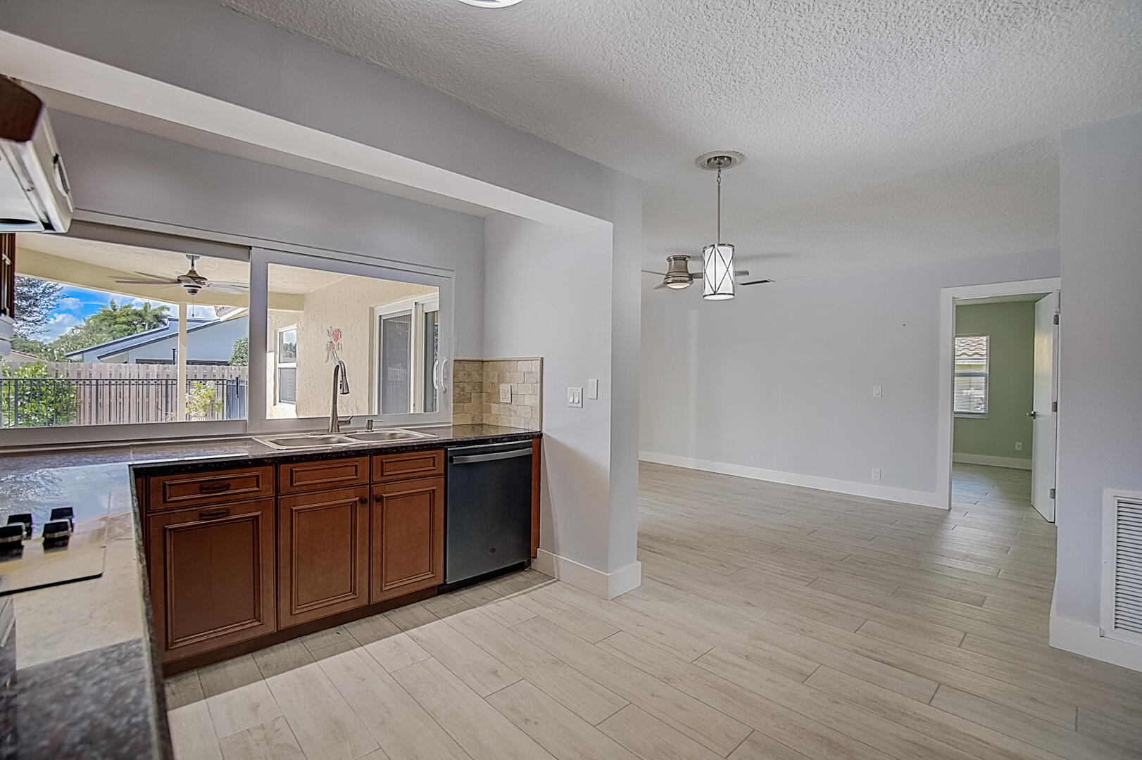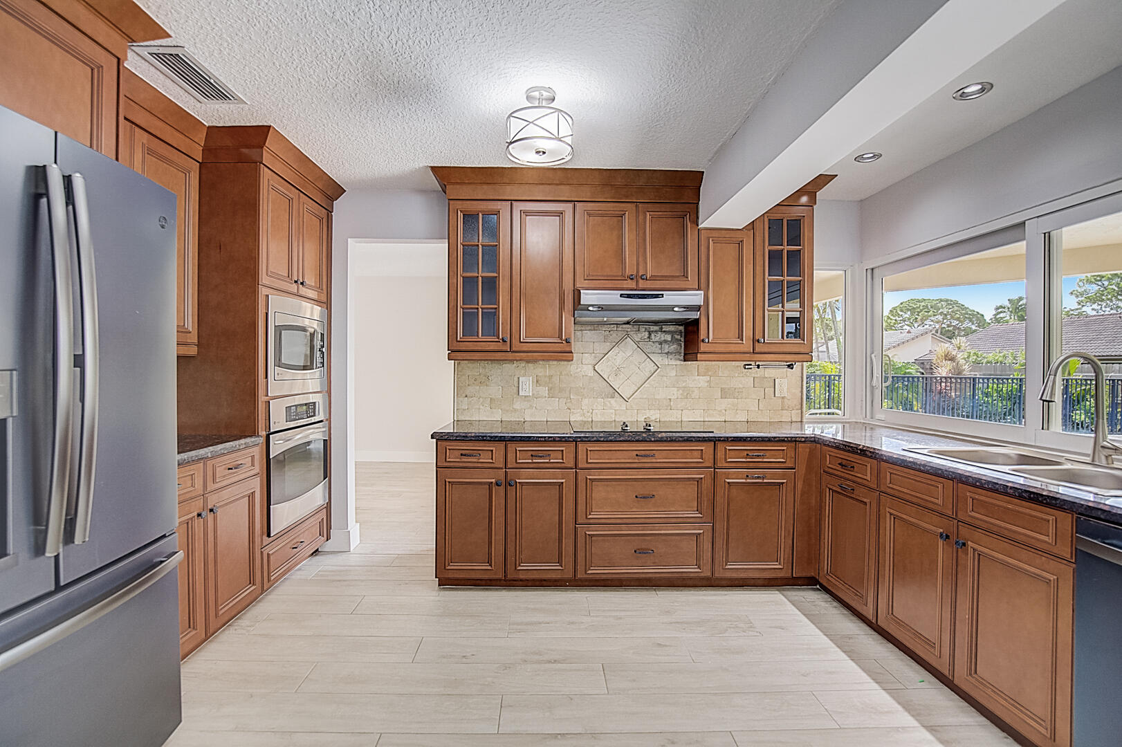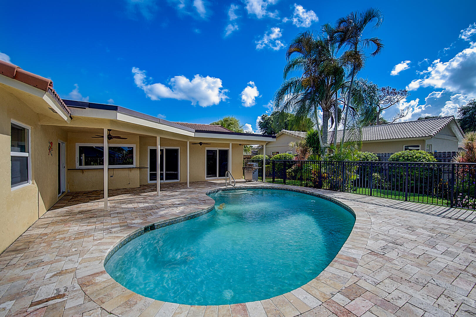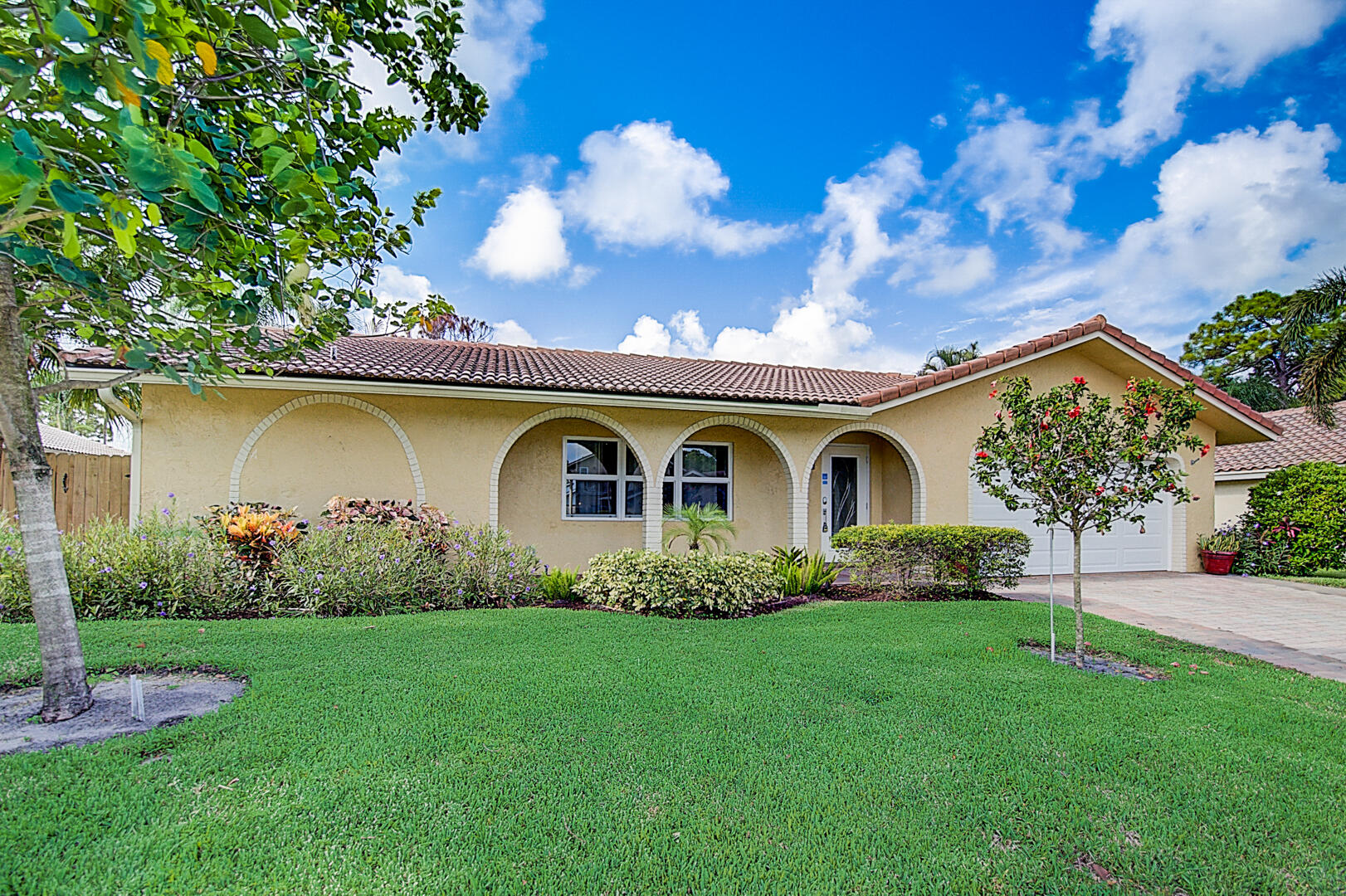 This Boca Raton one-story home offers a patio, granite countertops, and a two-car garage.