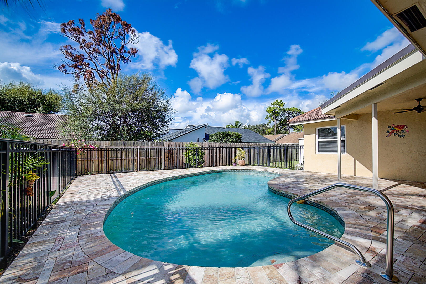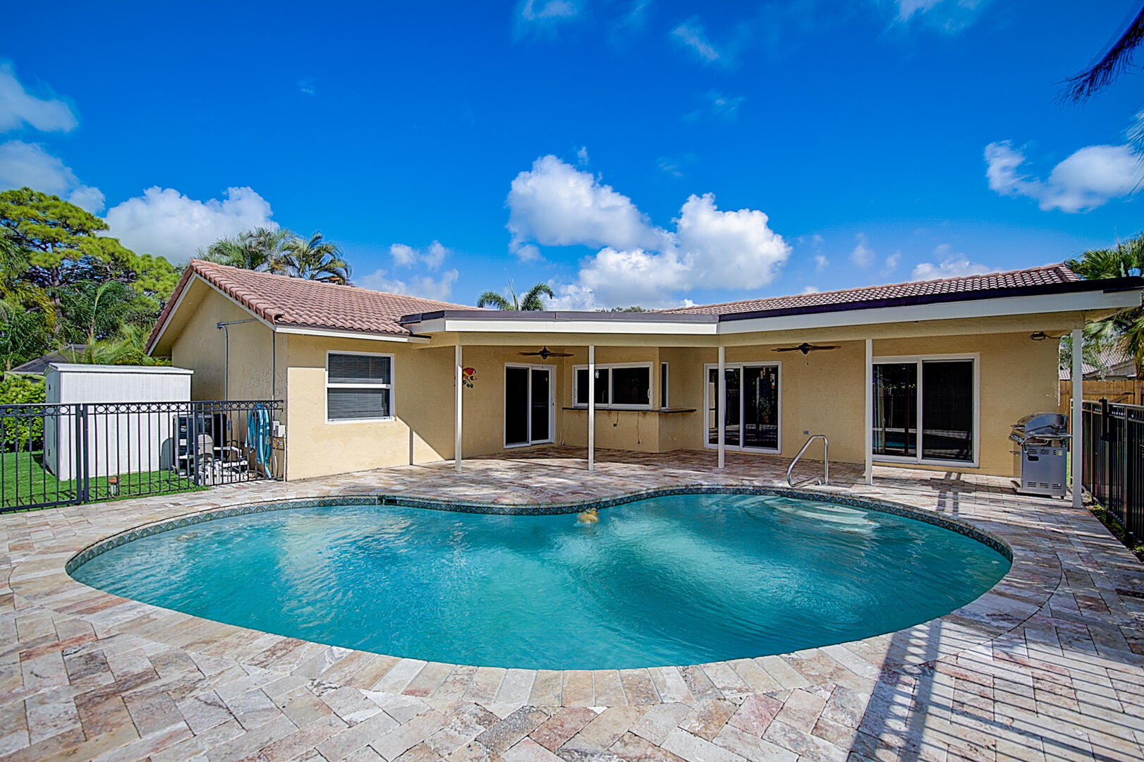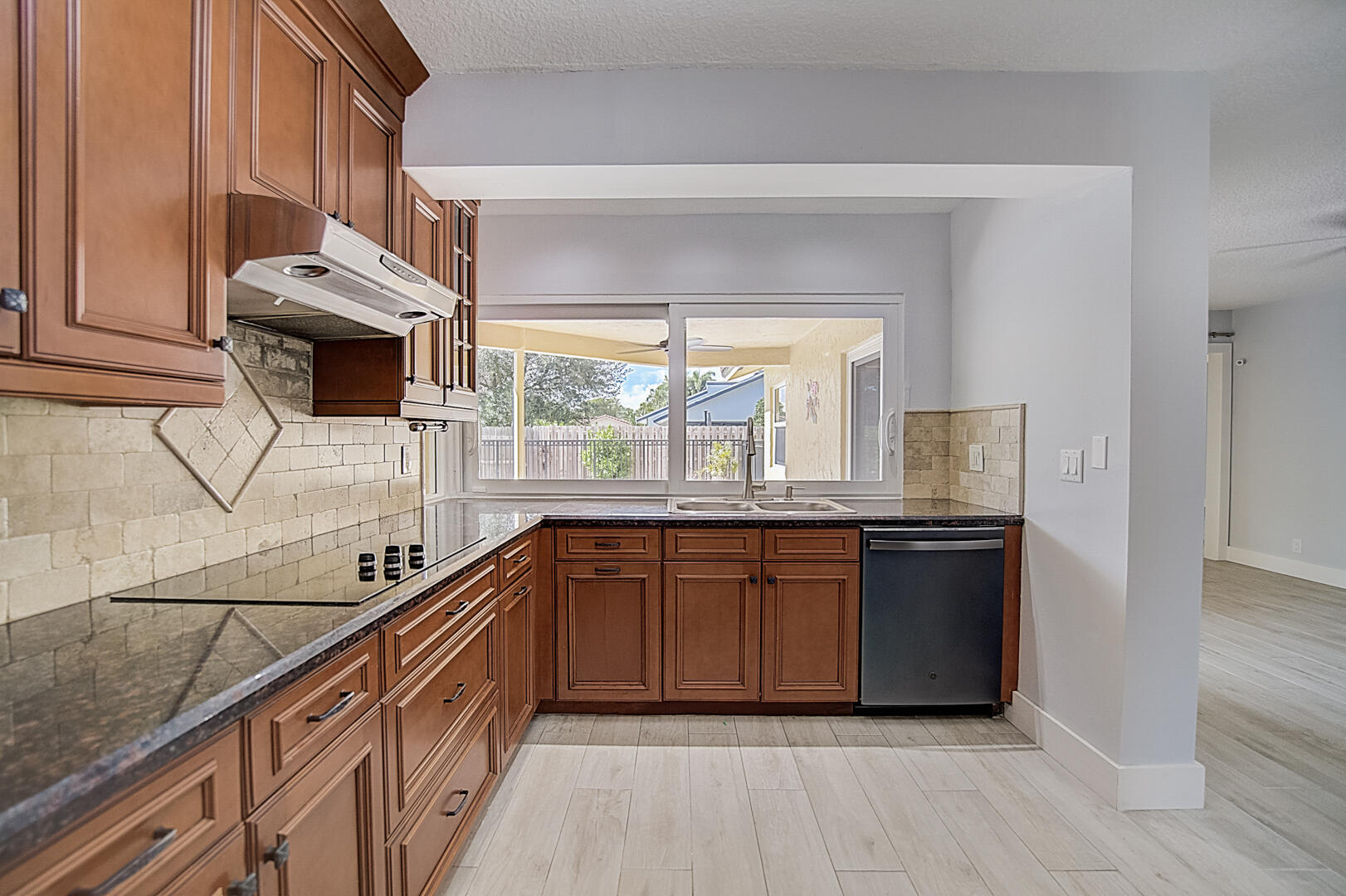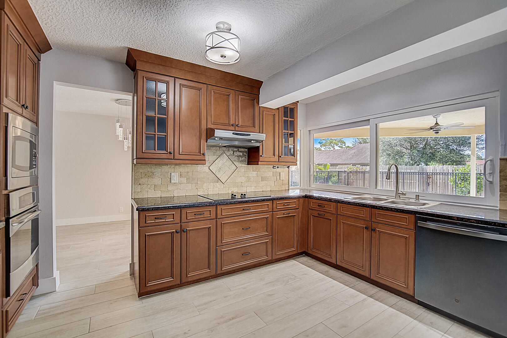 This Boca Raton one-story home offers a patio, granite countertops, and a two-car garage.