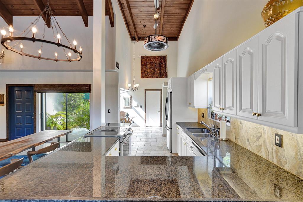 Prepare to fall in LOVE with this eclectic beauty located in the wonderful community of L'Ambiance. This is a 3 bedroom 3 full bath lakefront and end unit townhome with a 2 car garage. This home has been renovated from top to bottom with updated flooring throughout and an open kitchen with SS appliances, granite countertops, and refinished cabinetry and hardware. The bathroom features an onyx stone shower wall, frameless glass door, wood panel ceiling and a custom vanity with brass wall mounted faucet. Stunning wood beams flow throughout the main living area and into the master bedroom which is an oasis with tall vaulted ceilings and serene lake and garden views. Upstairs you'll find a loft with seating area, third bedroom, and another full bath.
