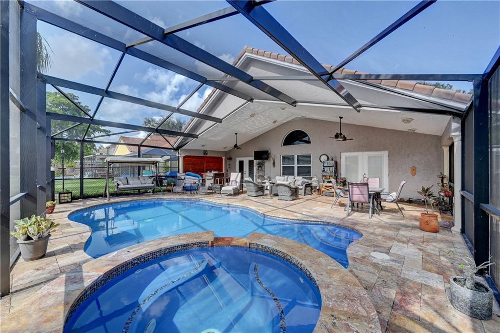 WOW~ Live in the beautiful Davie development of Forest Ridge. This Oak Park sub division home is turn key. Four bedrooms, two & half bathrooms, pool home with a gorgeous lake view. Master bedroom downstairs with french doors to the pool. Designer, state of the art kitchen just completed in July. Brand new master bathroom & half bathroom on first floor. 24 X 48 porcelain tile throughout the downstairs. Pool features pool with a jacuzzi that is updated with travertine tile & screen enclosure. Lakeside dock with a lighting. Outside custom built bar & patio furniture included in sale. Home has impact windows & doors. The laundry room that leads to a two car garage with rubber floor. All new light fixtures downstairs. Second floor has carpet throughout & spacious bedrooms. Come see today!