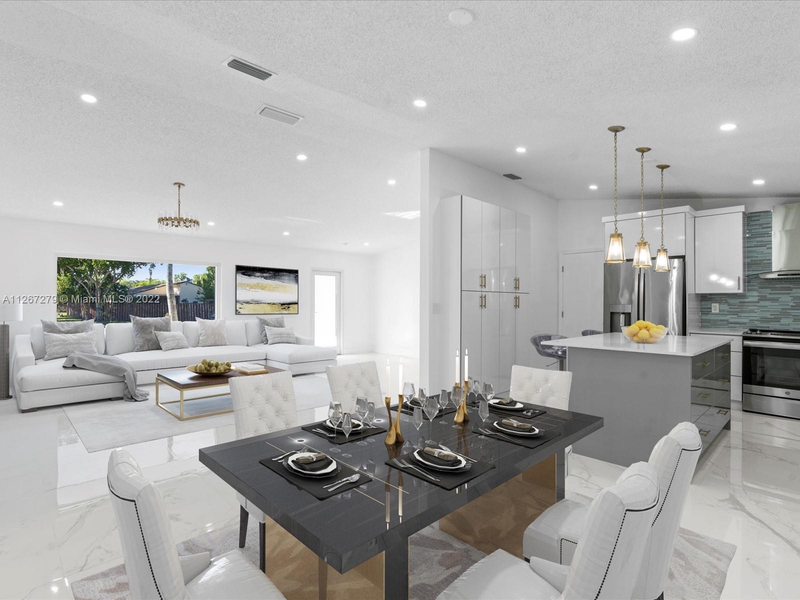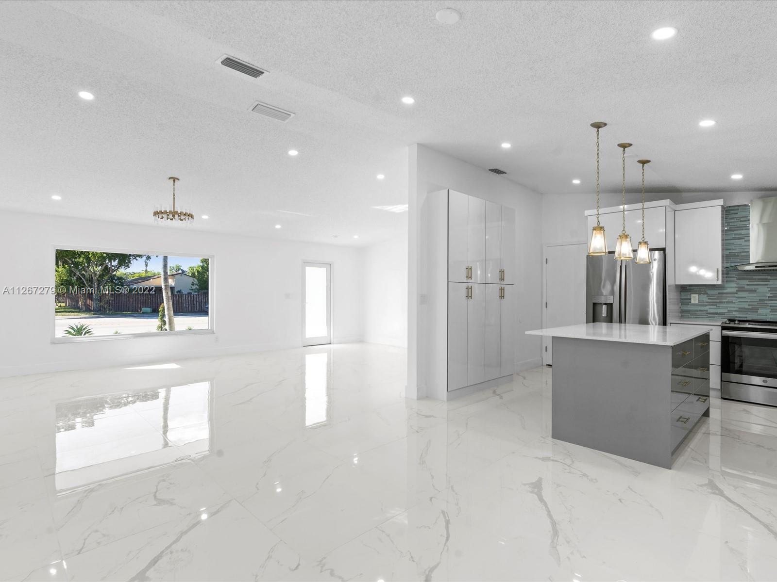 Beautiful family home with a circular driveway on a large lot in a very quiet area. This home has been completely updated with a new roof, hurricane impact windows and doors, beautiful new open concept kitchen with beautifully styled gold accents, new bathrooms, new floors, fenced back yard with concrete slab patio. Hassle-free very low cost association ($35.00/quarter). Partially virtually staged. Ready to welcome Buyers who want to make this their home!