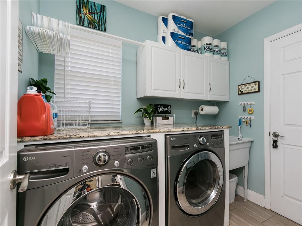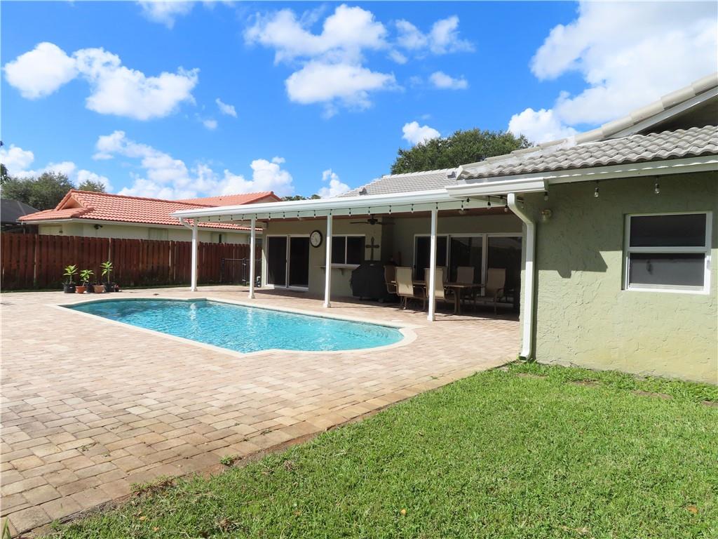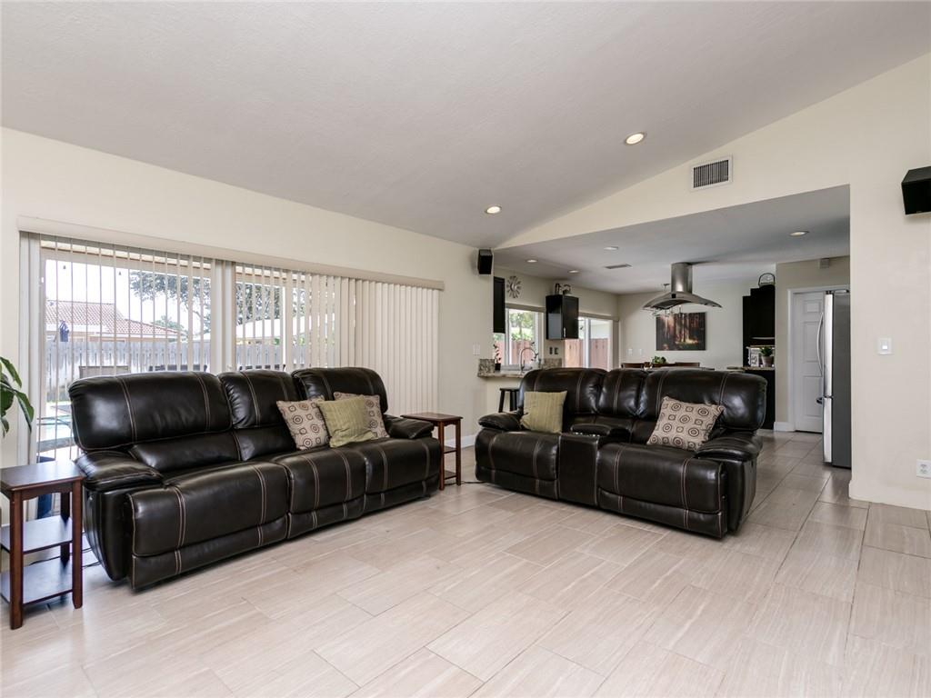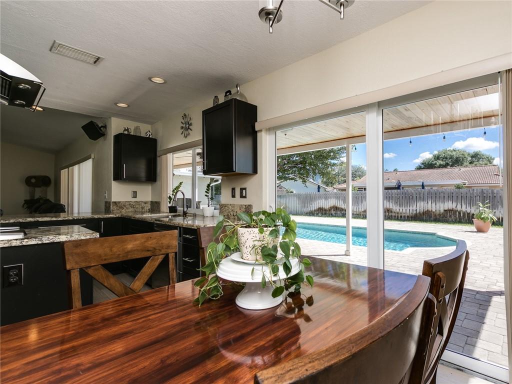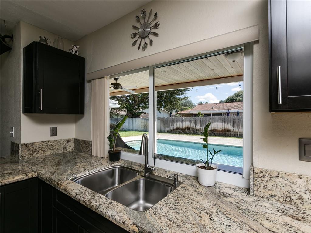 The one you've been waiting for! S-tile roof & gutters installed this year, impact windows - no insurance issues here! NO HOA! Large fenced yard with pool. Bright, open floor plan with tons of storage plus remodeled kitchen & baths. Large eat-in kitchen has dining area plus a long peninsula which seats four. Granite countertops provide abundant work space. Stainless steel appliances - GE Profile double oven. Kitchen opens to dream back yard with tongue & groove porch ceiling - TV & stereo remain. Fire pit area has sturdy posts designed to hold up to 4 hammocks, strung with lights & covered with a fabric awning. Large shed in side yard with electricity. Dual A/C units. Inside, you will find contemporary tile floors throughout plus oversize baseboards & architectural upgrades. EZ show.