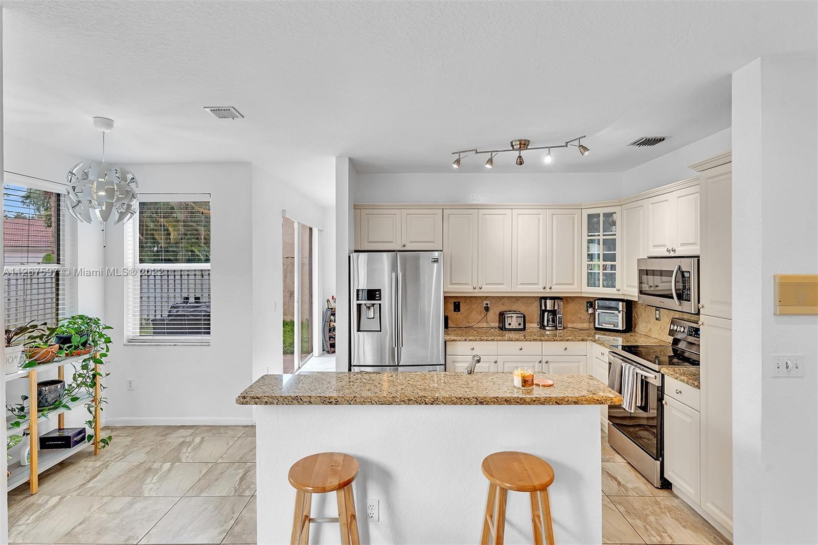 Towngate Best Buy, Shows nice, updated kitchen, Granite counters, Built-in family room entertainment. Hurricane shutters, brick paver patio, Original Roof, updated appliances. 2 Car Garage. High ceilings Towngate located in the heart of Pembroke Pines. West of major highways, shopping, schools, restaurants, hospital, & more. Maintenance includes internet & basic cable tv, Gated community, pools, tennis courts & playgrounds, and more. AS-IS