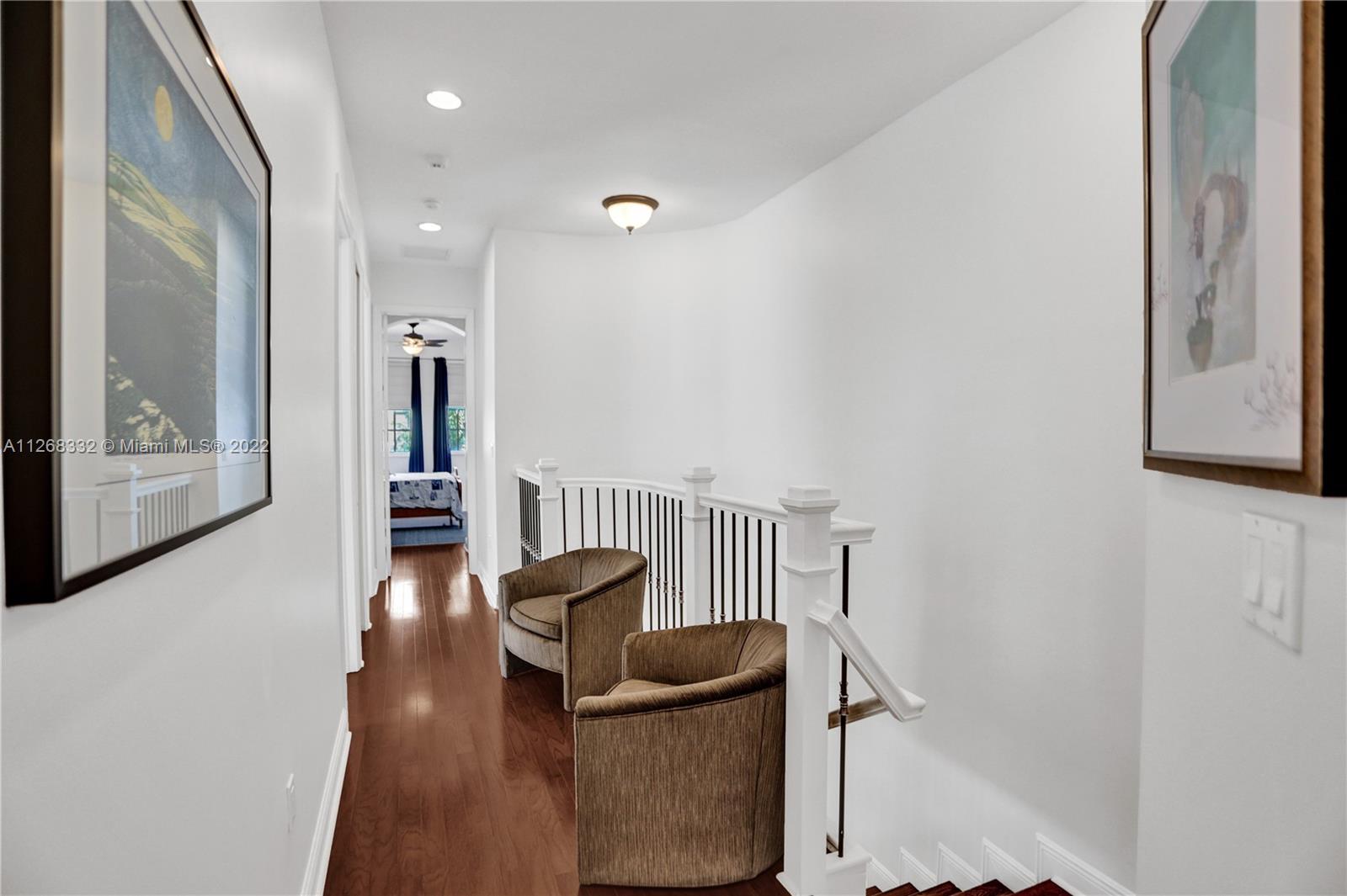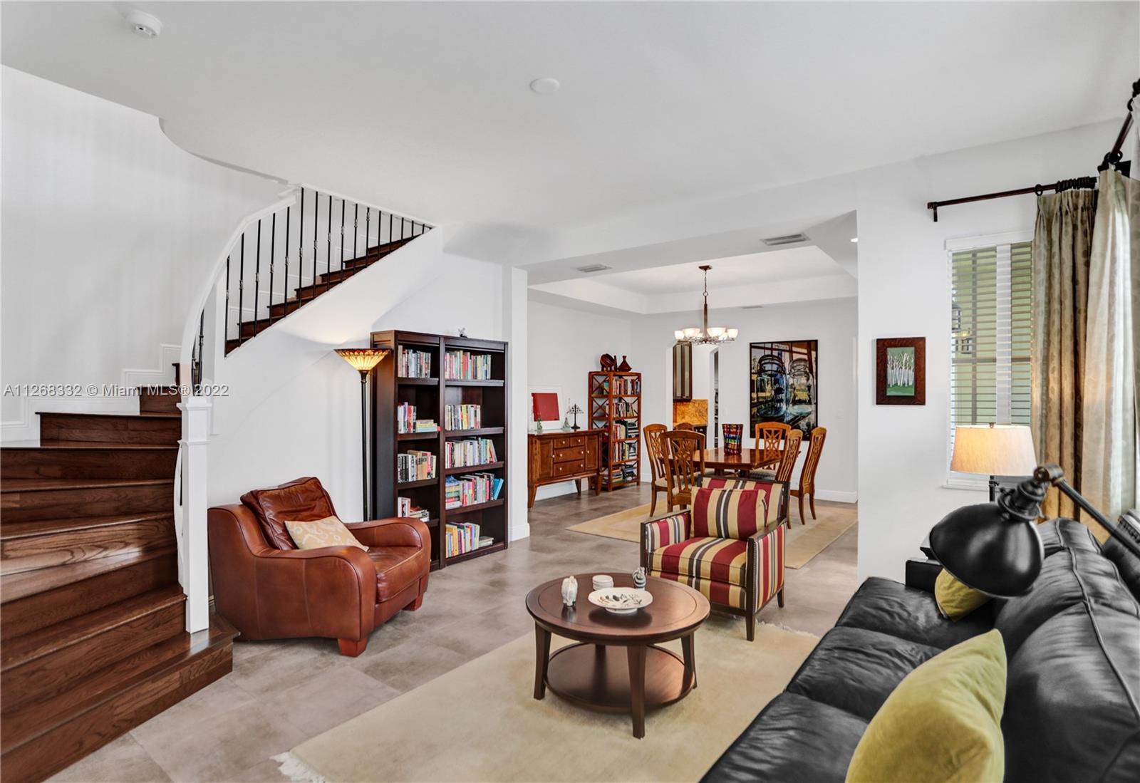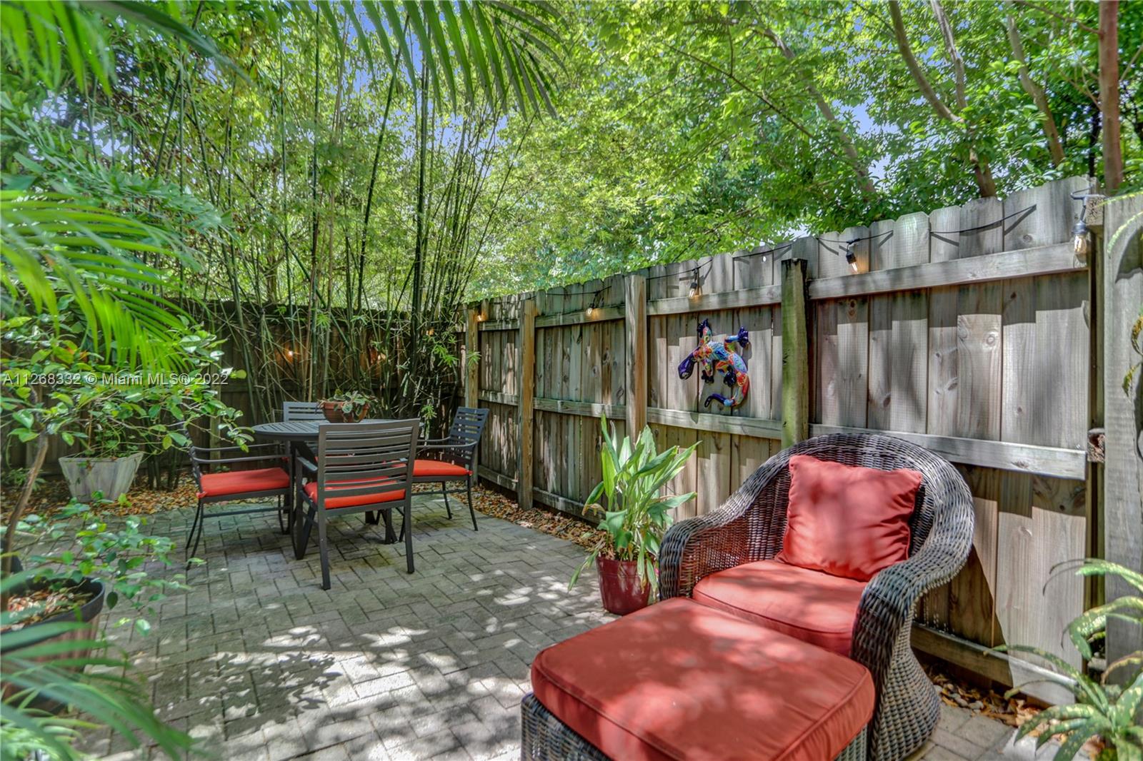 Live the Coconut Grove lifestyle in the largest townhome floorplan available. This beautiful, gated home has 4 bedrooms, 3.5 baths plus loft area. Foyer entry leads into large bright living room w/ stunning oak wood staircase and formal dining room. European style kitchen with breakfast area has coffee & beverage station w/ two wine coolers and pantry. The spacious family room leads to the tropical backyard. Surrounded by trees and lush vegetation, this is your very own Grove oasis. Large primary bedroom has separate sitting area, balcony, walk-in California closet, and luxurious bath. Laundry is upstairs along with one ensuite bedroom and two additional bedrooms that share a bath. Features 10’ high ceilings, impact windows, granite countertops, one car garage and more. Unique opportunity!