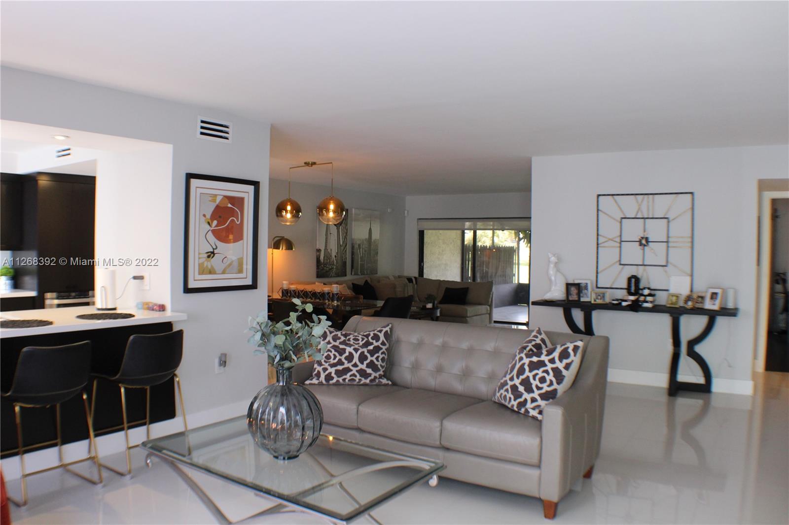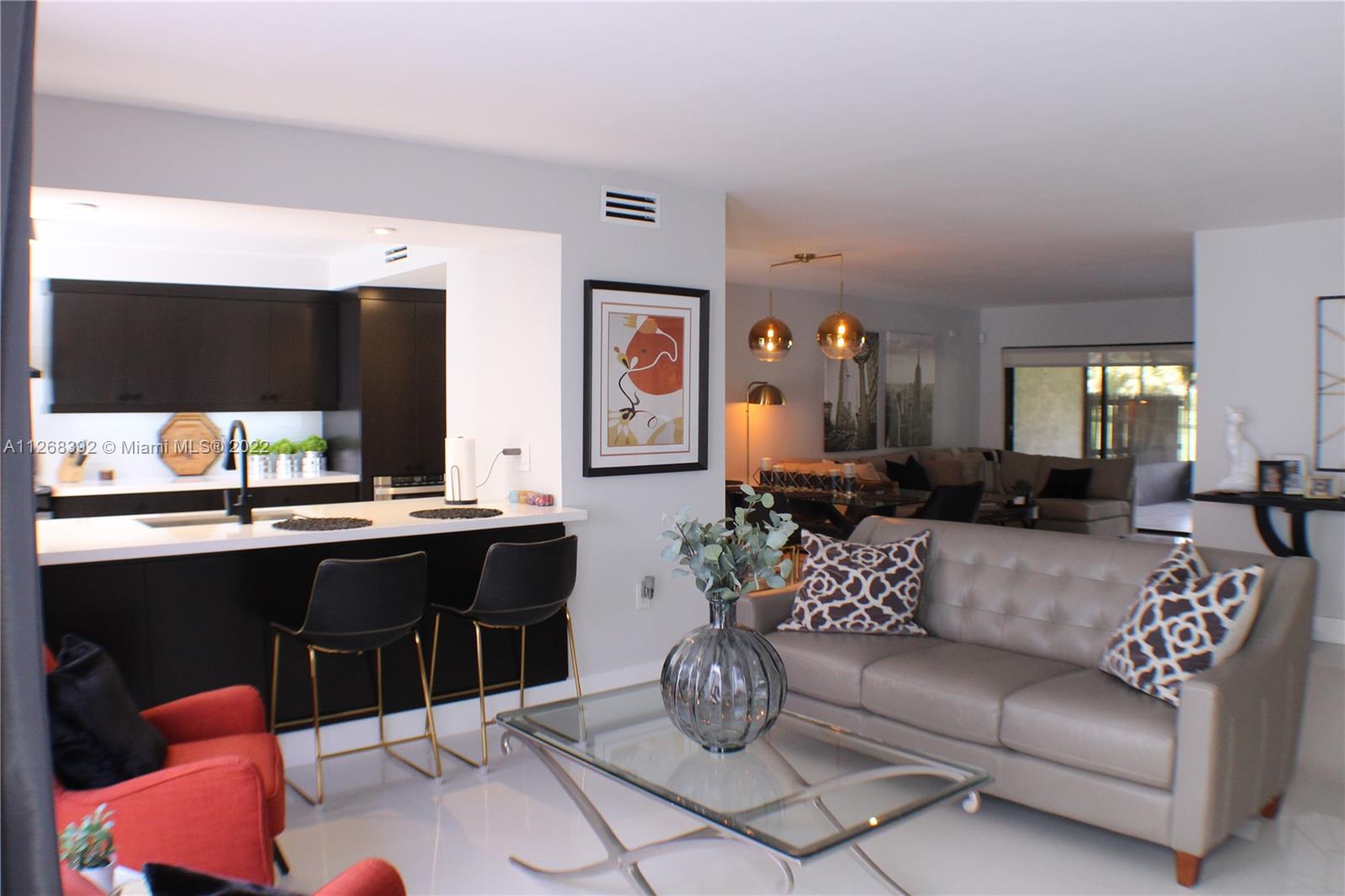 Beautifully modernized townhome in desired Royal Singapore Lake! This home is made for both entertaining & everyday living, with plenty of space & remarkable golf course views! Many updates have been done. New roof. Kitchen features chocolate cabinets, Corian white countertops, black hardware, stainless steel Frigidaire appliances & beverage refrigerator; All bedrooms have walk in closets & sliding glass doors opening to outdoor space. Large, white tile flooring throughout living space, wood laminate floors in bedrooms. Secondary bathroom features a smart mirror, white hexagon tiled shower with niche shelves. Huge, screened lanai for relaxing or entertaining! The community has basketball, tennis, and pickleball courts. Don't miss this one, schedule a showing!