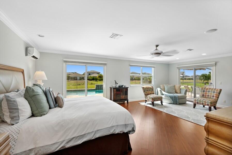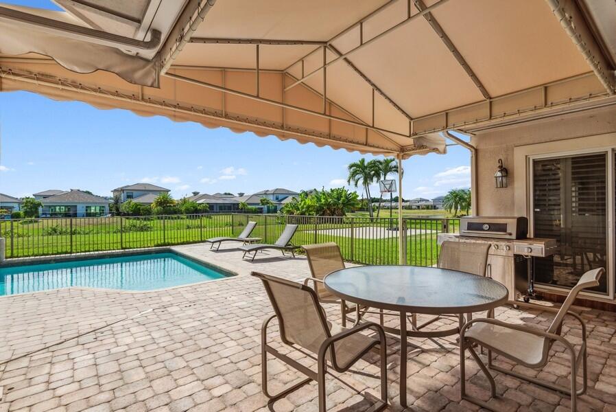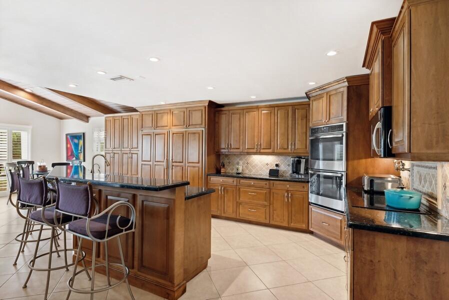 President Country Club, this is it! One story 3 bedroom 3 bath with just over 2,800 square feet of living space and 3,500 total overall. Upon entering, you are welcomed by a living area which leads out to the pool and patio. Gorgeous gourmet chefs kitchen with huge island, cherry cabinetry, subzero refrigerator and freezer. Just off of the kitchen flows a casual entertaining area which leads out to the pool as well as a formal dining area.On the other side of the house you will find the 3 bedrooms, 1 is now currently used as an office. The primary suite is large and has a sitting area, both leading to the sparkling blue Western facing pool.